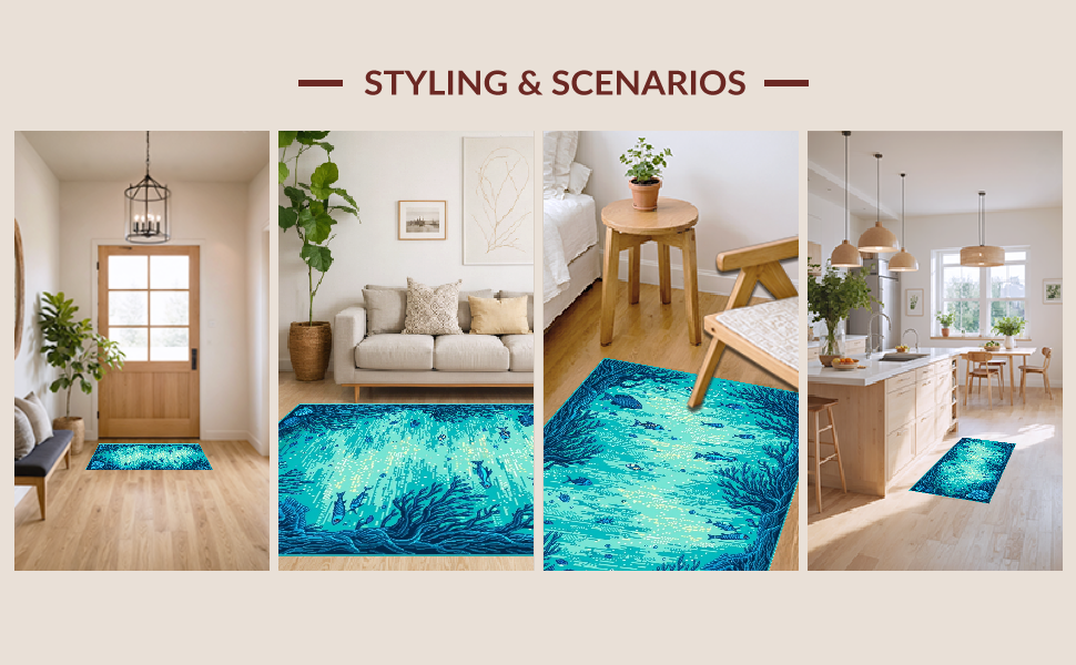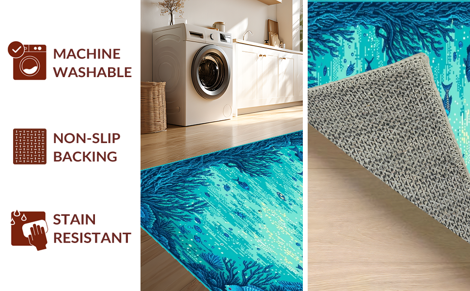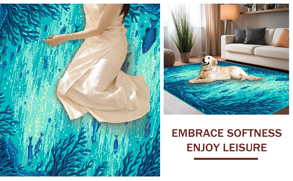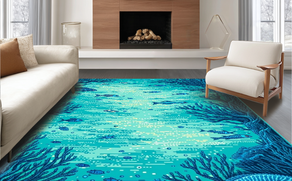 Ultra Soft Area Rug, Non Slip, Stain Resistant, Washable Area Rugs for Living Room, Bedroom, Modern Sea Life Patterned Accent(Blue) Overview: