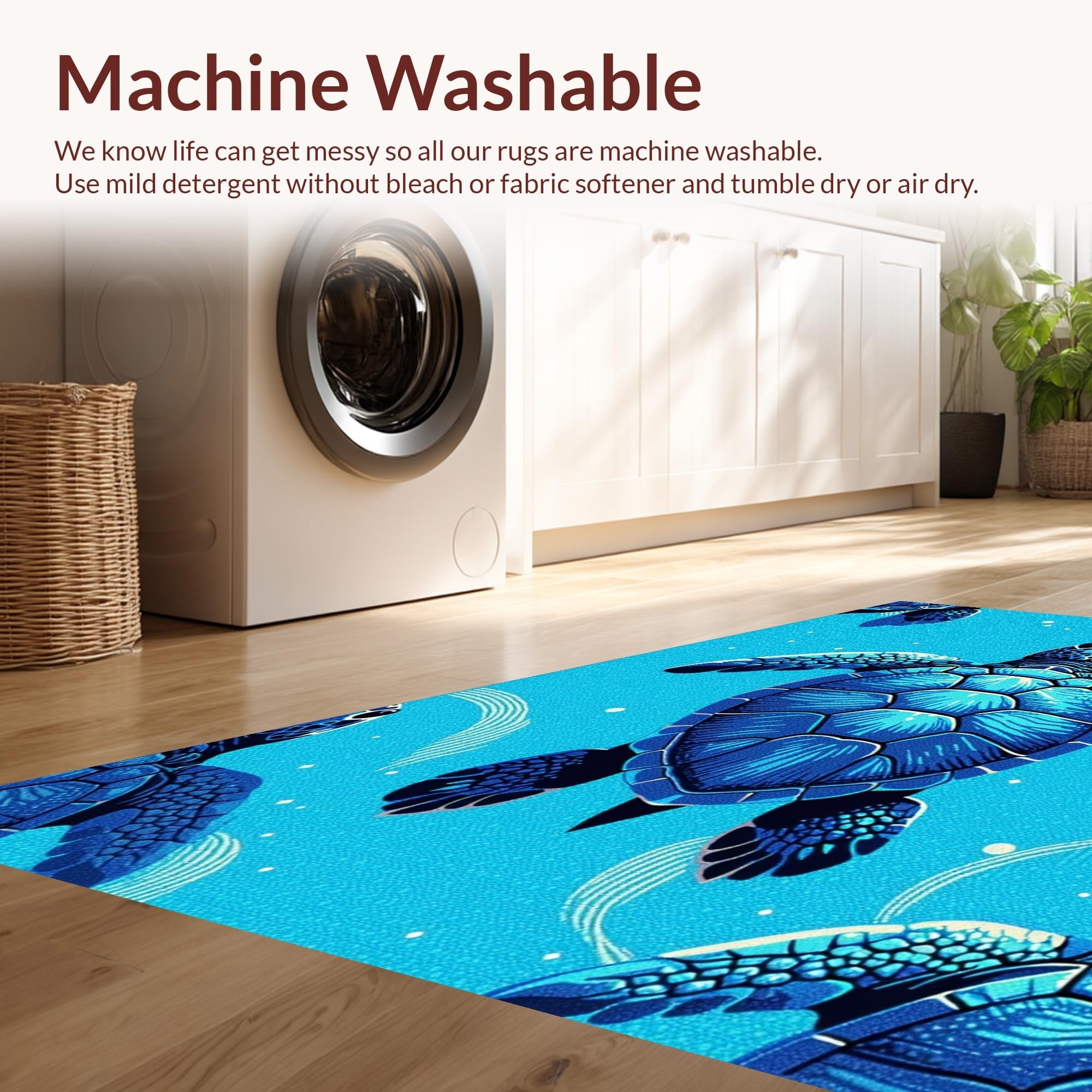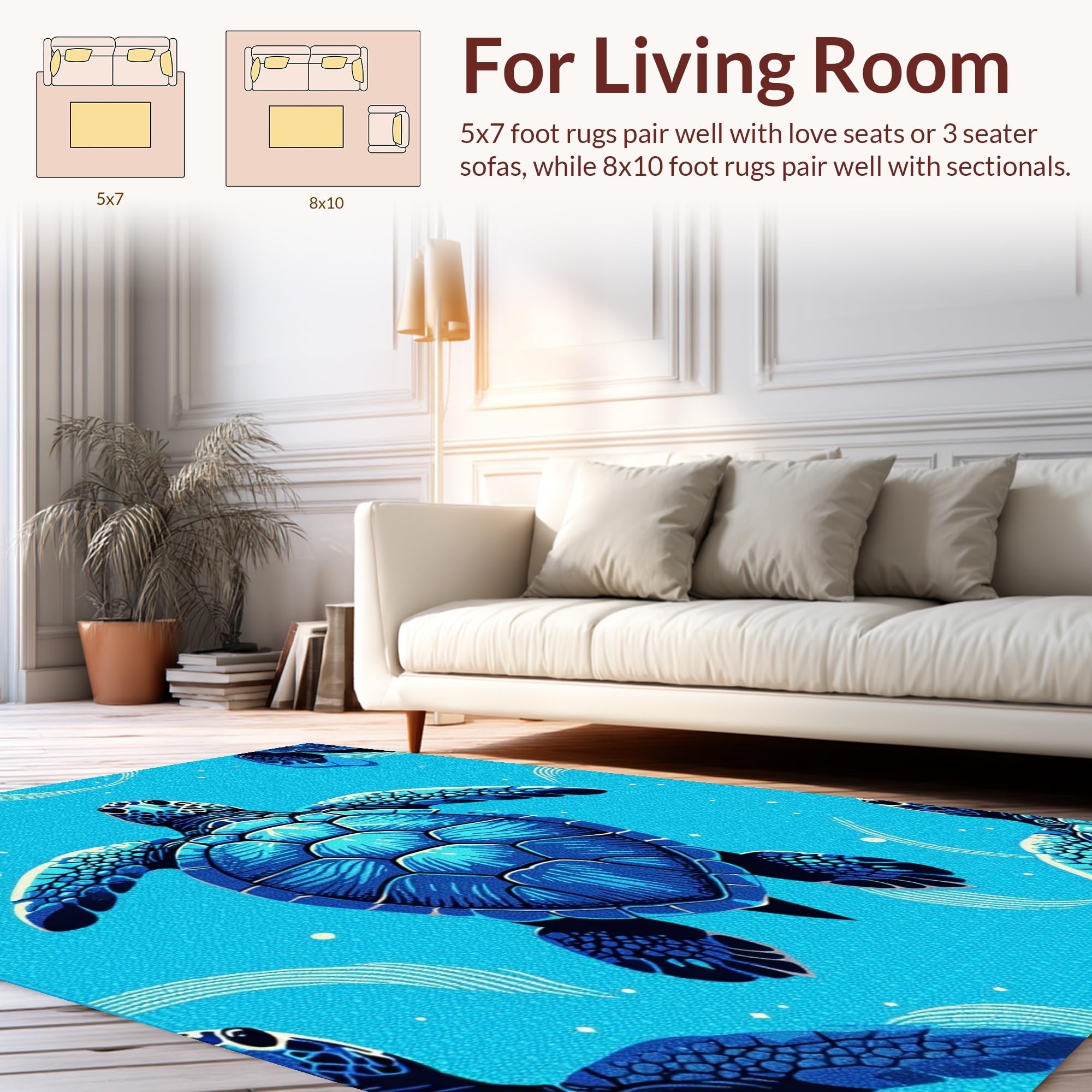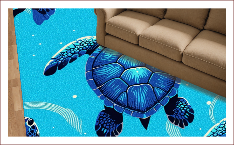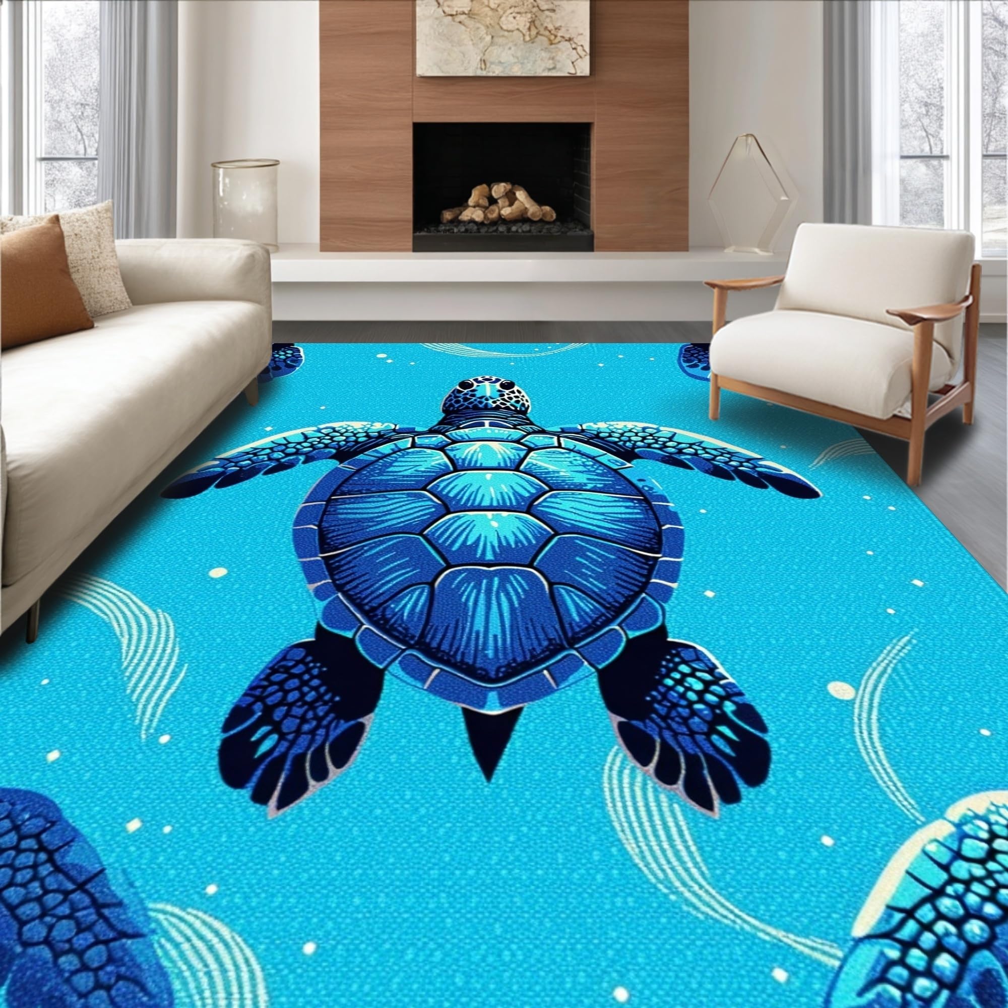 Ultra Soft Area Rug, Non Slip, Stain Resistant, Washable Area Rugs for Living Room, Bedroom, Modern Sea Turtle Coastal Bedroom Low Pile Rug(Blue) Overview: