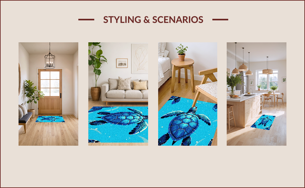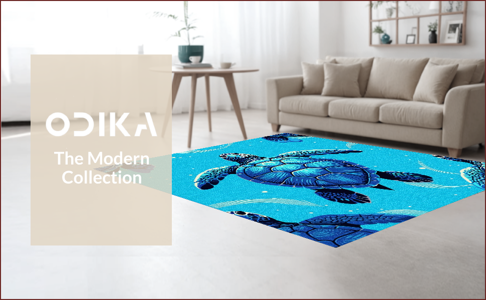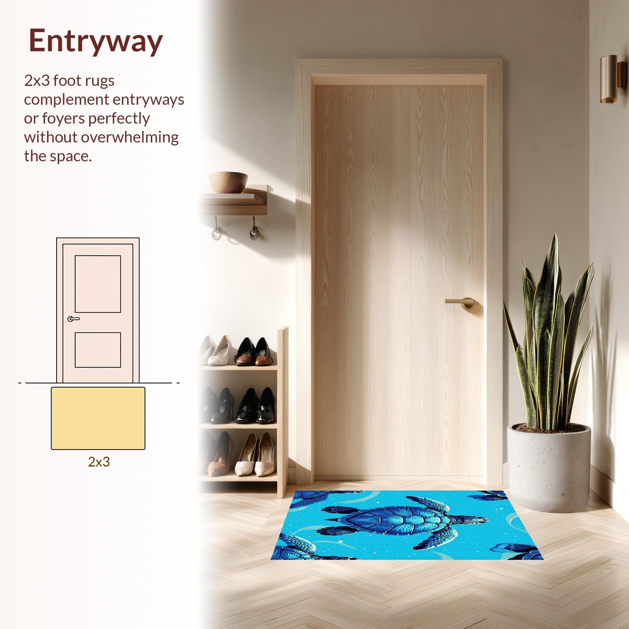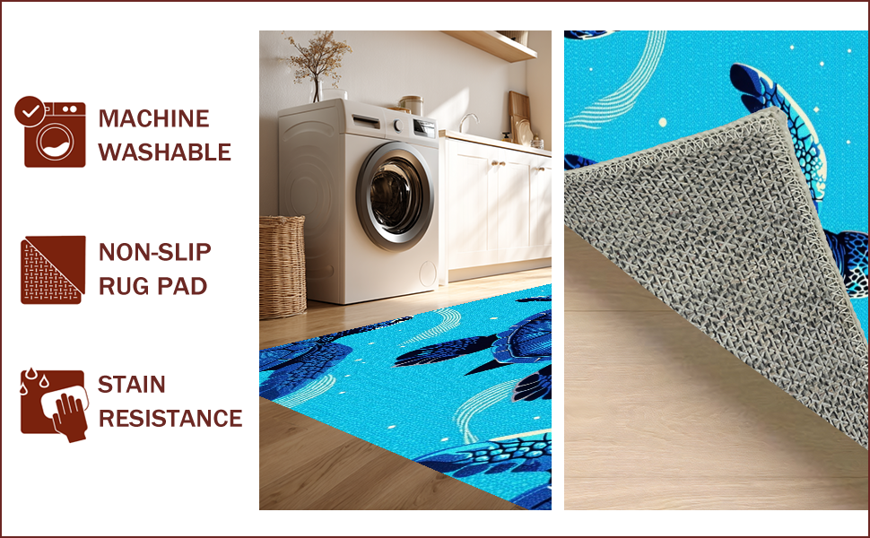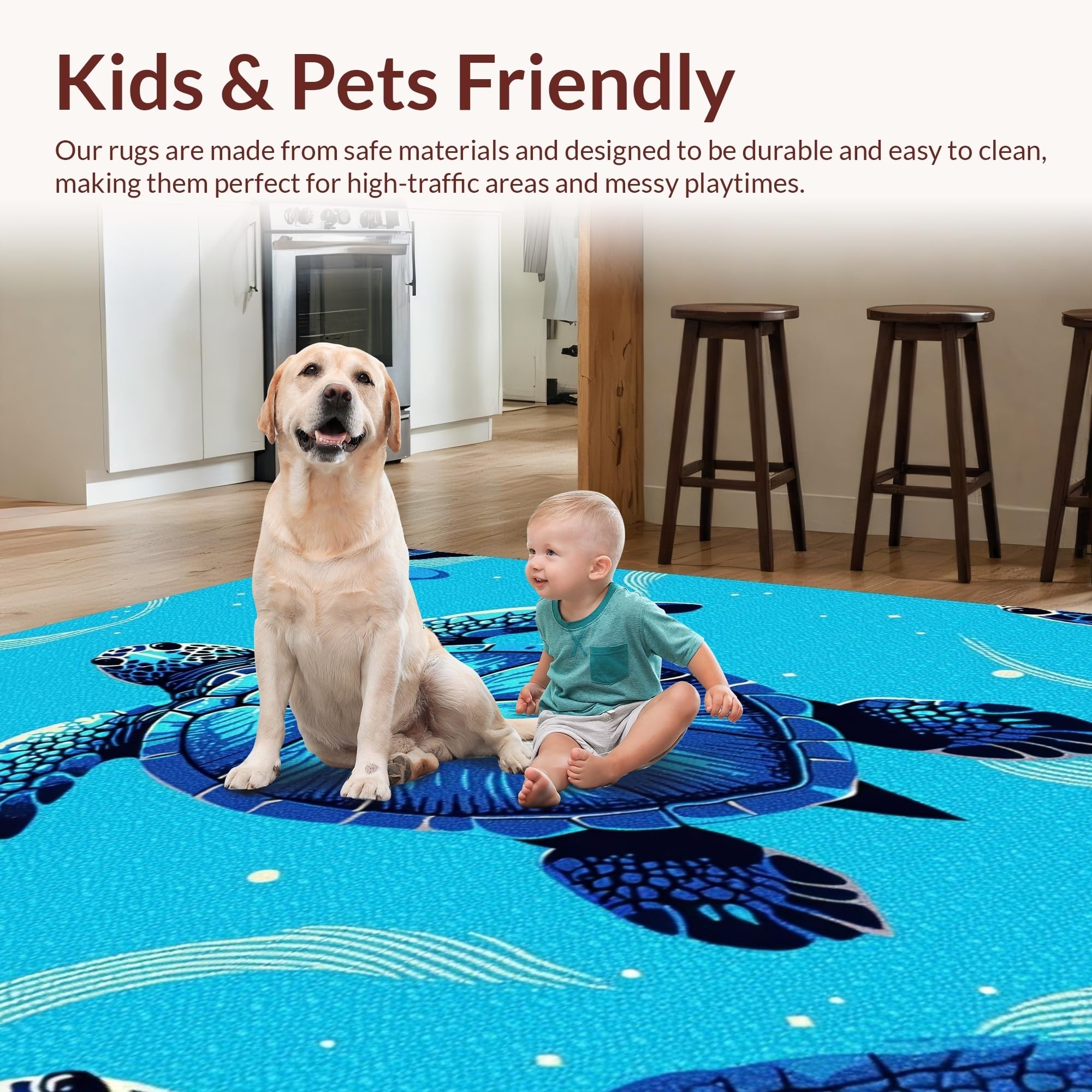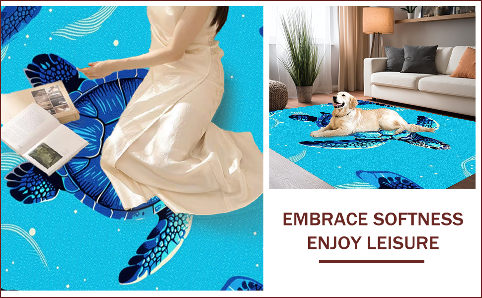 Ultra Soft Area Rug, Non Slip, Stain Resistant, Washable Area Rugs for Living Room, Bedroom, Modern Sea Turtle Coastal Bedroom Low Pile Rug(Blue) Overview:
