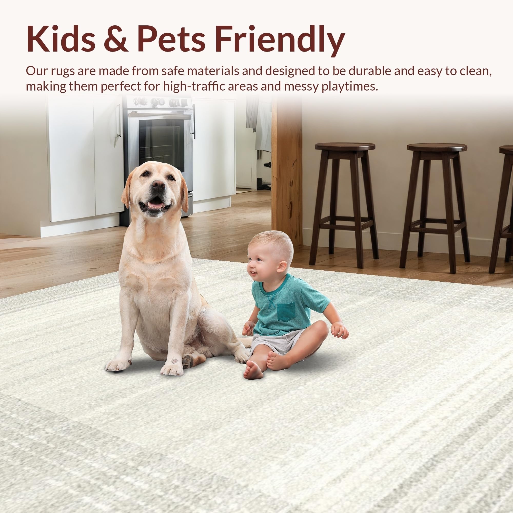 Ultra Soft Area Rug, Non Slip, Stain Resistant, Washable Area Rugs for Living Room, Bedroom, Modern Simple Woven Style(Beige) Overview: