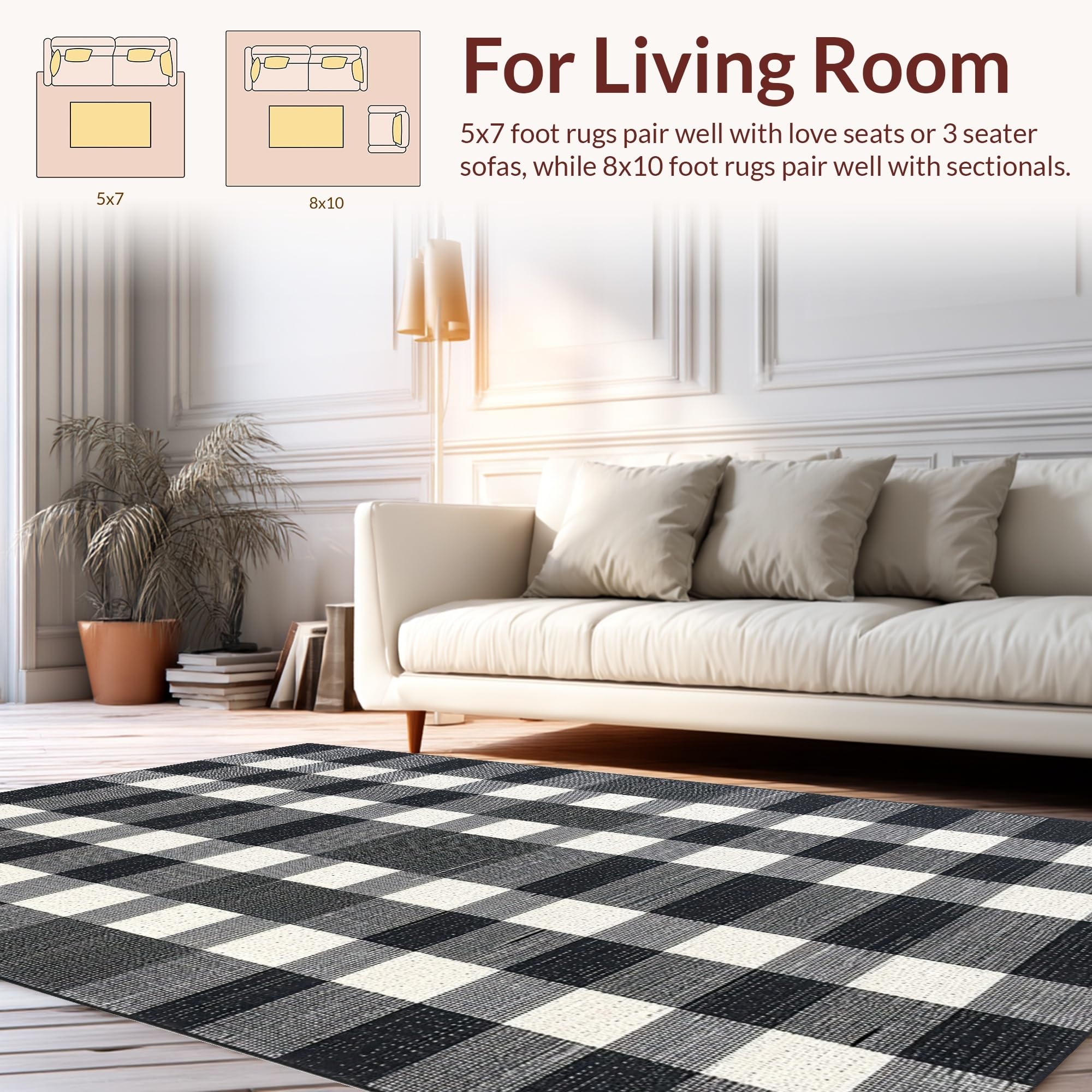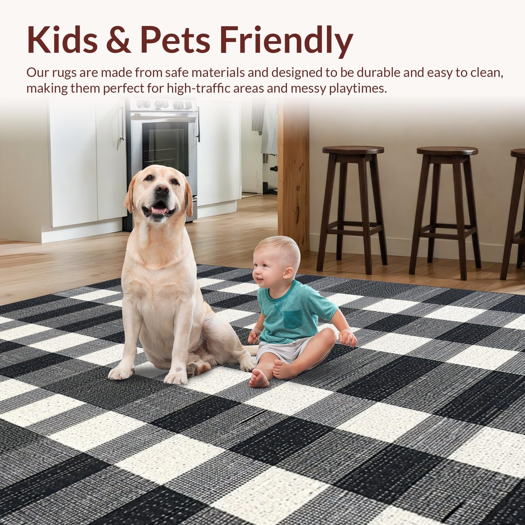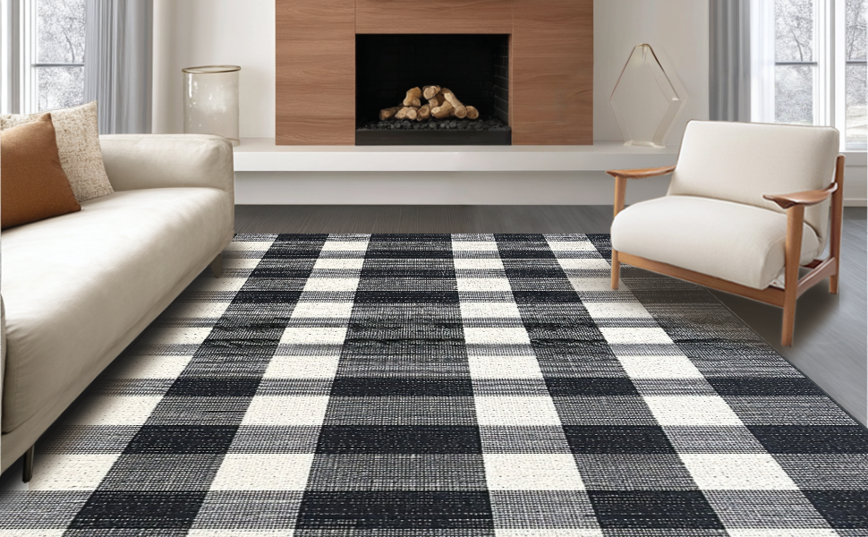 Ultra Soft Area Rug, Non Slip, Stain Resistant, Washable Area Rugs for Living Room, Bedroom, Modern Sleek Monochrome Pattern(Black) Overview: