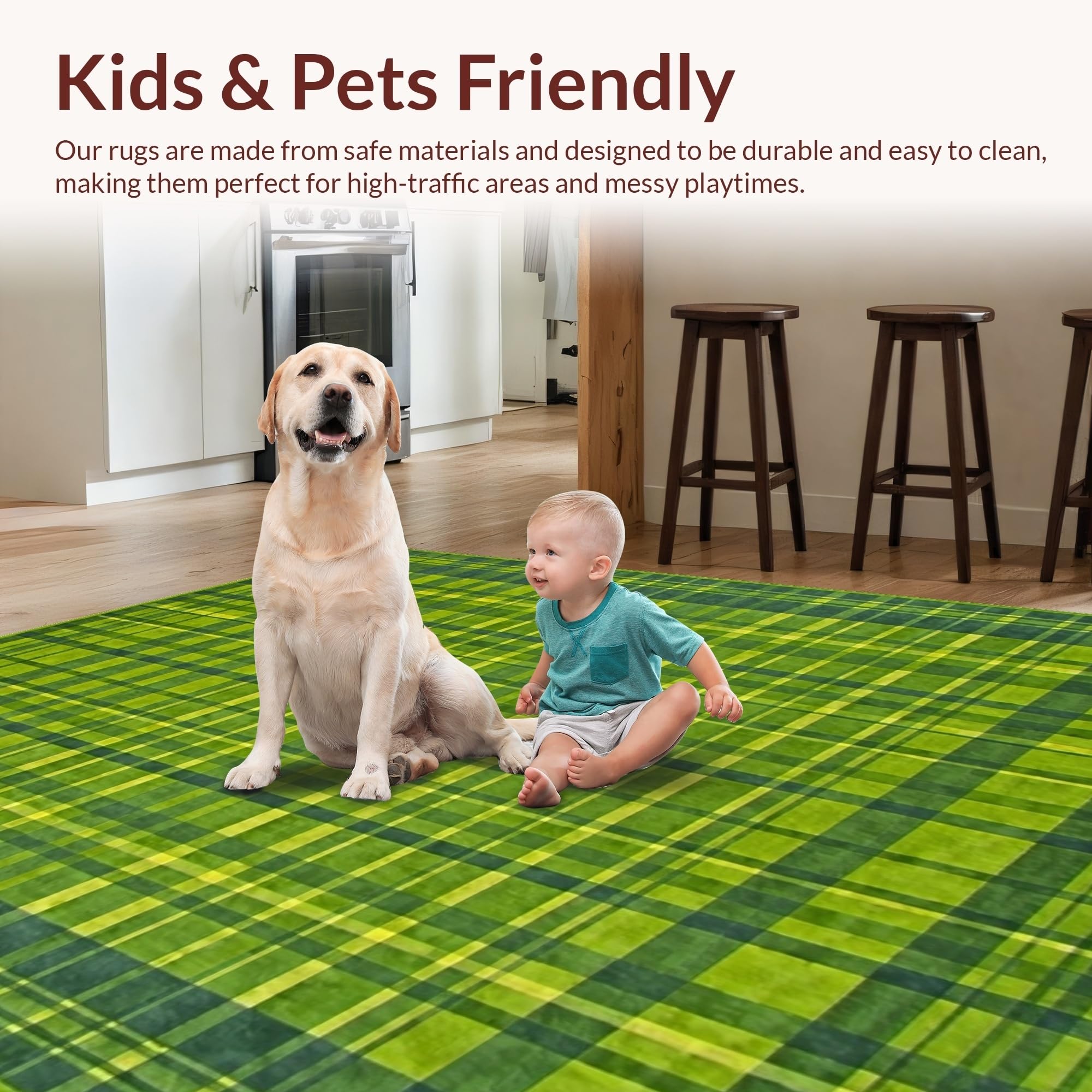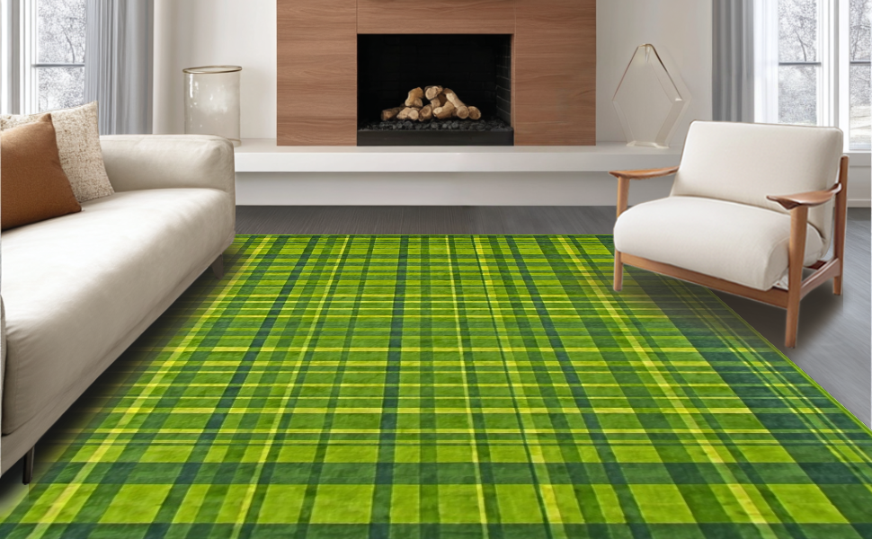 Ultra Soft Area Rug, Non Slip, Stain Resistant, Washable Area Rugs for Living Room, Bedroom, Modern Soft Shag Distressed Geometry(Green) Overview: