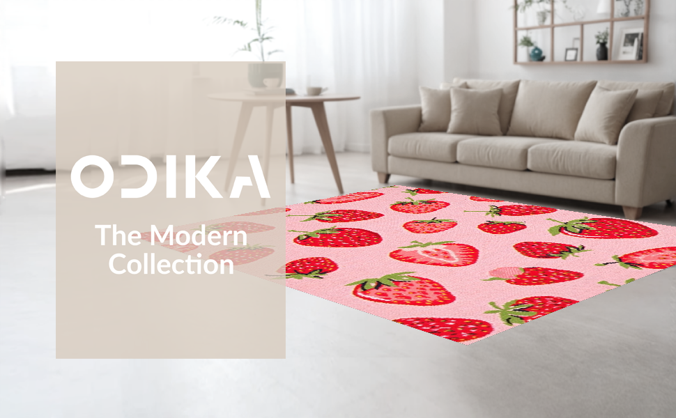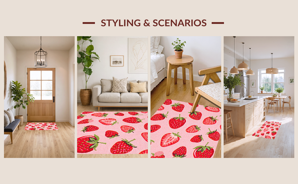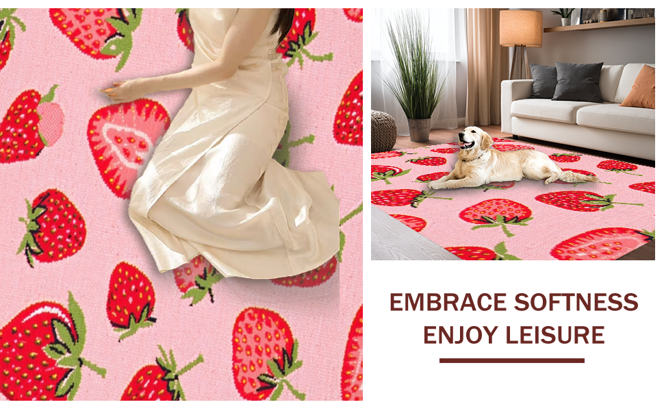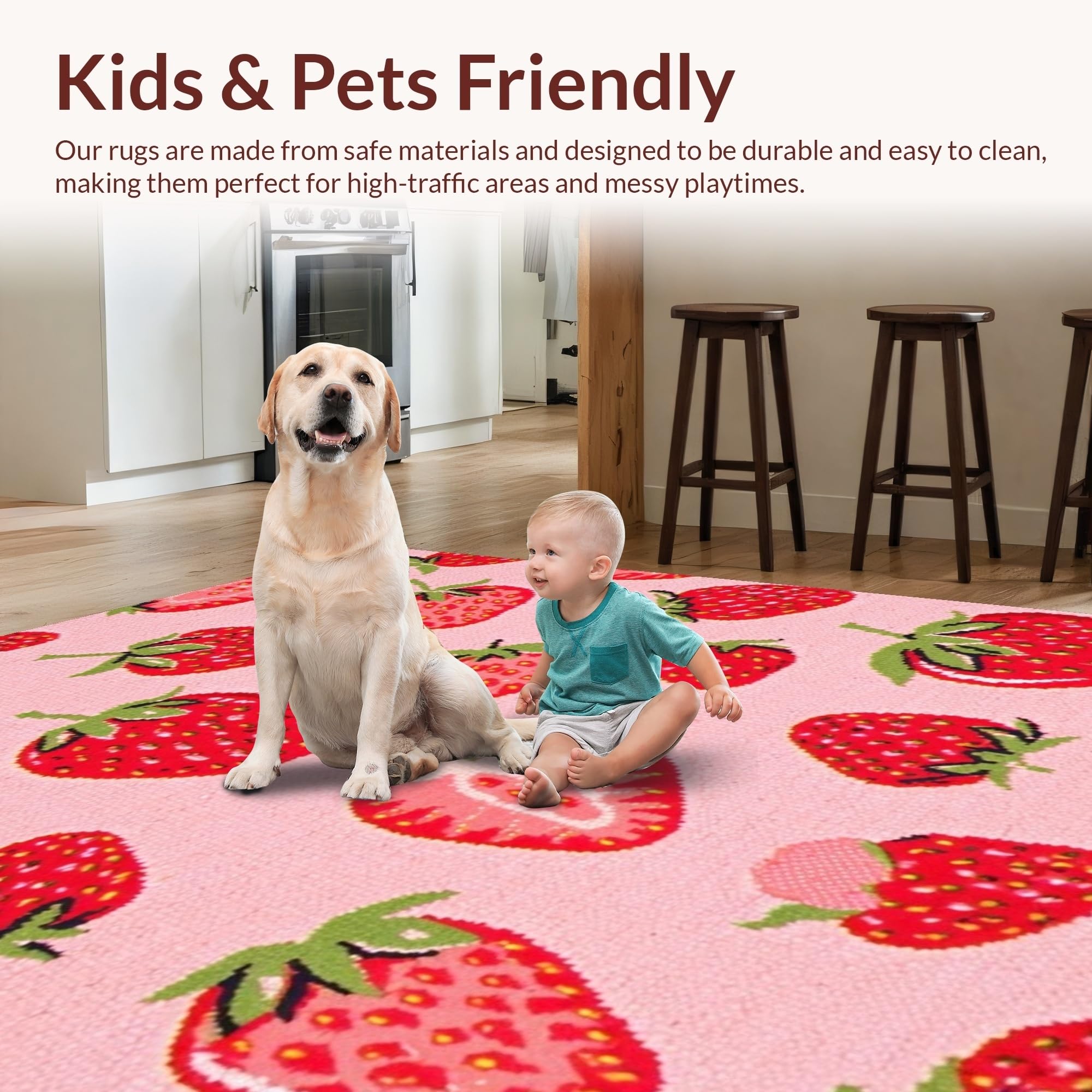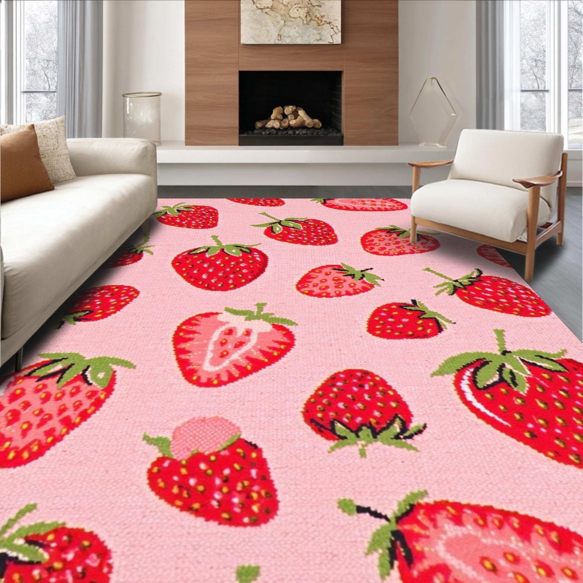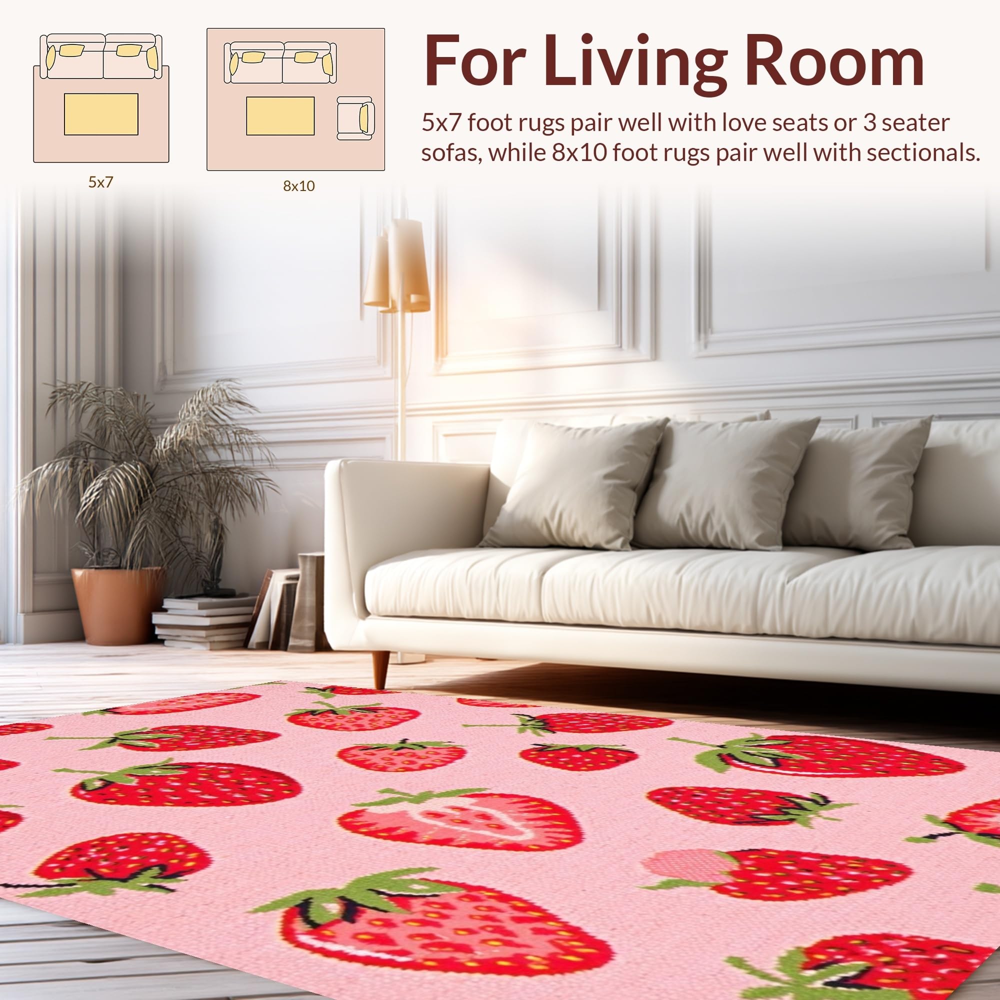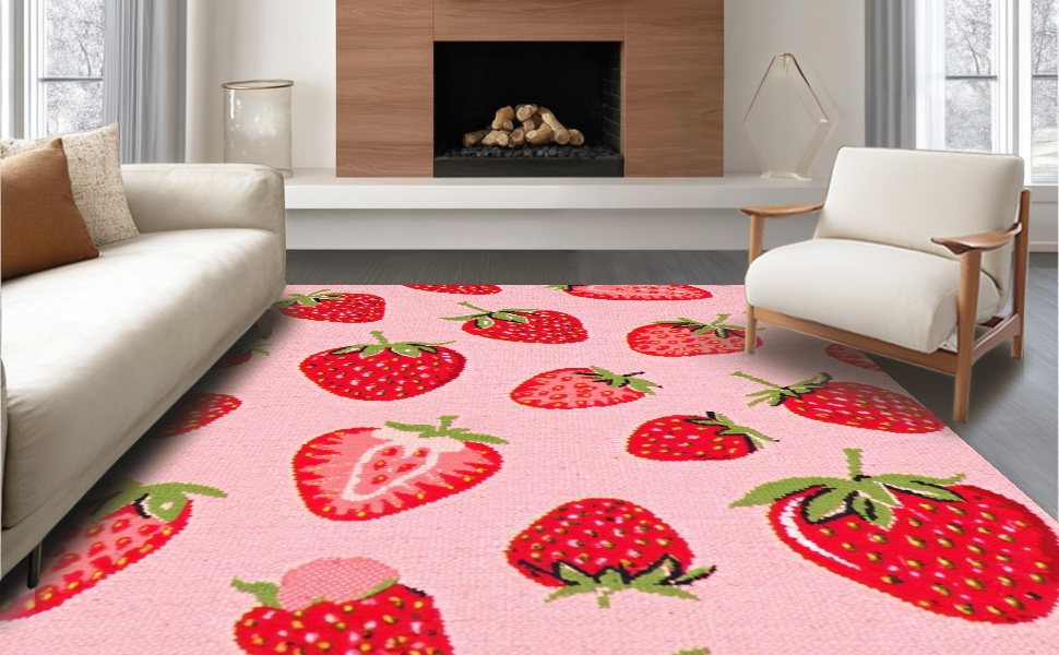 Ultra Soft Area Rug, Non Slip, Stain Resistant, Washable Area Rugs for Living Room, Bedroom, Modern Strawberry Graphic Design(Pink) Overview: