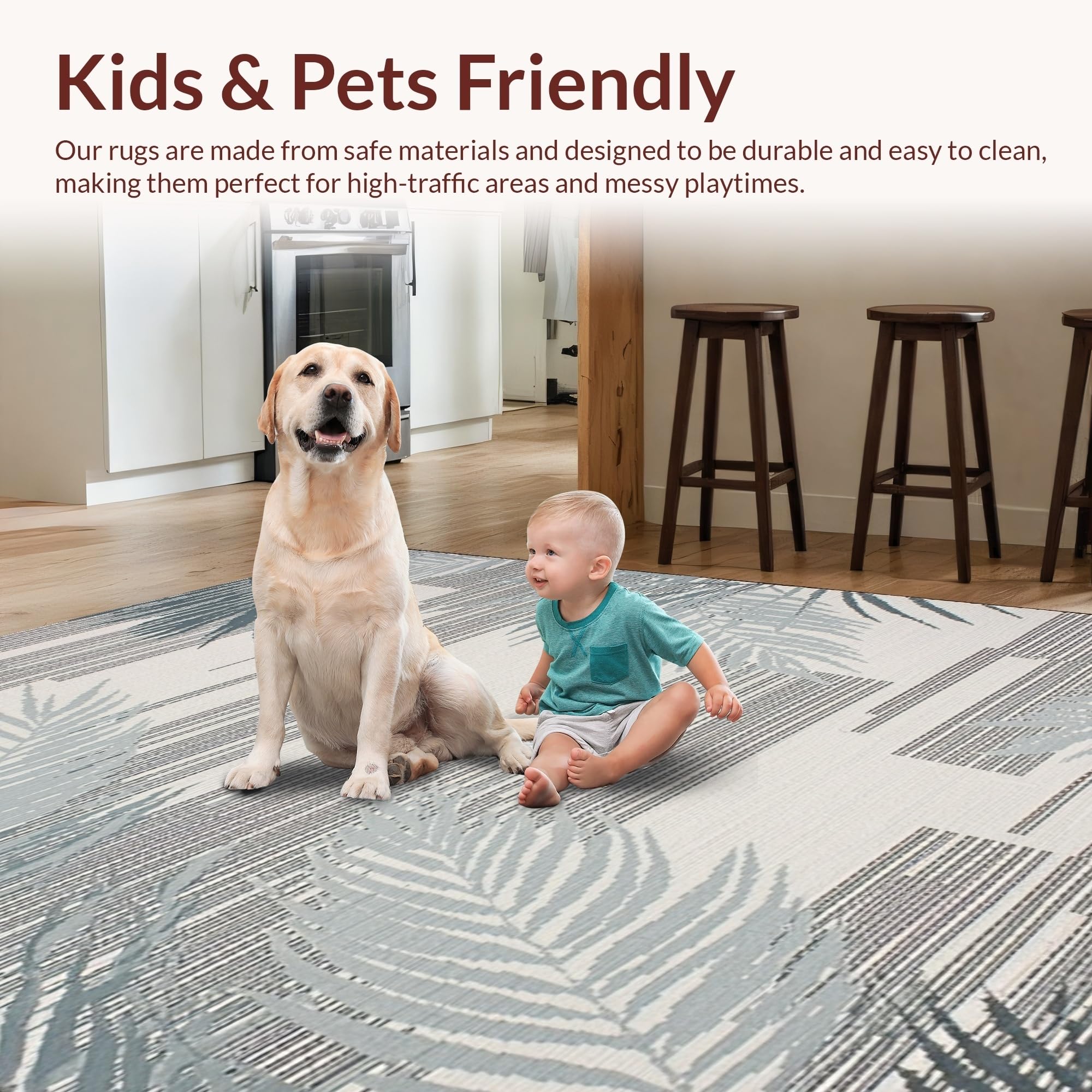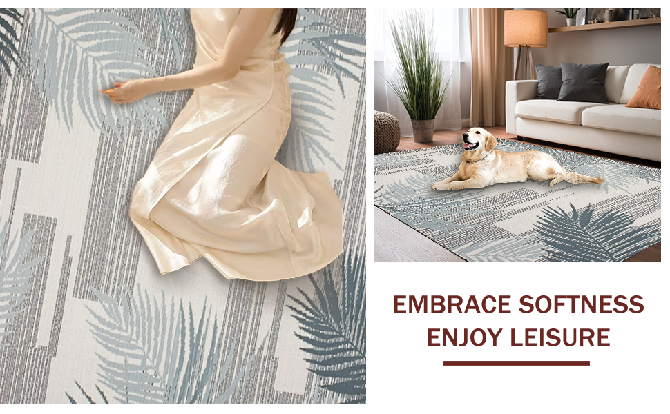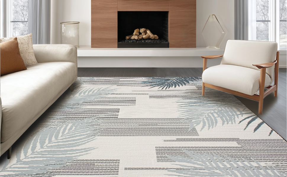 Ultra Soft Area Rug, Non Slip, Stain Resistant, Washable Area Rugs for Living Room, Bedroom, Modern Striking Leaf Print(Beige) Overview: