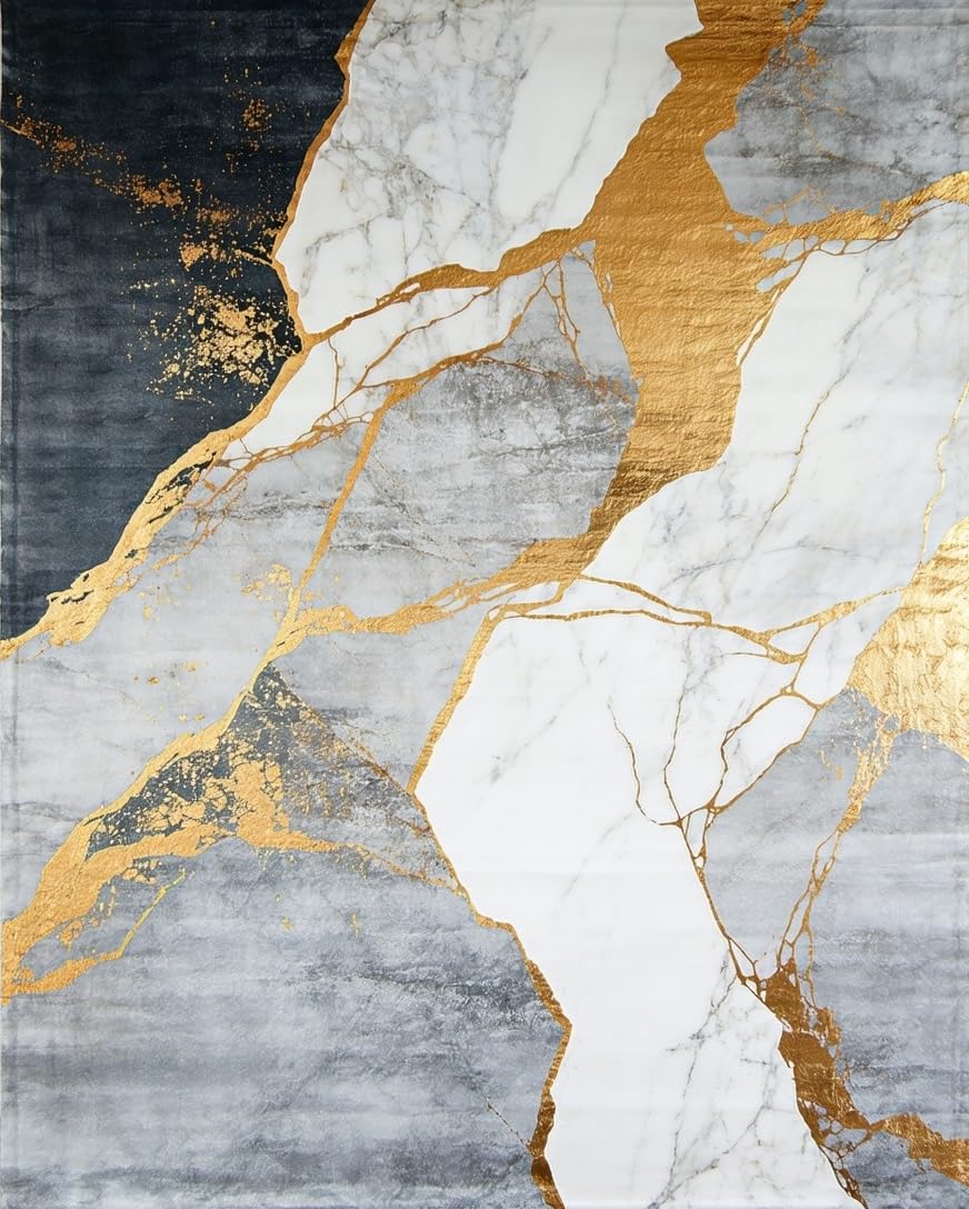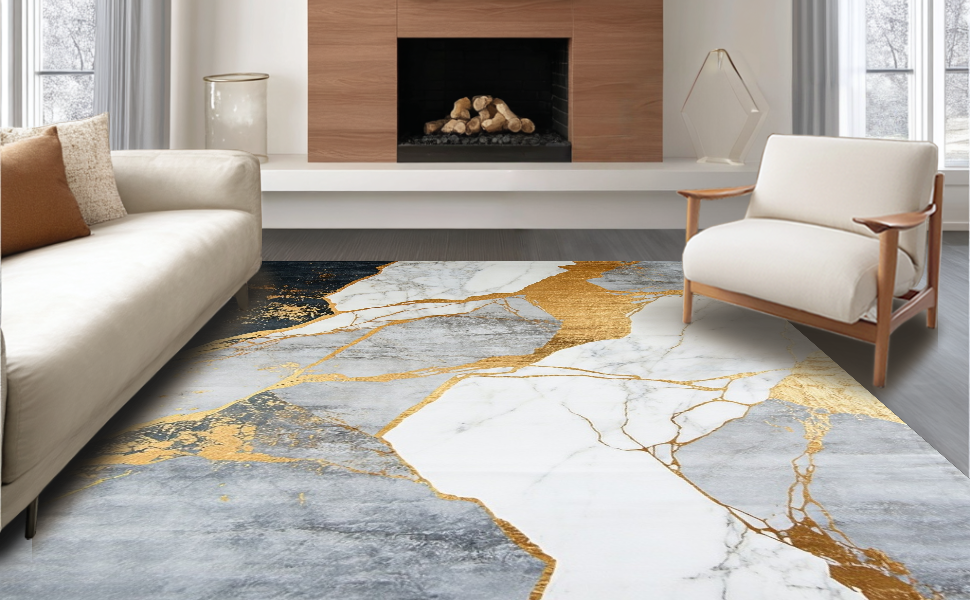 Ultra Soft Area Rug, Non Slip, Stain Resistant, Washable Area Rugs for Living Room, Bedroom, Modern Striking Organic Shape Arrangement(White) Overview: