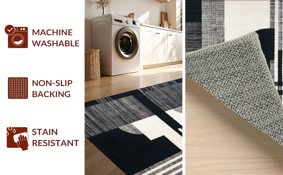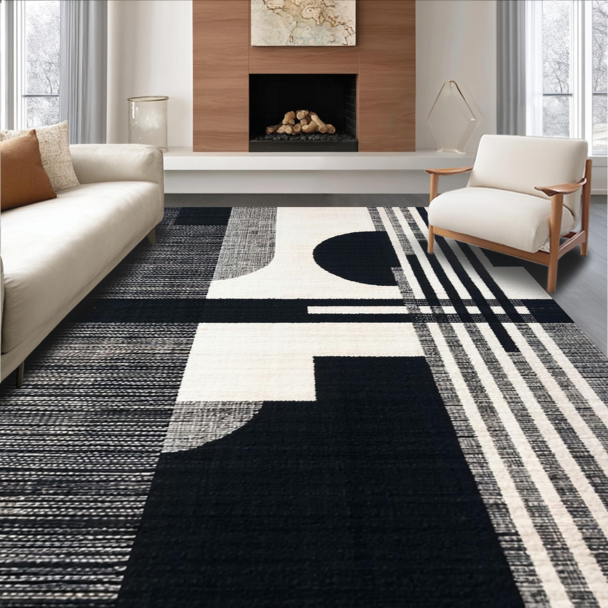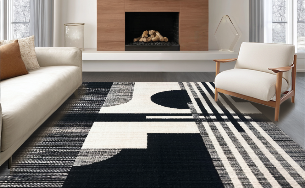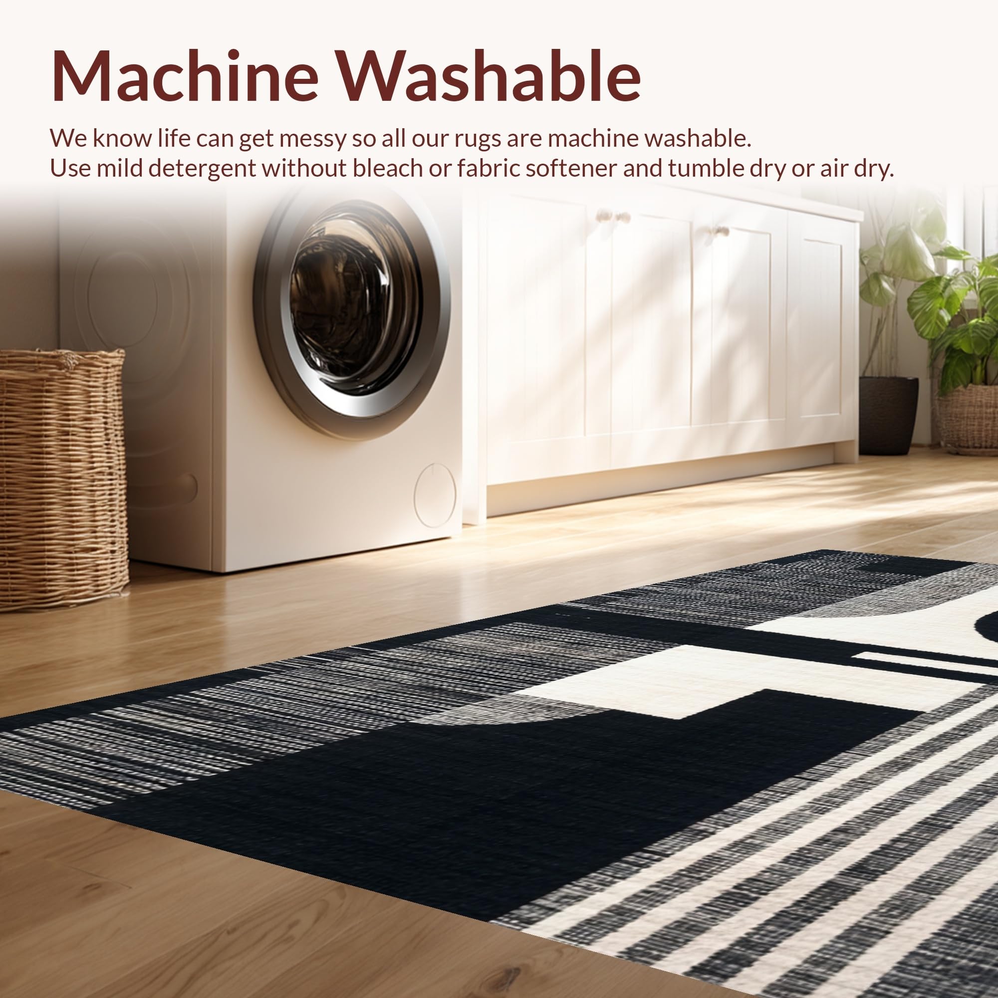 Ultra Soft Area Rug, Non Slip, Stain Resistant, Washable Area Rugs for Living Room, Bedroom, Modern Stripe Symphony: Black and White Geometric Patterned Rug(Black) Overview: