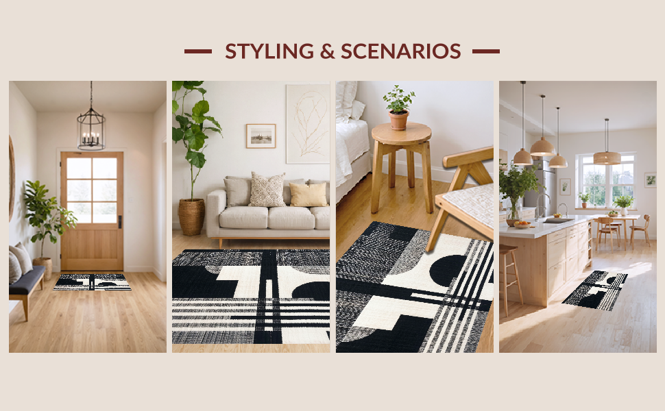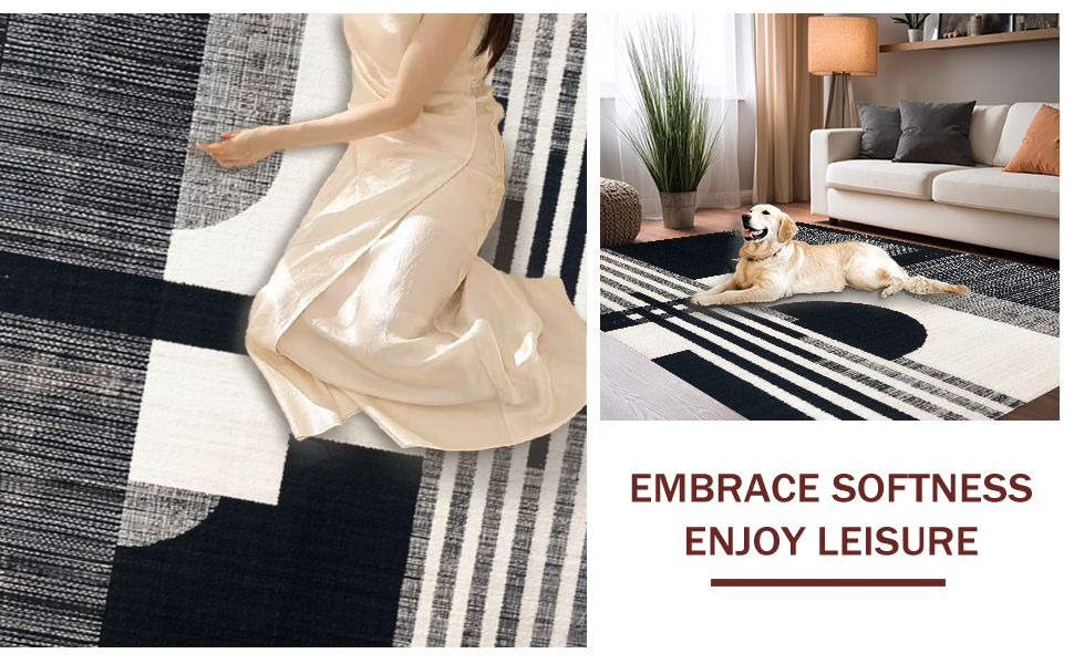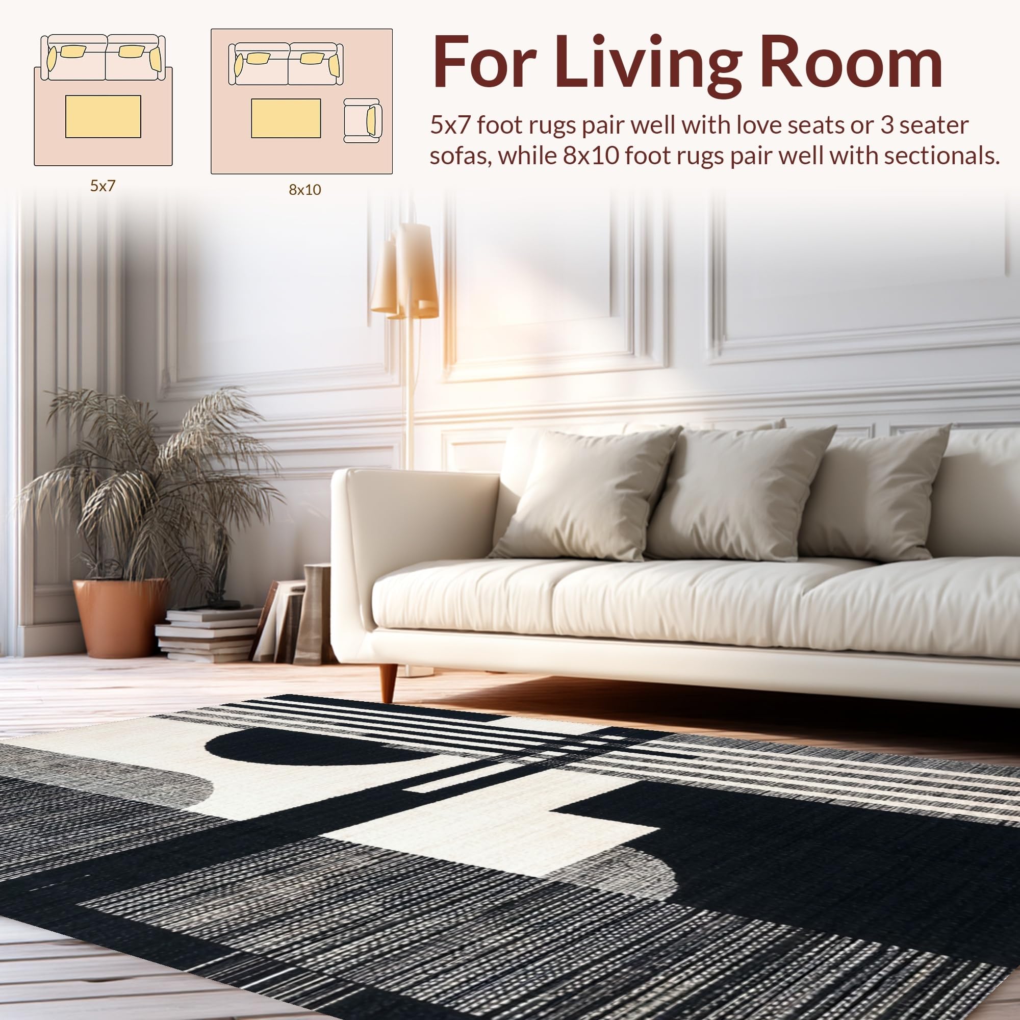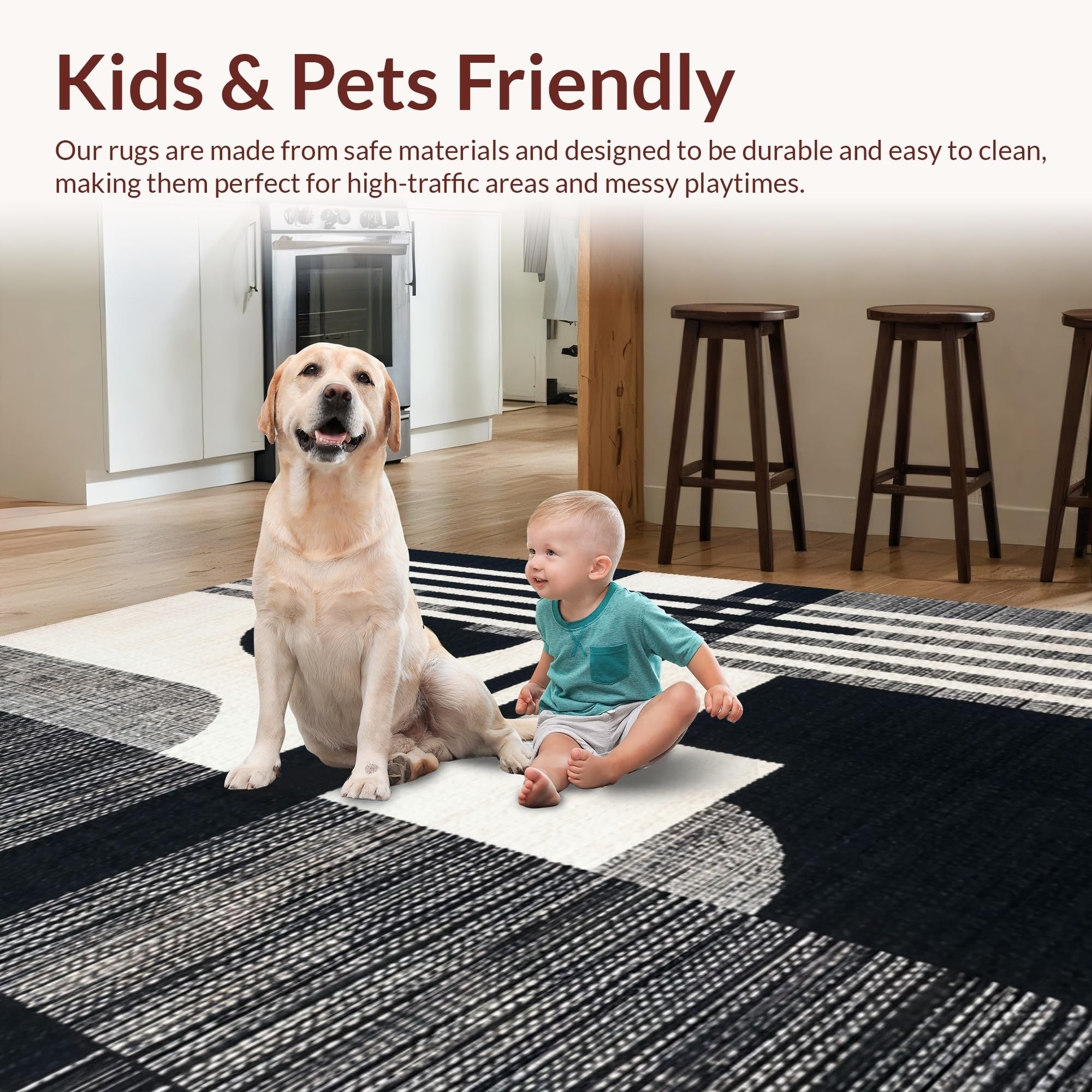 Ultra Soft Area Rug, Non Slip, Stain Resistant, Washable Area Rugs for Living Room, Bedroom, Modern Stripe Symphony: Black and White Geometric Patterned Rug(Black) Overview: