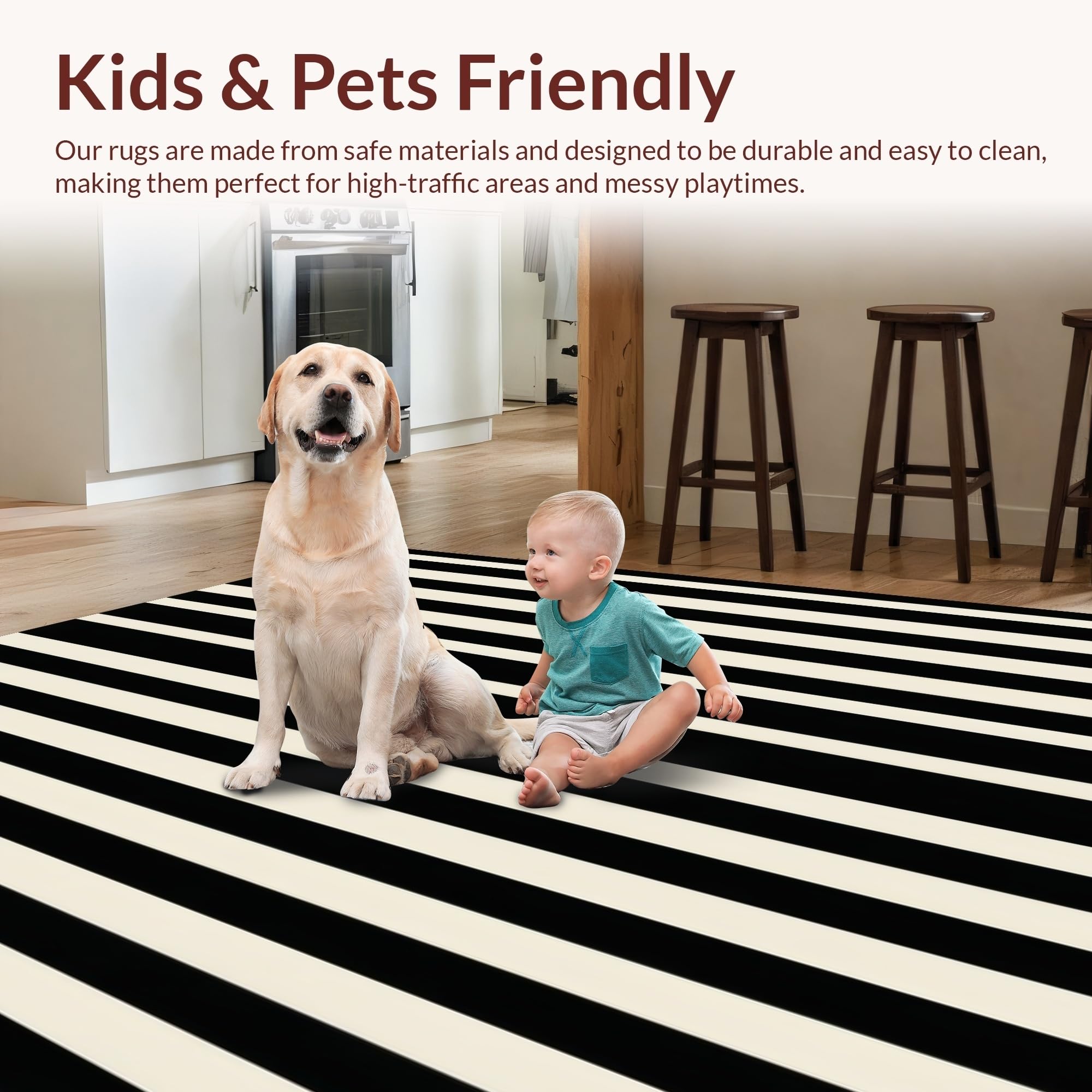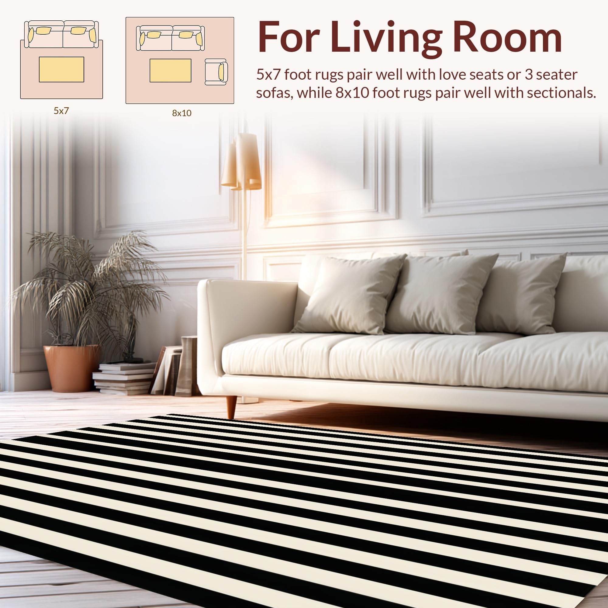 Ultra Soft Area Rug, Non Slip, Stain Resistant, Washable Area Rugs for Living Room, Bedroom, Modern Striped Entryway Black And Beige Porch Decor(Black) Overview:
