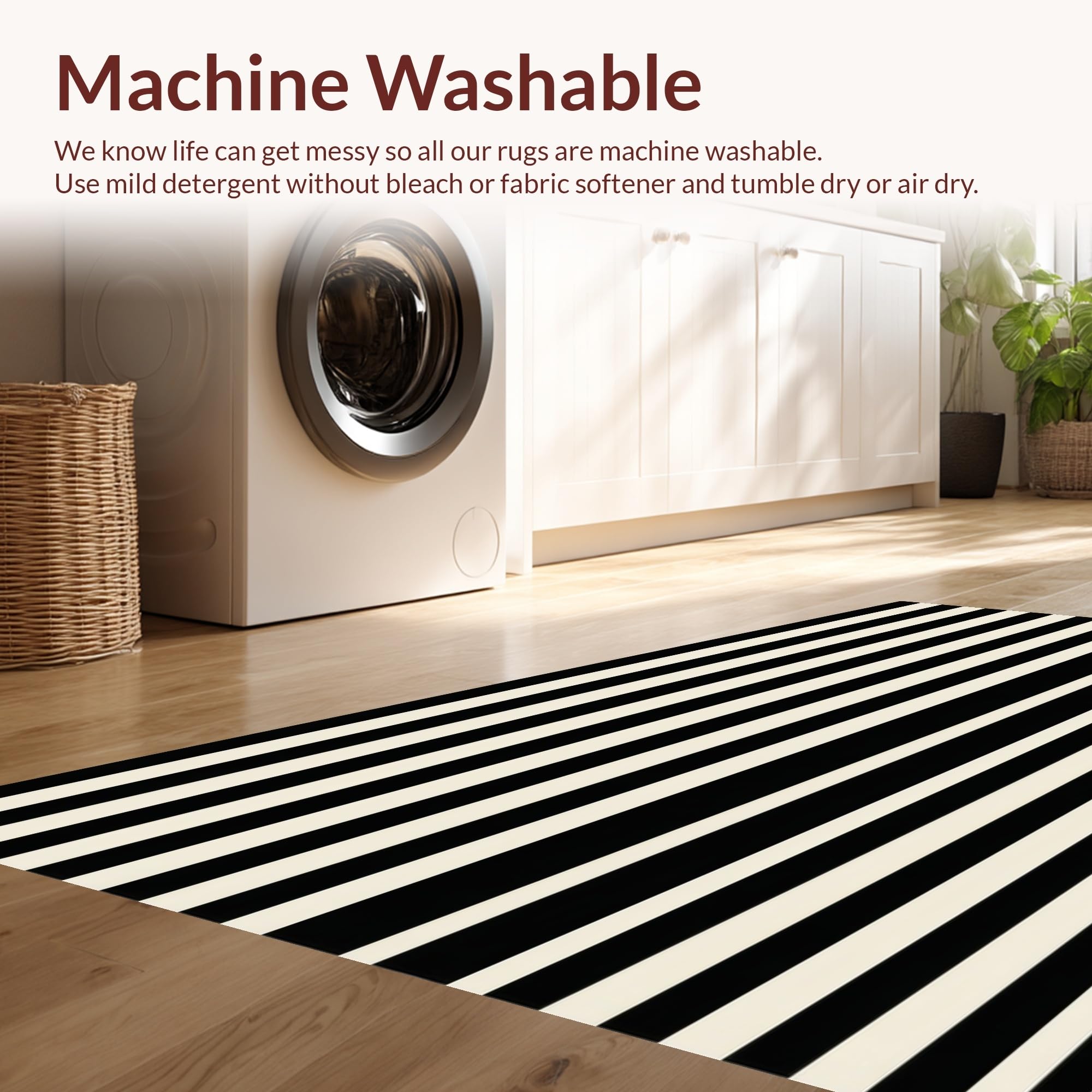 - Machine Washable: Our rugs can be easily thrown in the wash machine.