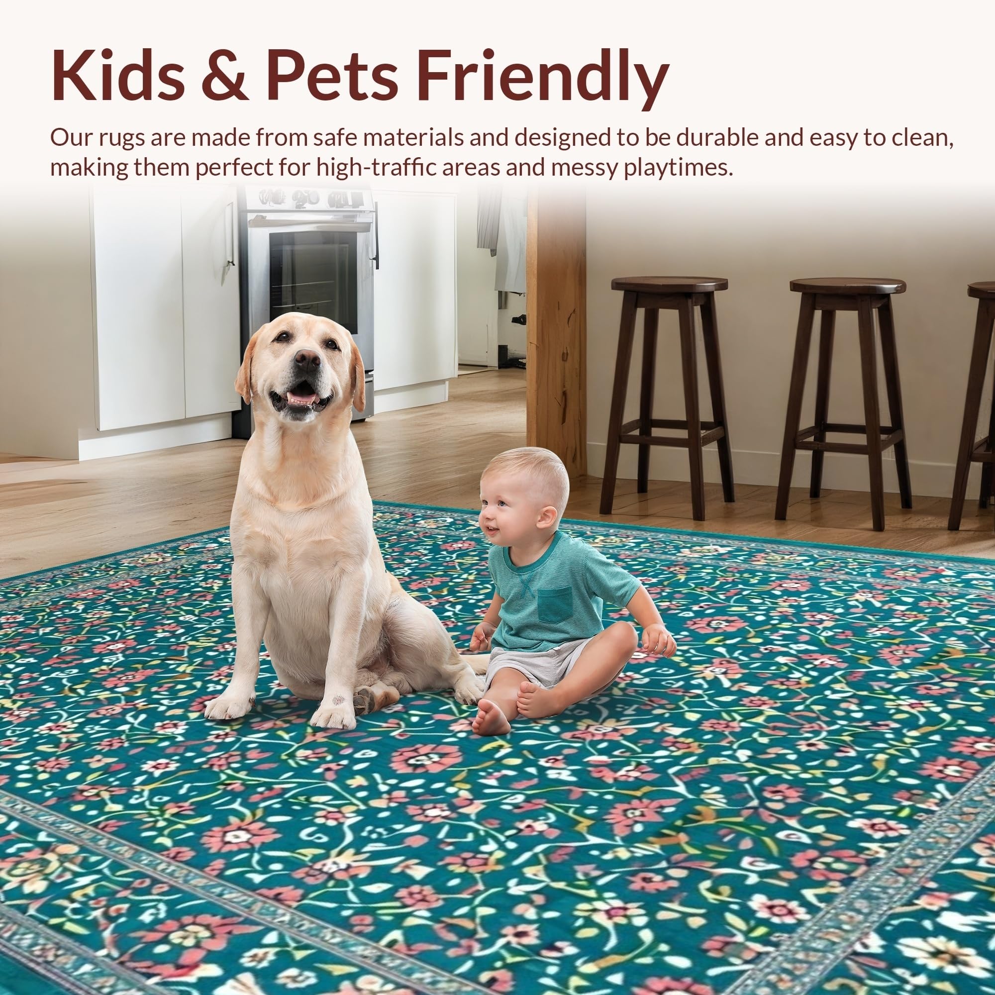 Ultra Soft Area Rug, Non Slip, Stain Resistant, Washable Area Rugs for Living Room, Bedroom, Modern Striped Ethnic Accent(Green) Overview: