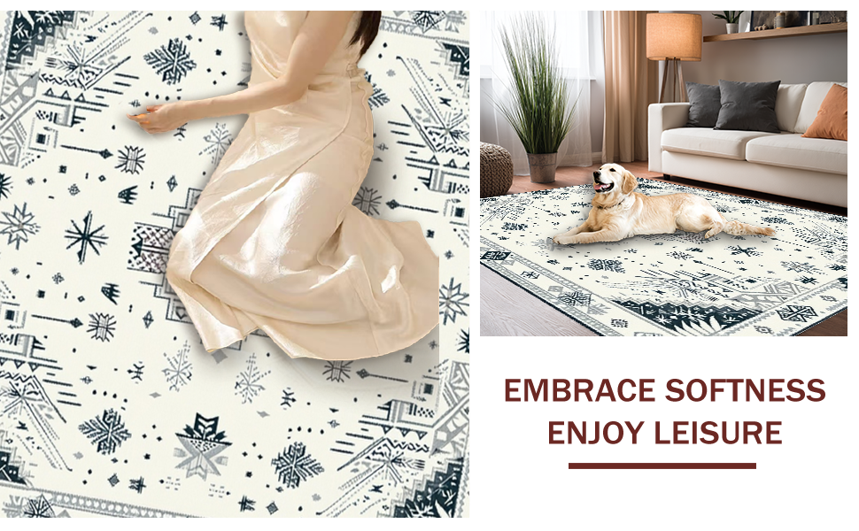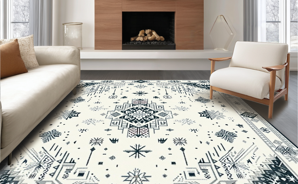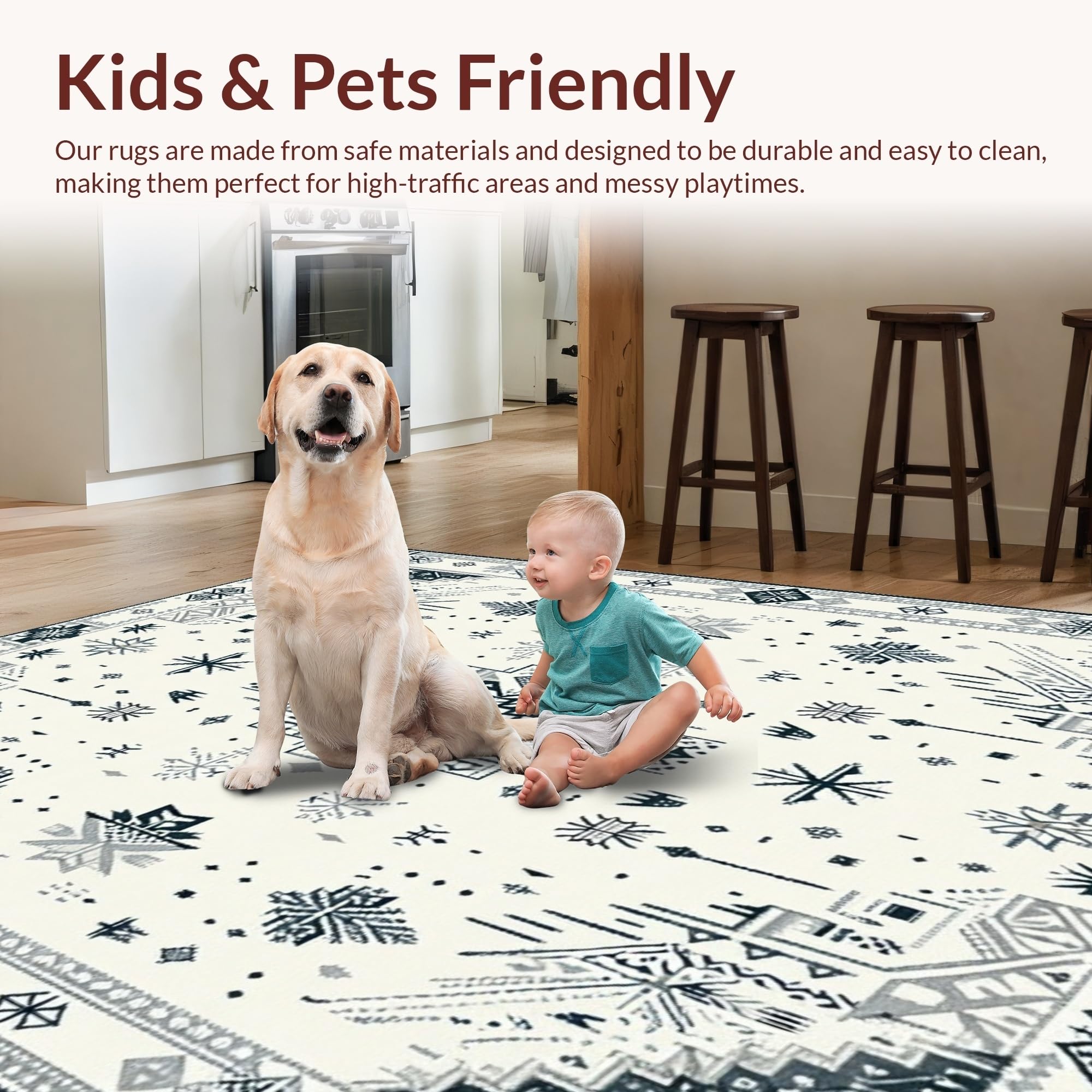 Ultra Soft Area Rug, Non Slip, Stain Resistant, Washable Area Rugs for Living Room, Bedroom, Modern Subtle Patterned Hide Accent(White) Overview: