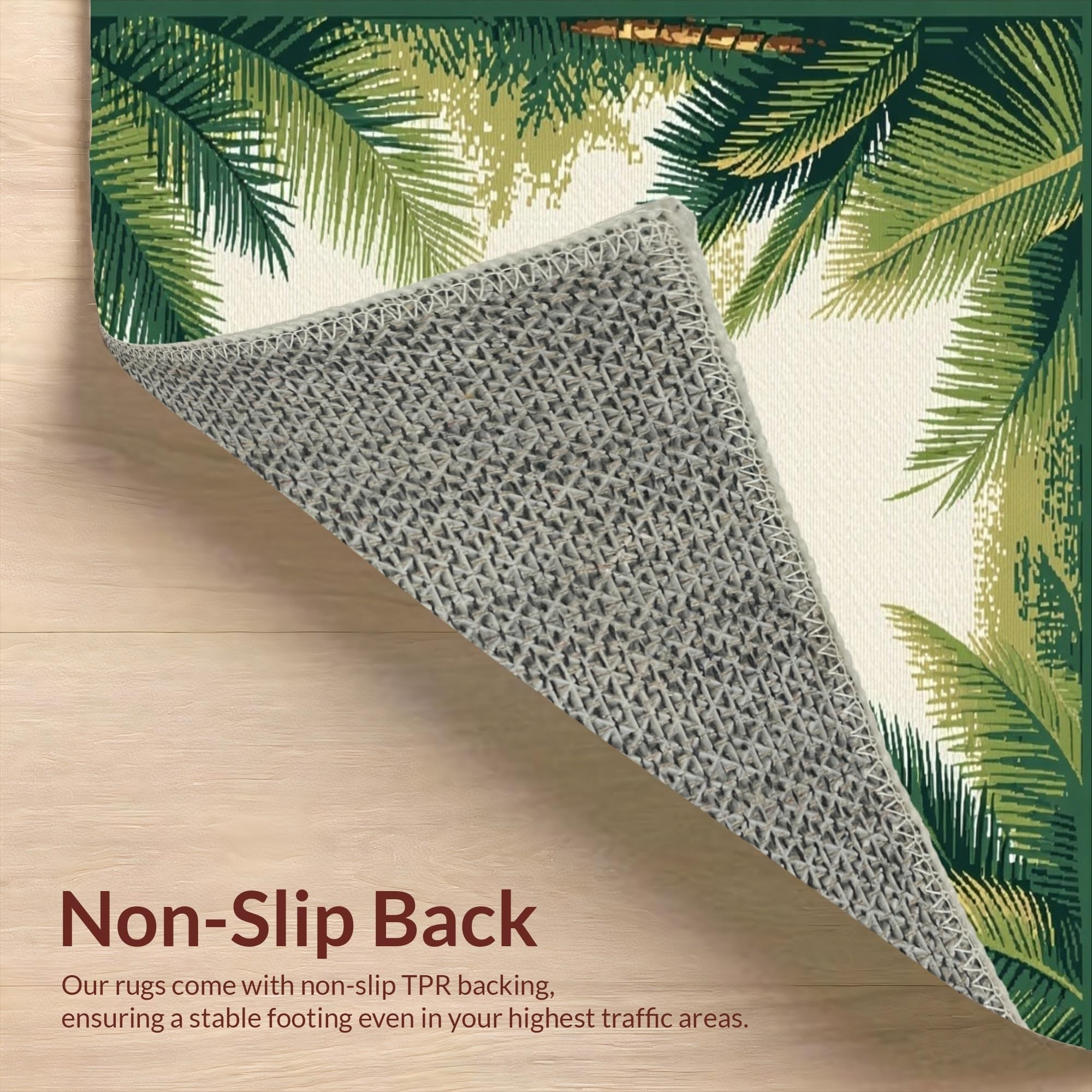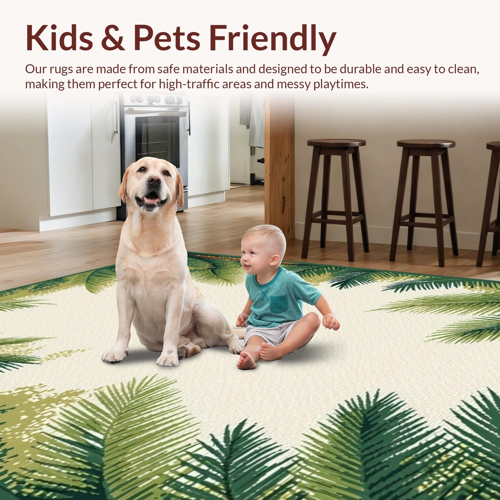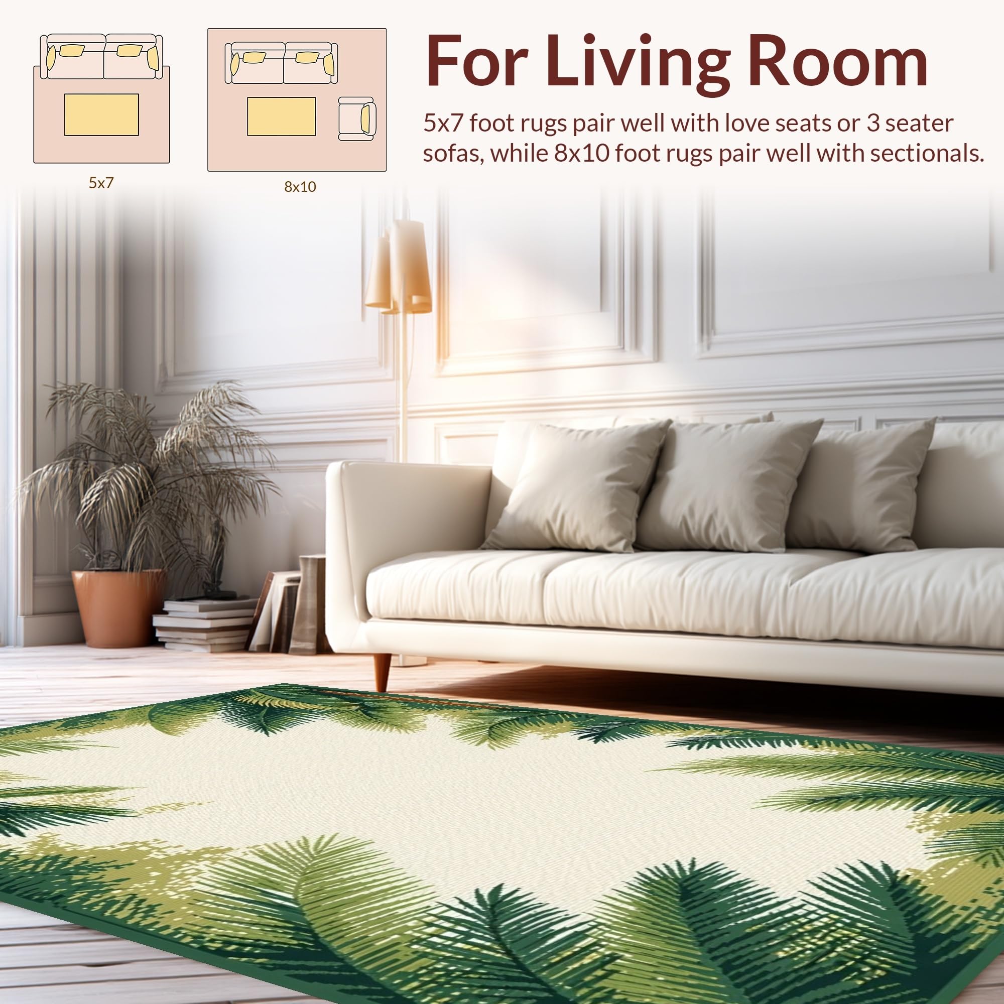 Ultra Soft Area Rug, Non Slip, Stain Resistant, Washable Area Rugs for Living Room, Bedroom, Modern Tropical Oasis Look(Green) Overview:
