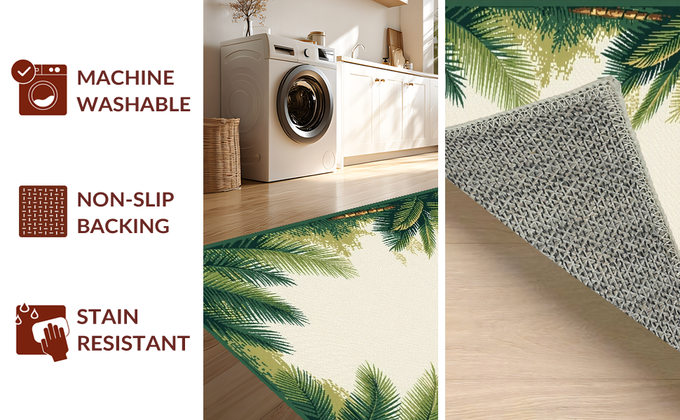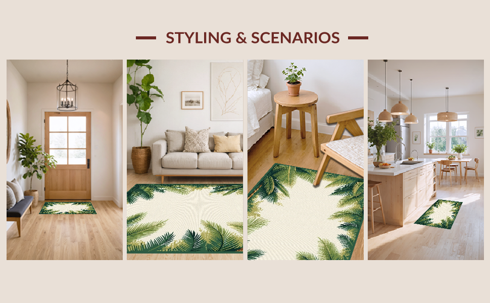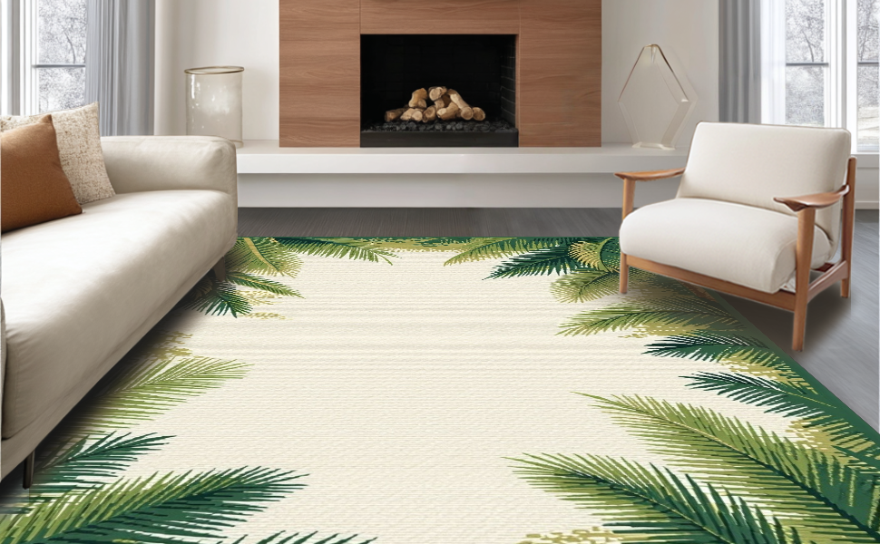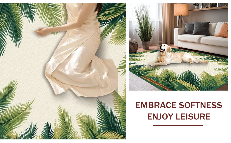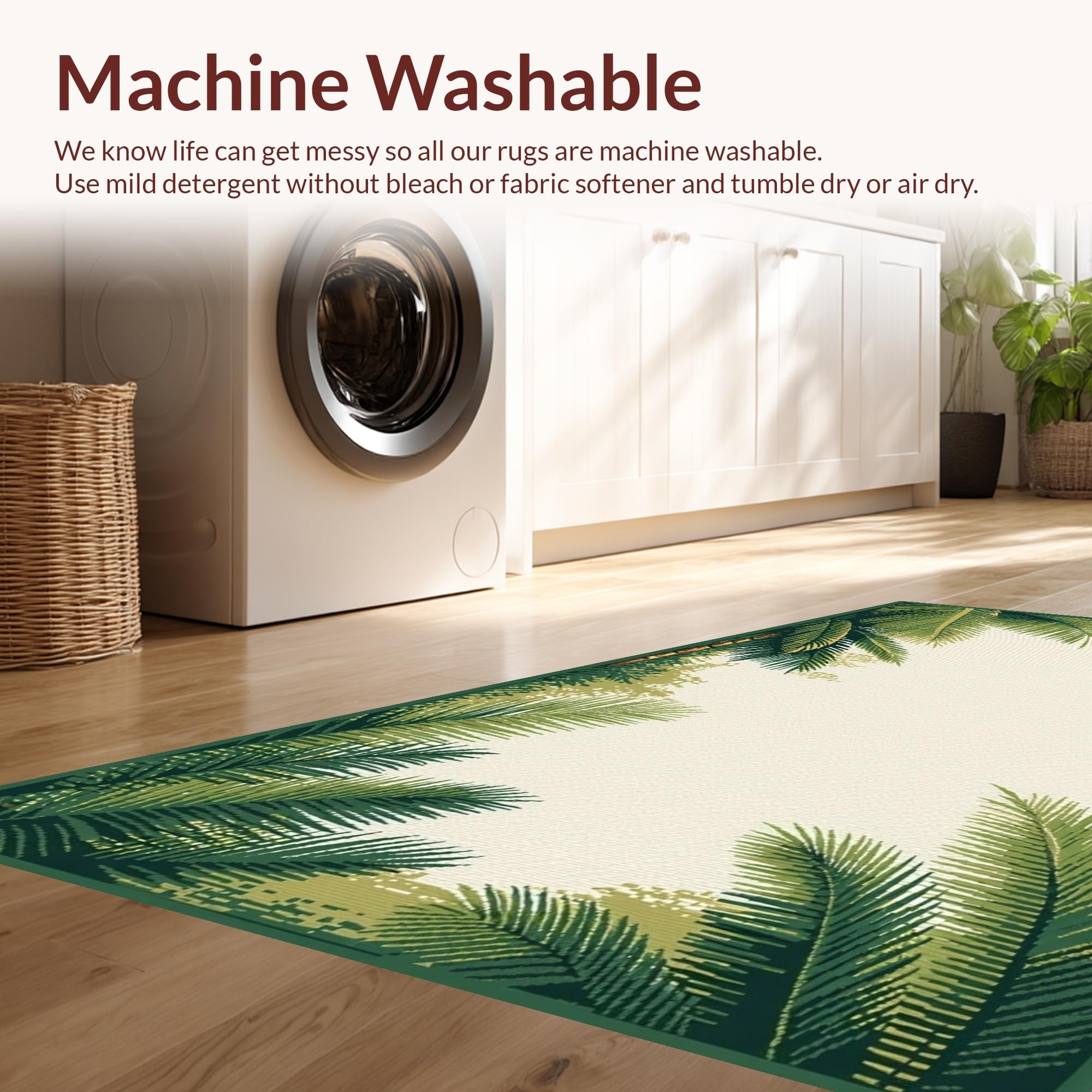 Ultra Soft Area Rug, Non Slip, Stain Resistant, Washable Area Rugs for Living Room, Bedroom, Modern Tropical Oasis Look(Green) Overview: