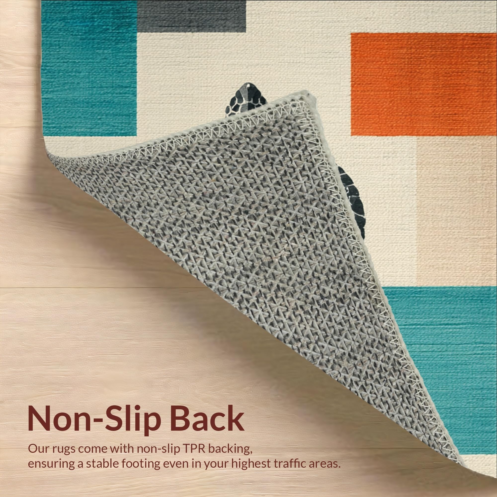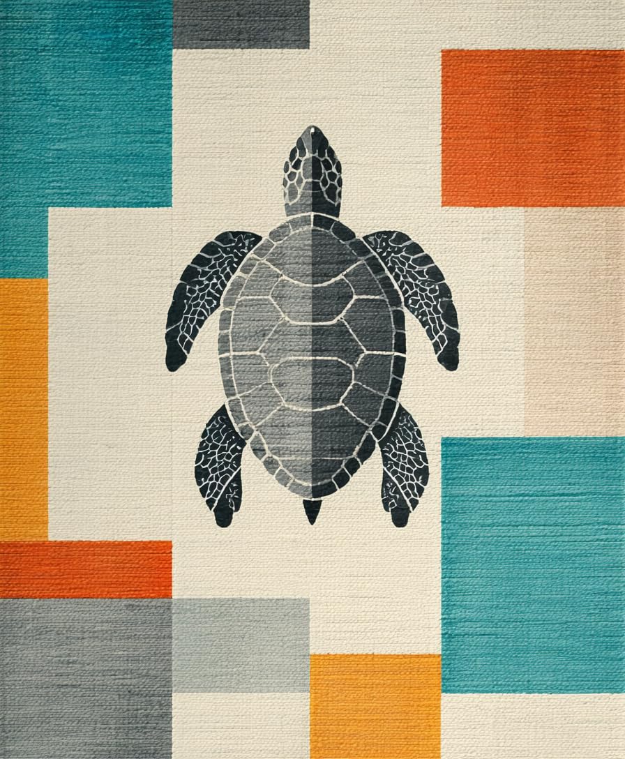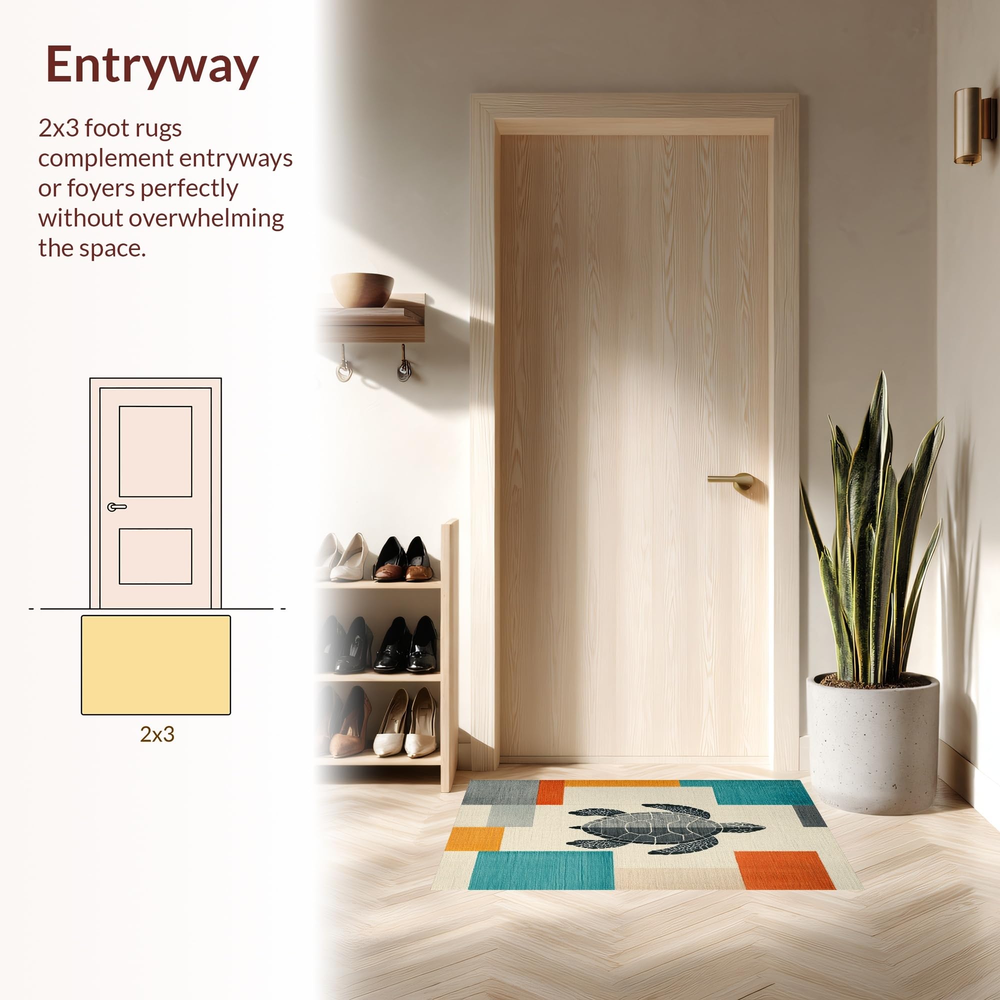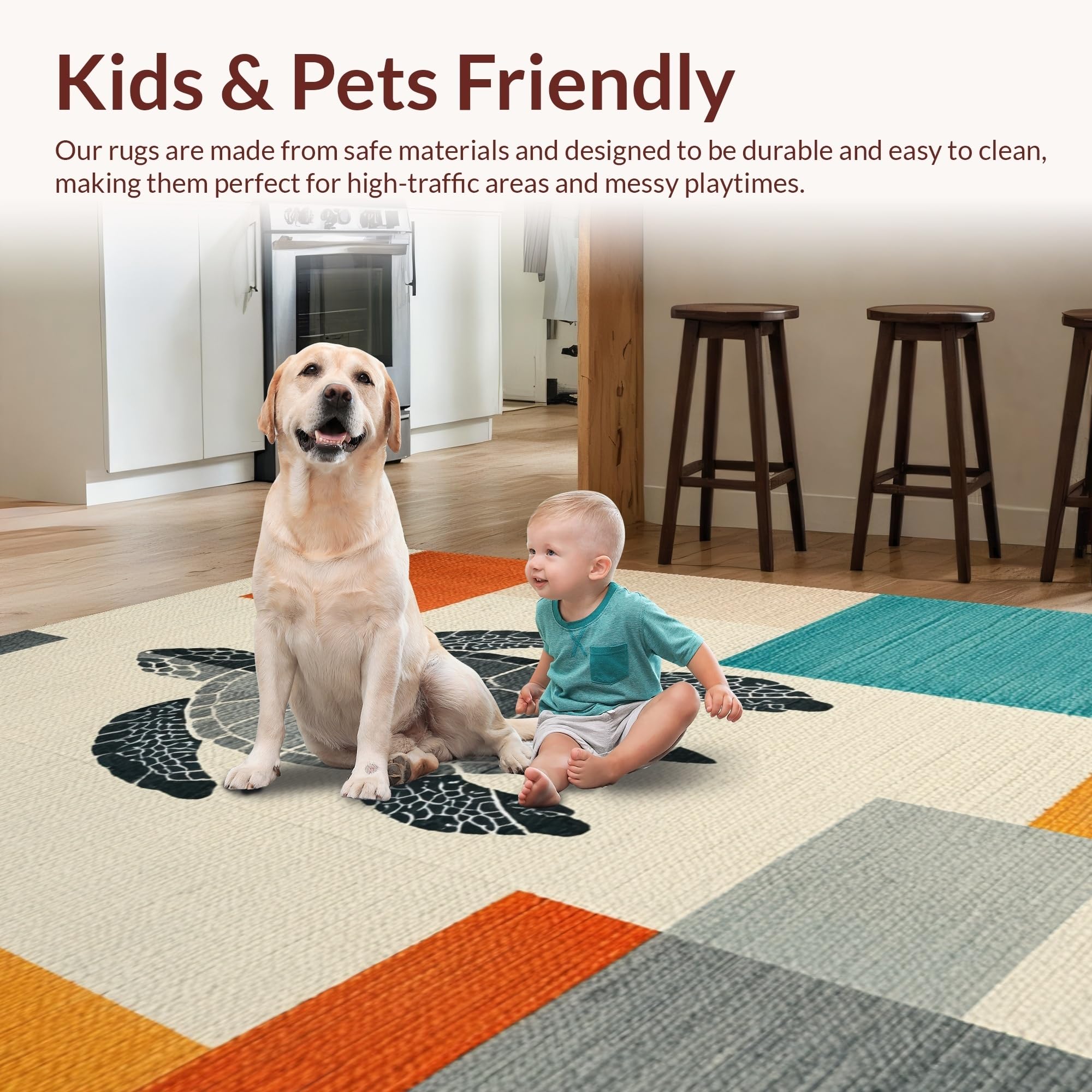 Ultra Soft Area Rug, Non Slip, Stain Resistant, Washable Area Rugs for Living Room, Bedroom, Modern Turtle Surfboard Rug With Vibrant Ocean Inspired Color Blocks(Beige) Overview: