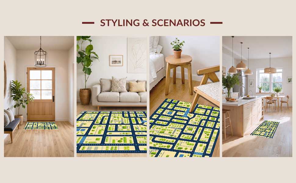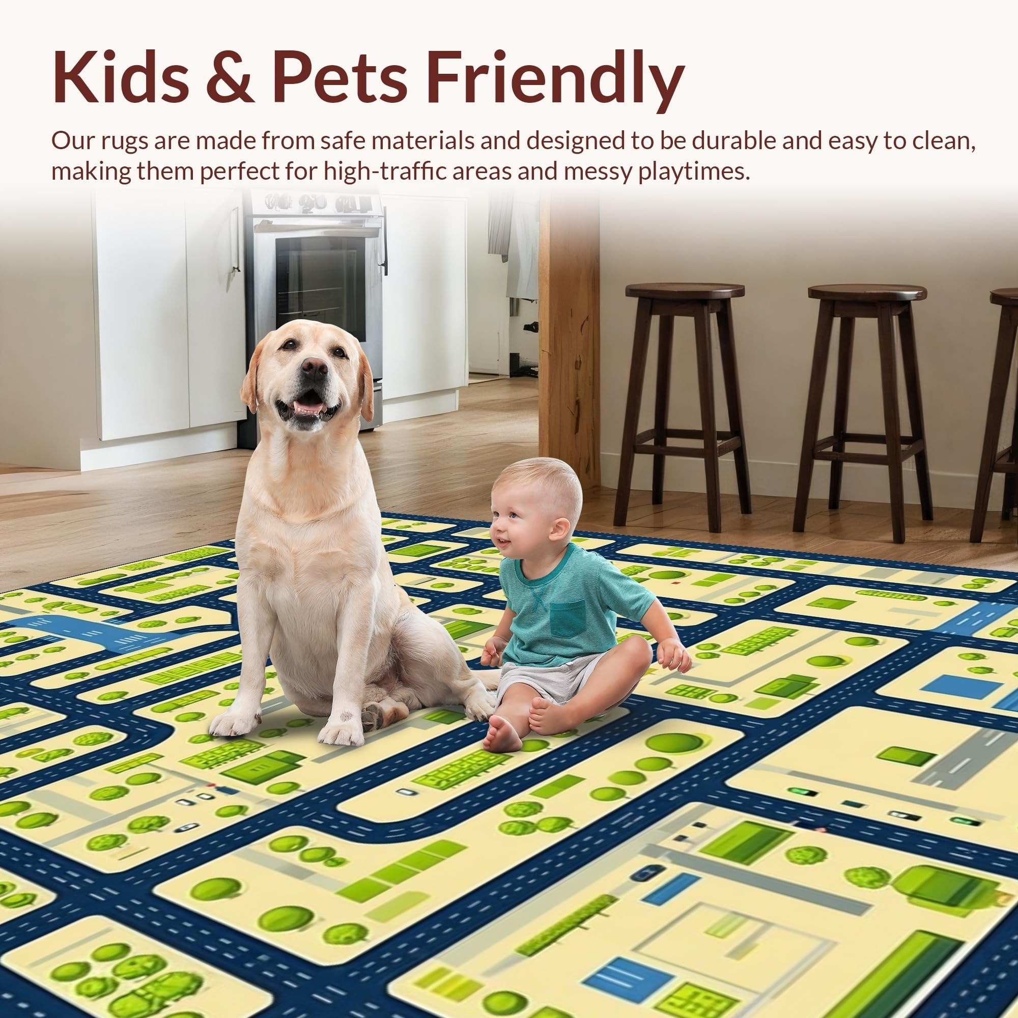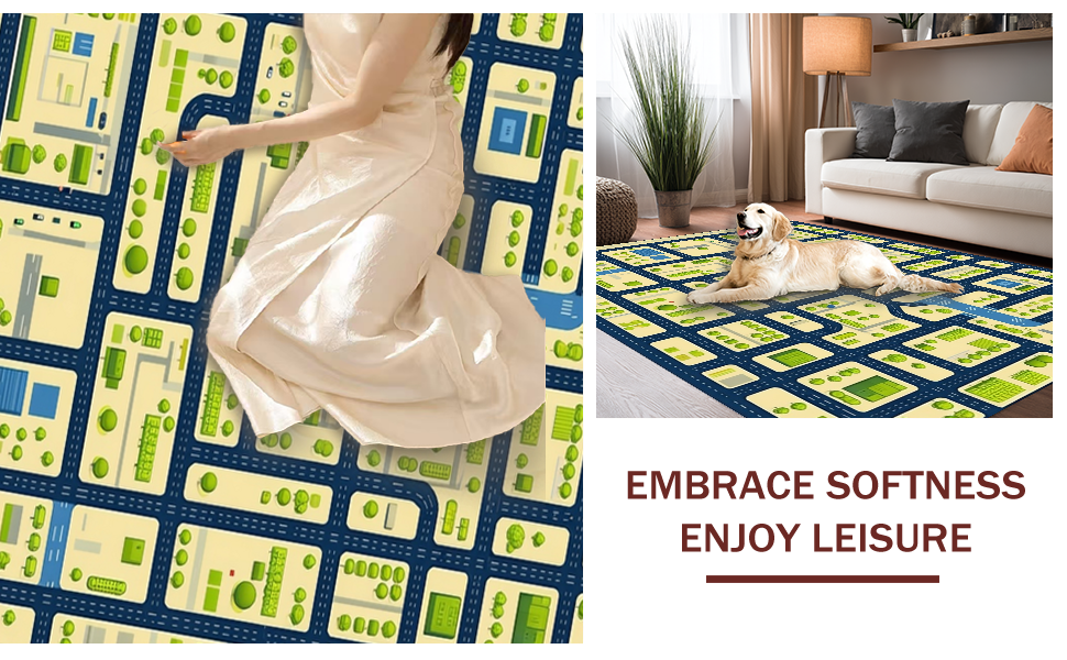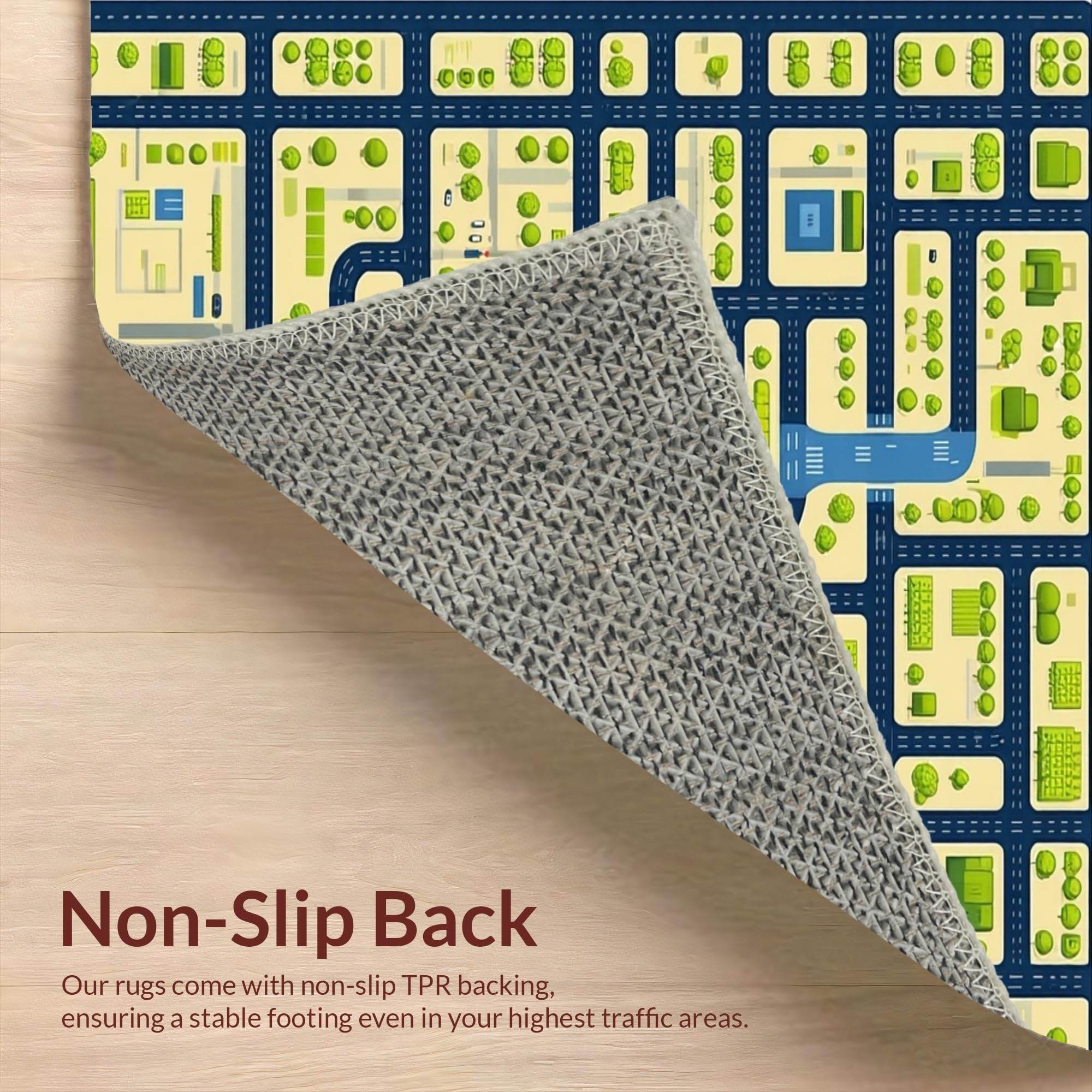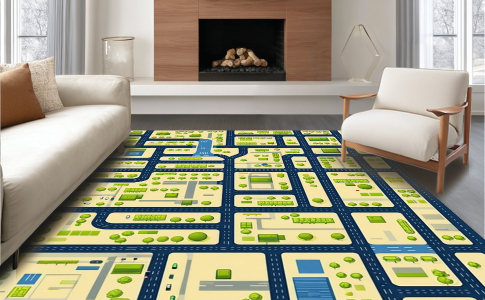 Ultra Soft Area Rug, Non Slip, Stain Resistant, Washable Area Rugs for Living Room, Bedroom, Modern Urban Traffic Layout(Blue) Overview: