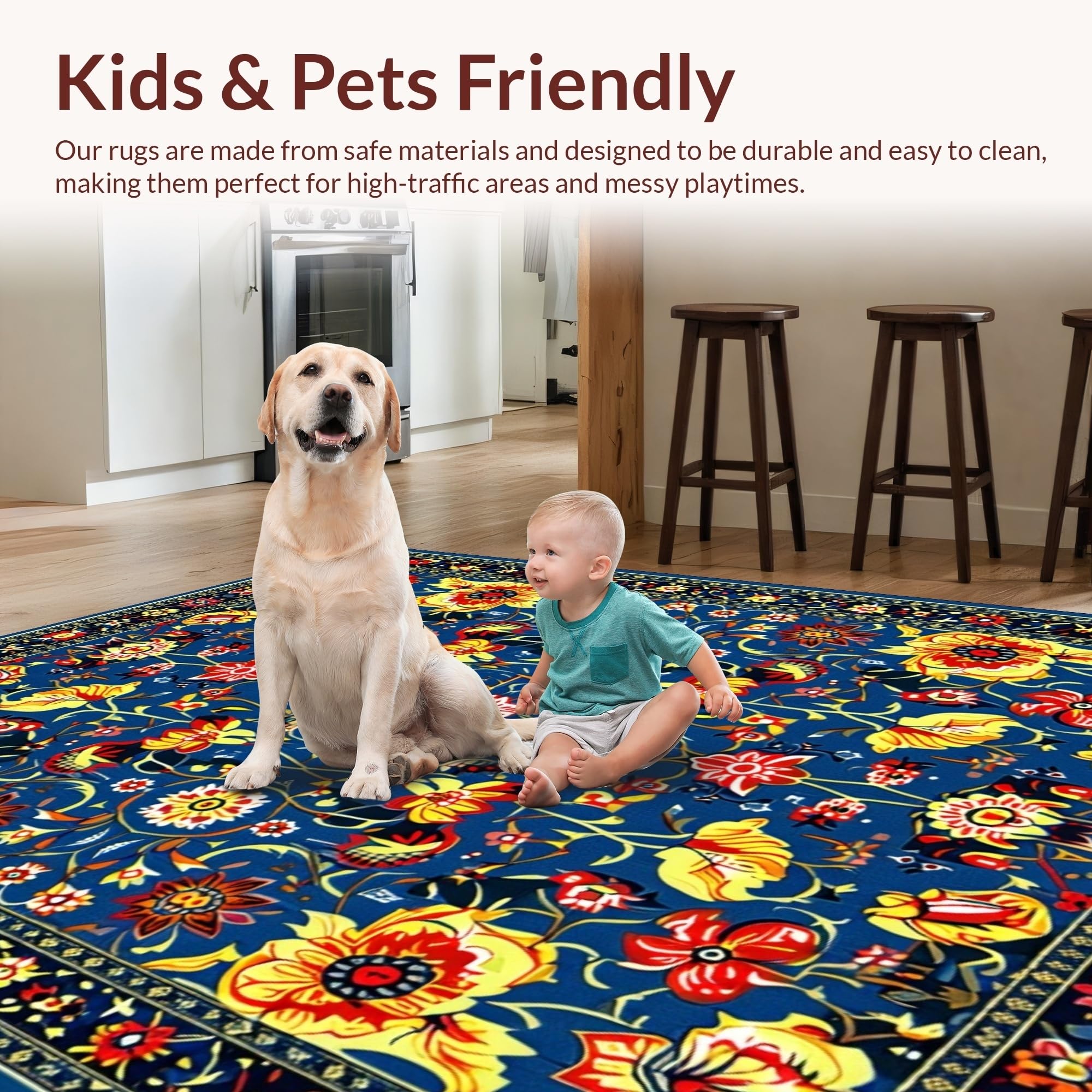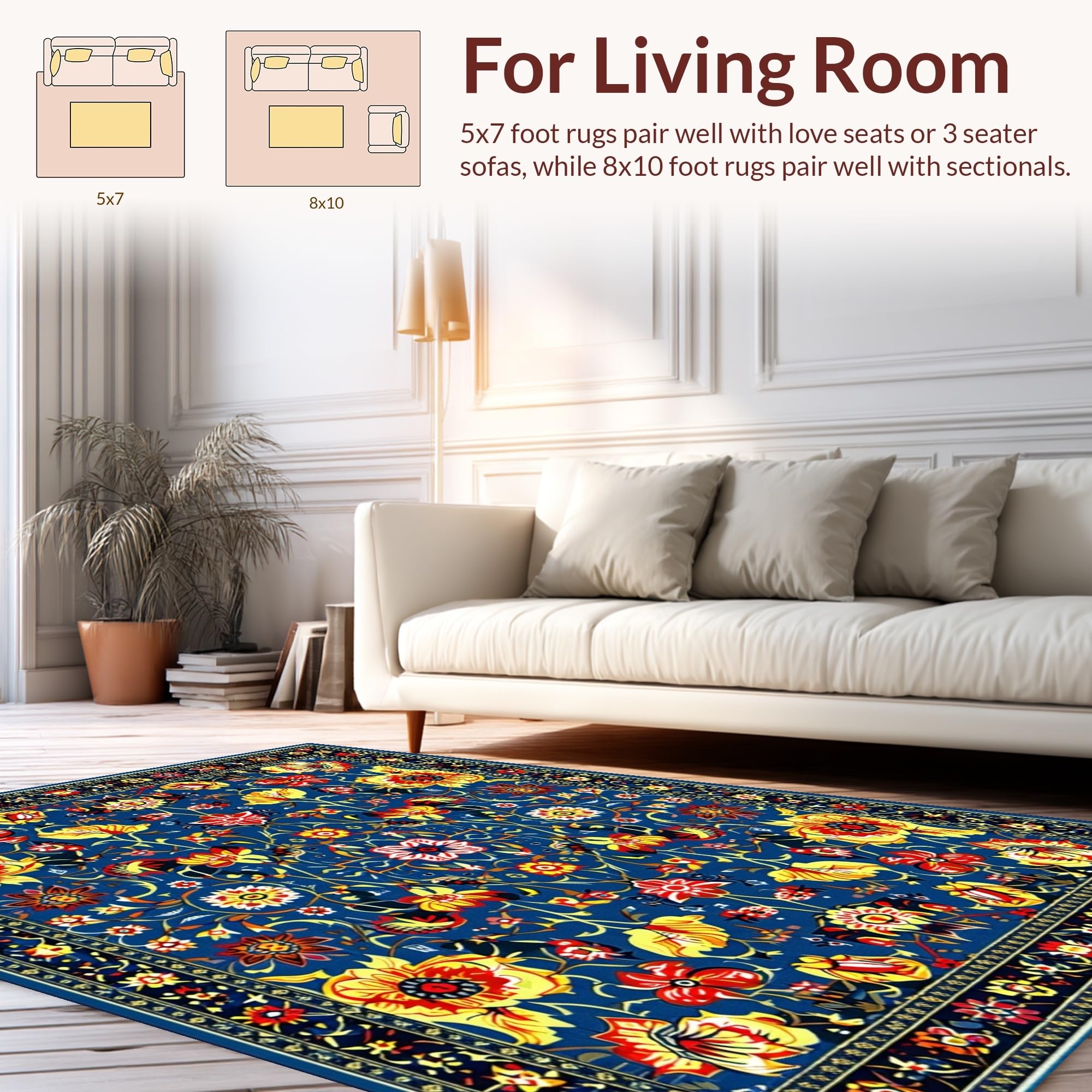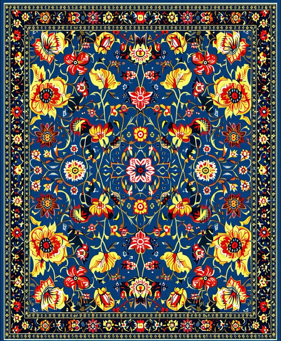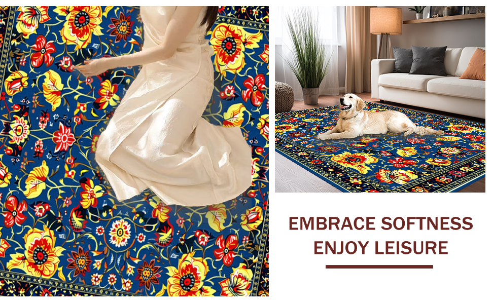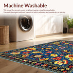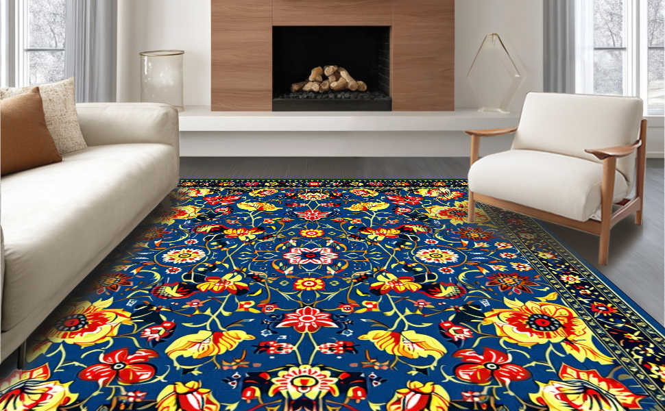 Ultra Soft Area Rug, Non Slip, Stain Resistant, Washable Area Rugs for Living Room, Bedroom, Modern Vibrant Botanical Arrangement(Blue) Overview: