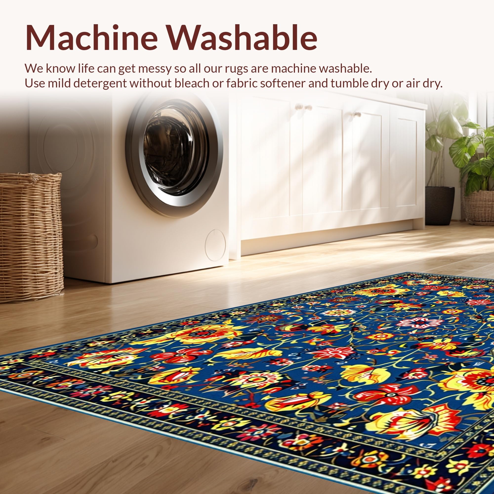 - Machine Washable: Our rugs can be easily thrown in the wash machine.