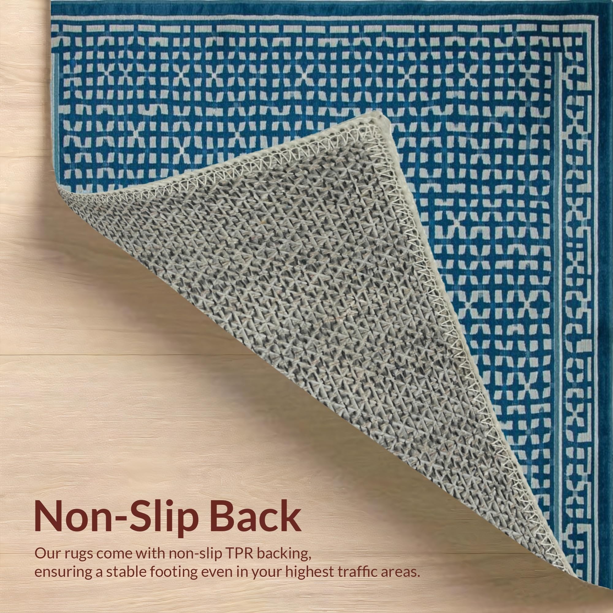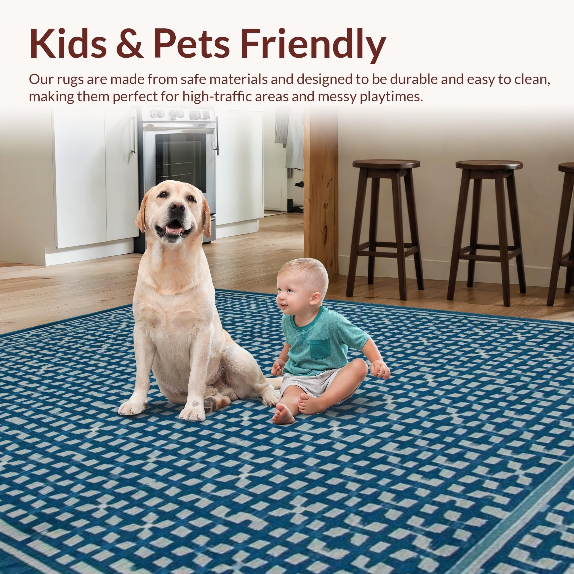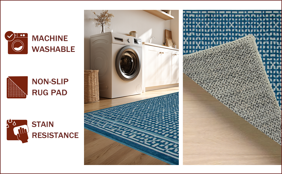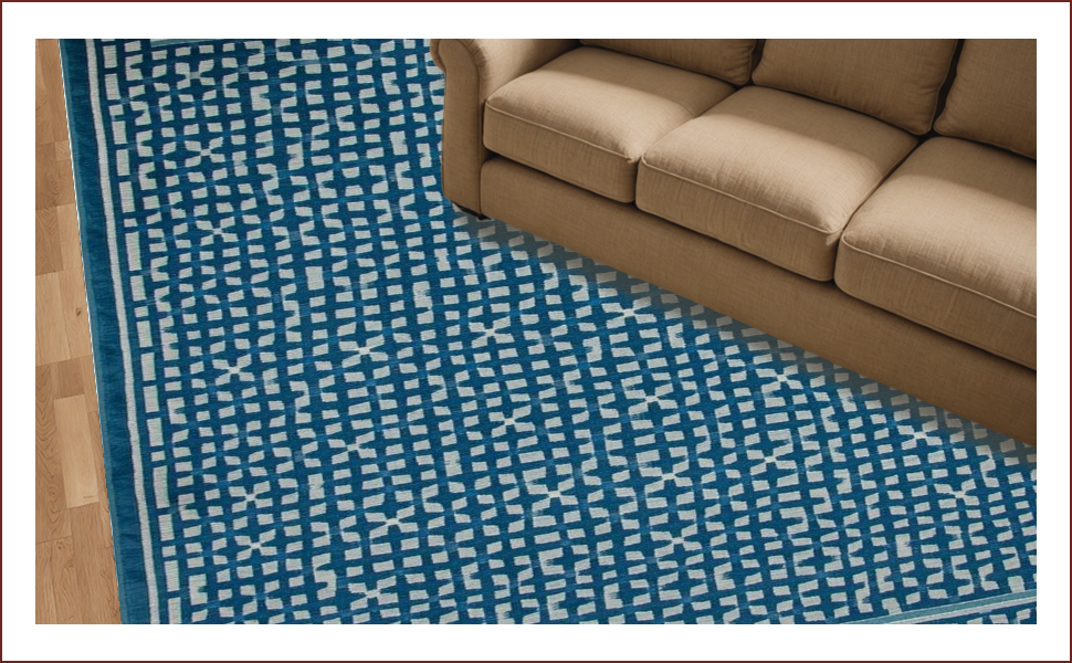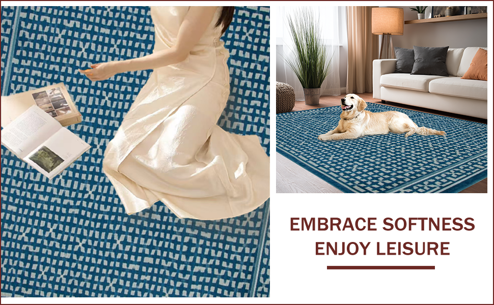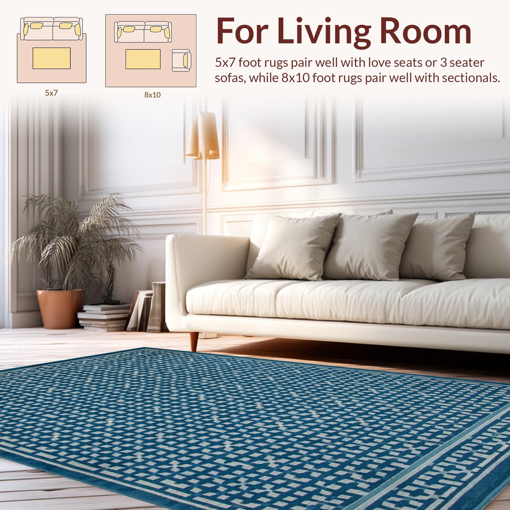Ultra Soft Area Rug, Non Slip, Stain Resistant, Washable Area Rugs for Living Room, Bedroom, Modern Vibrant Lattice Artistry(Blue) Overview: