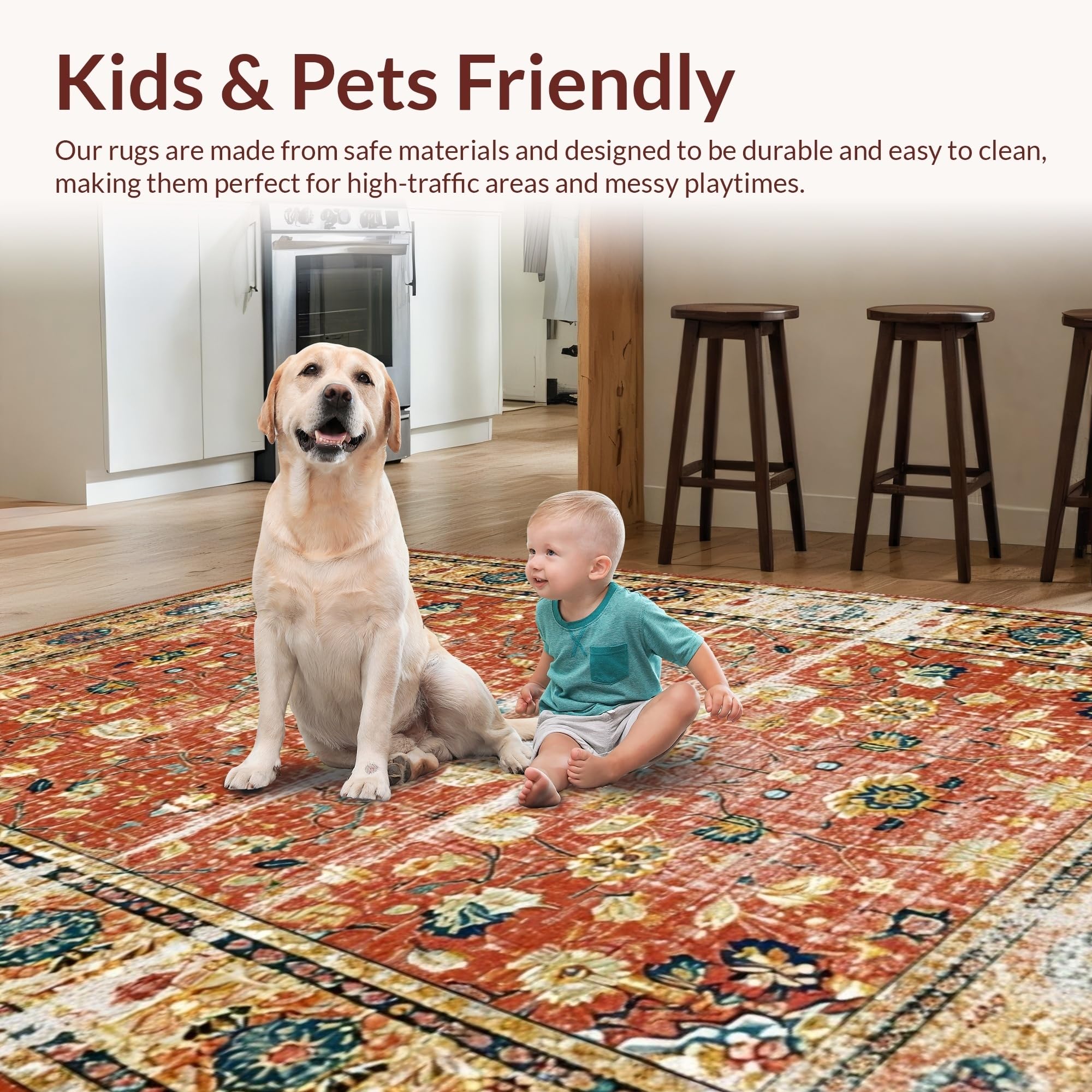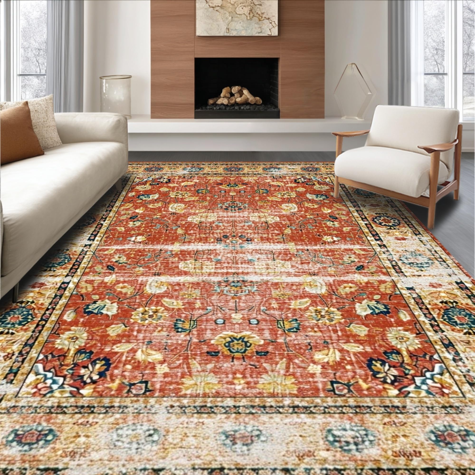 Ultra Soft Area Rug, Non Slip, Stain Resistant, Washable Area Rugs for Living Room, Bedroom, Modern Vibrant Trellis Aesthetic(Red) Overview: