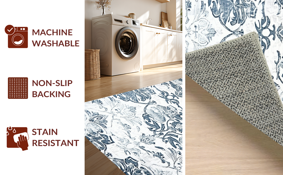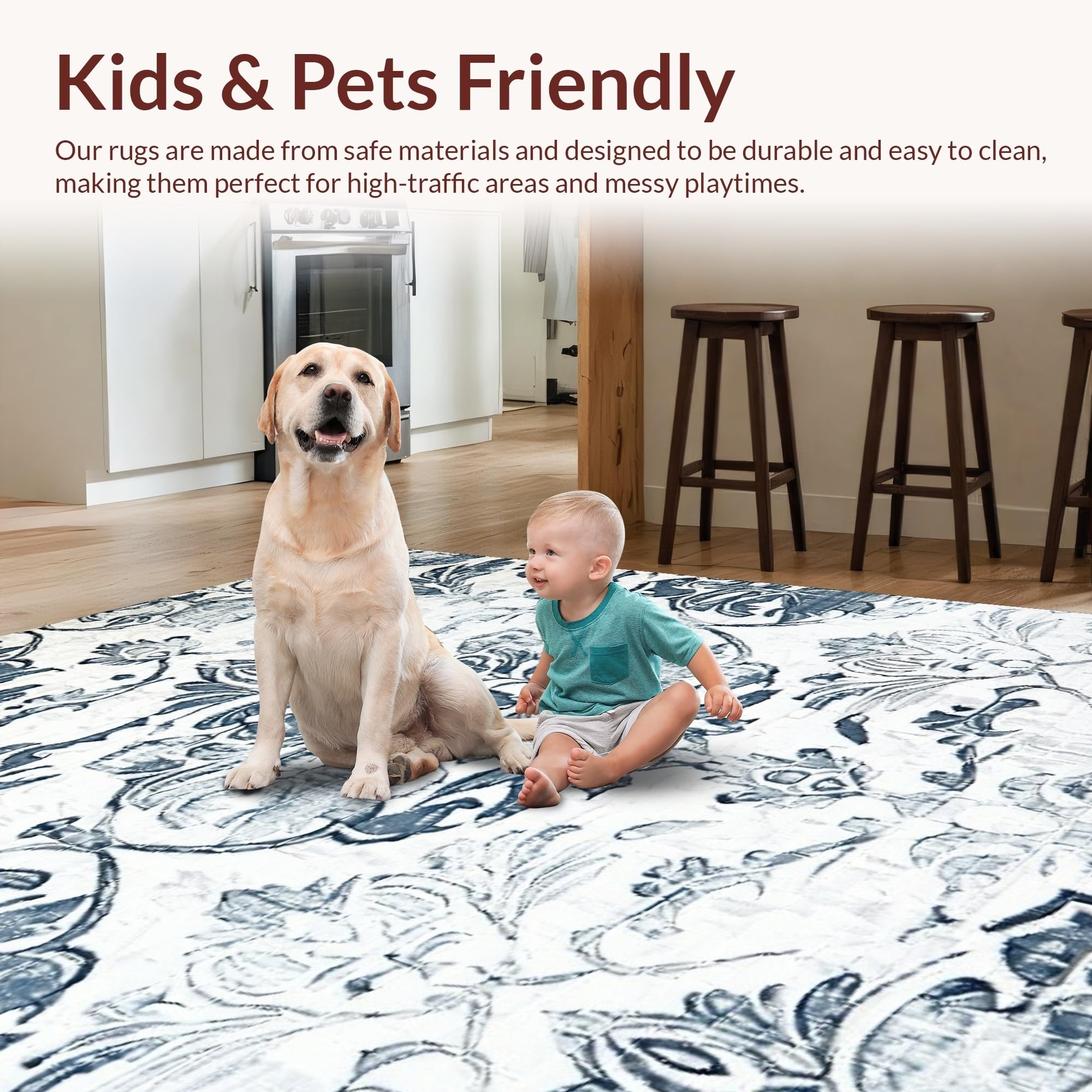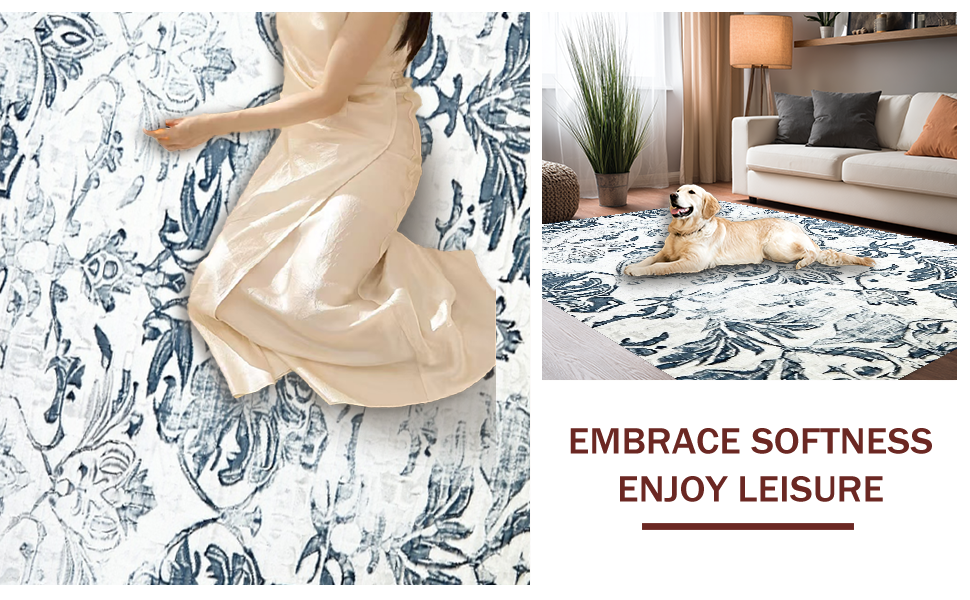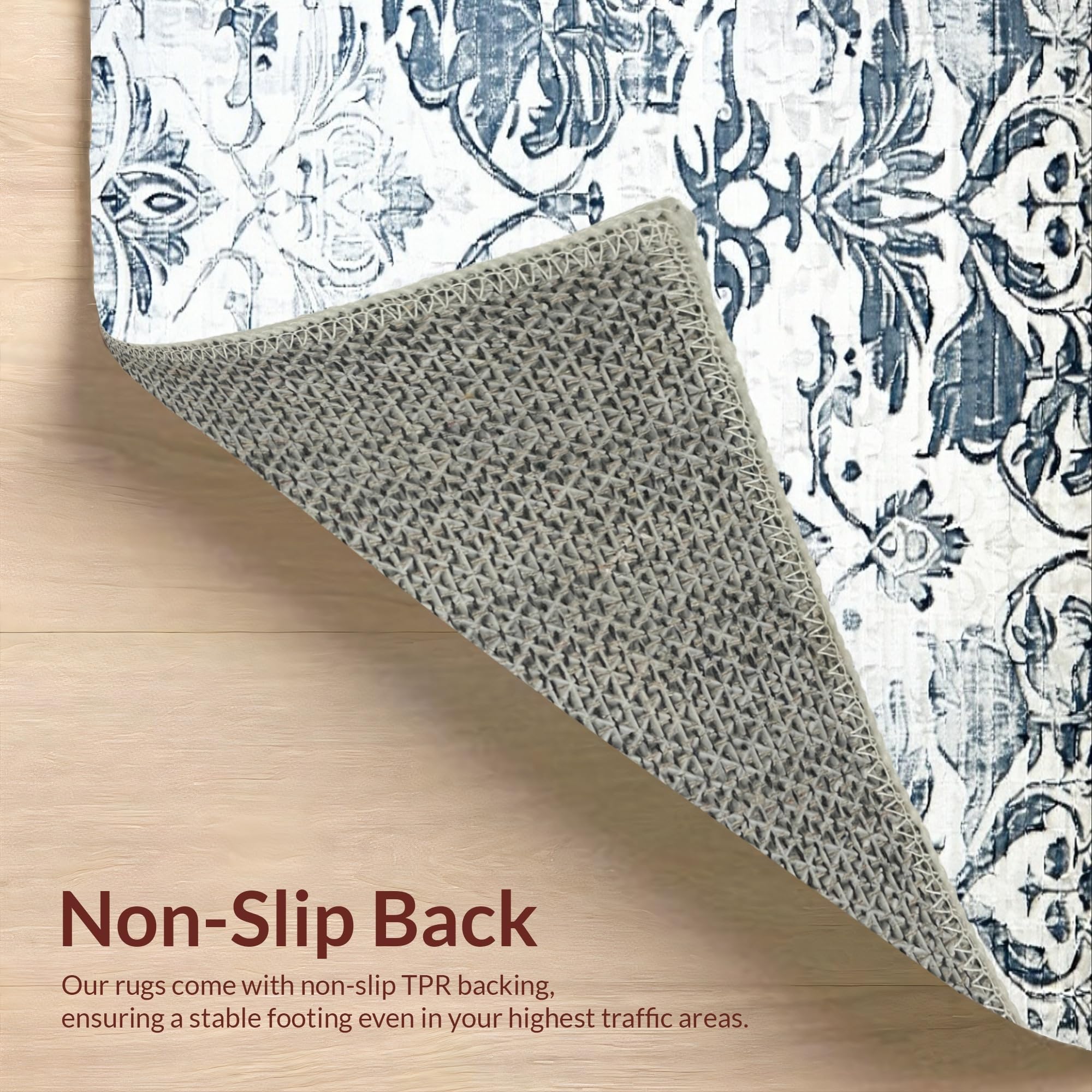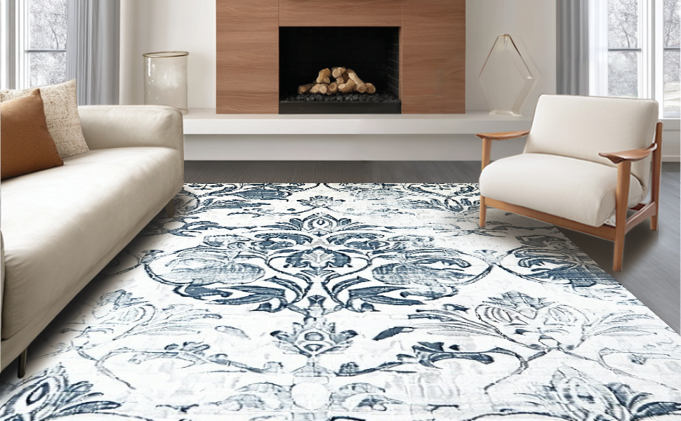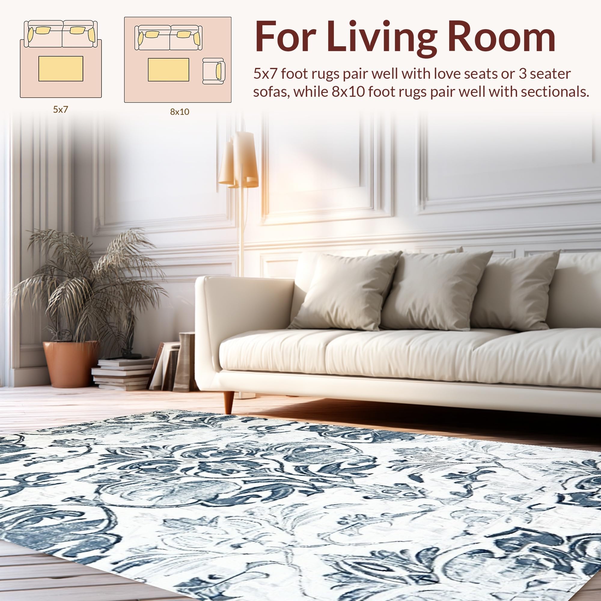 Ultra Soft Area Rug, Non Slip, Stain Resistant, Washable Area Rugs for Living Room, Bedroom, Modern Vintage Inspired Floral Print(Blue) Overview: