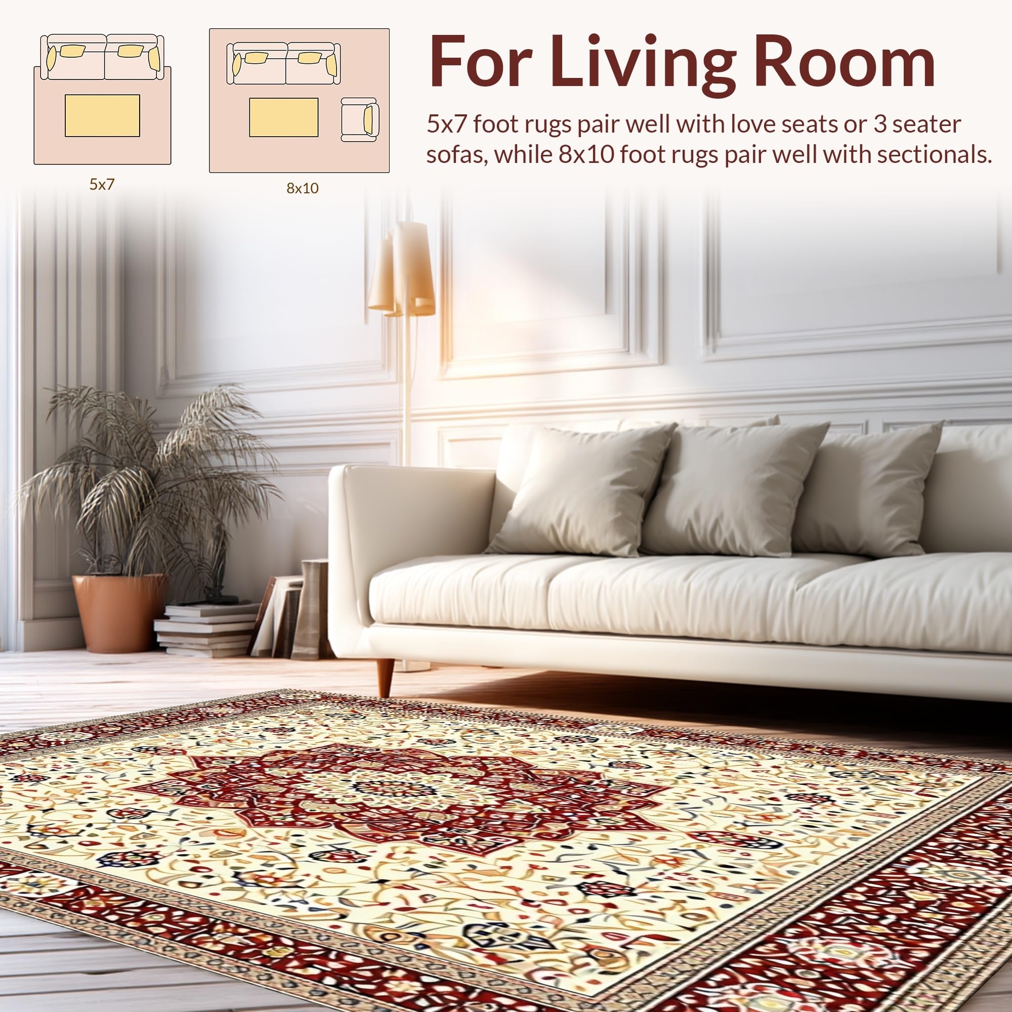 Ultra Soft Area Rug, Non Slip, Stain Resistant, Washable Area Rugs for Living Room, Bedroom, Modern Vintage Runner for Hallways(Beige) Overview: