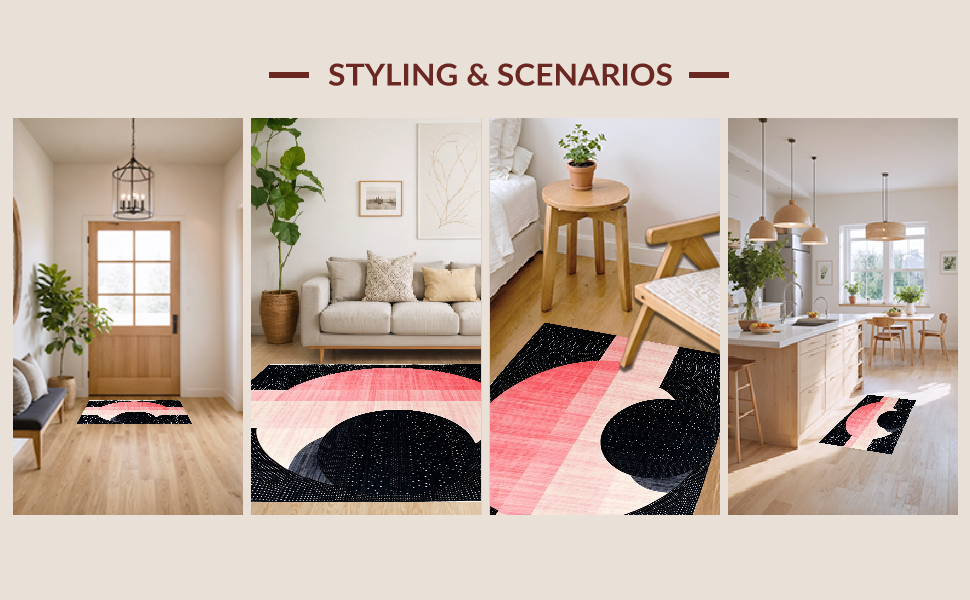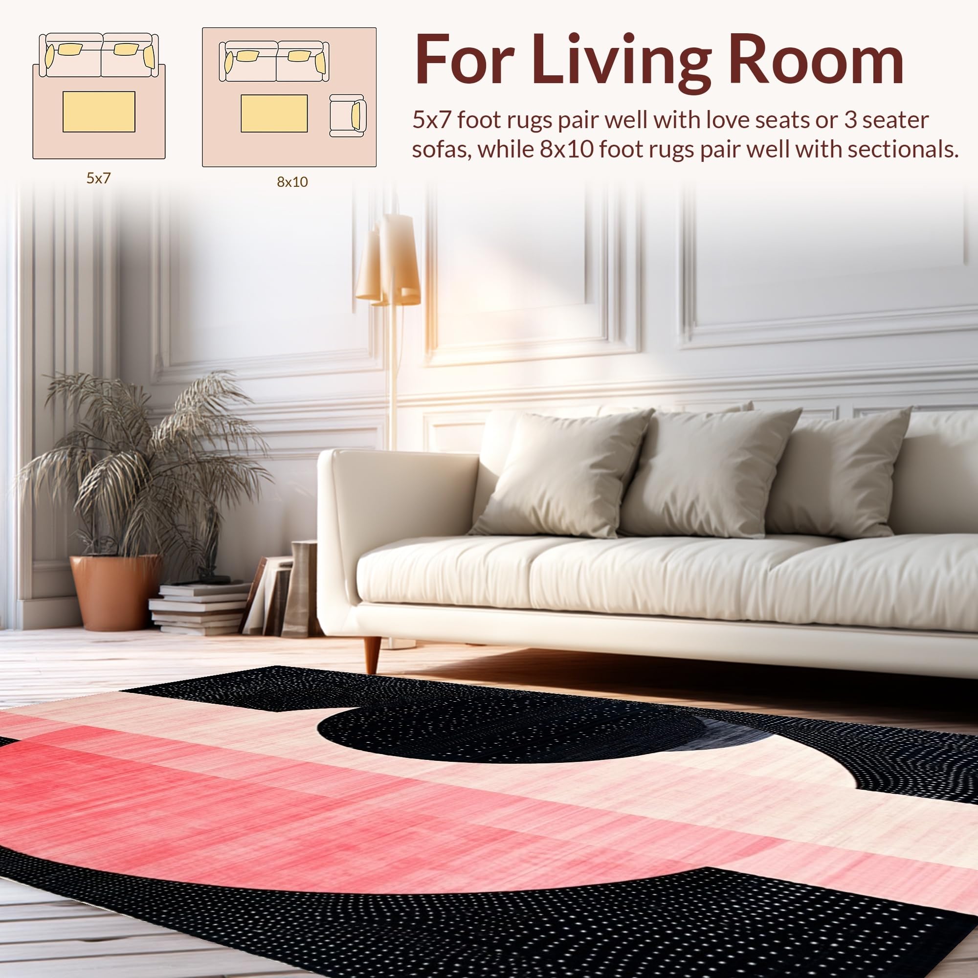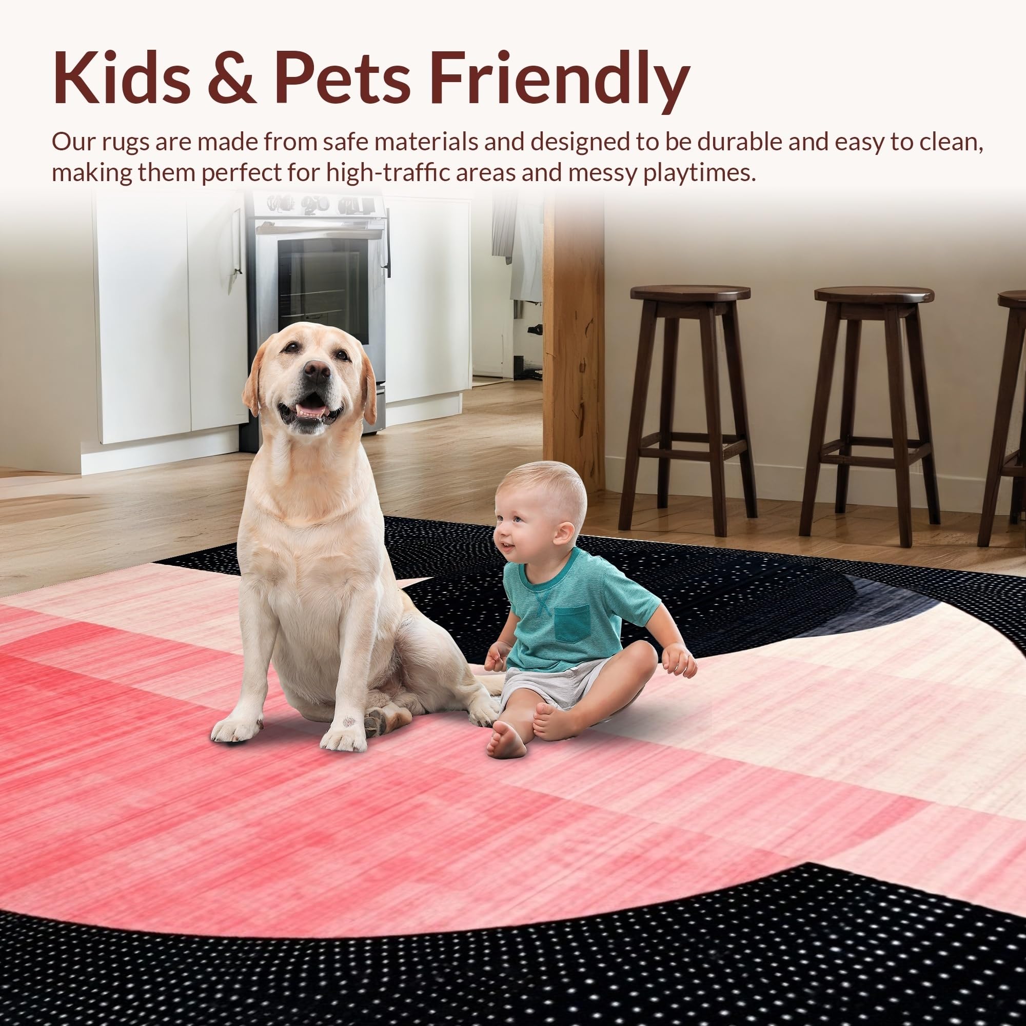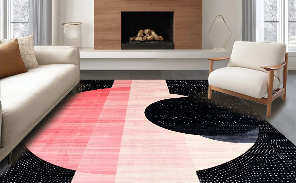 Ultra Soft Area Rug, Non Slip, Stain Resistant, Washable Area Rugs for Living Room, Bedroom, Modern Vintage Tiled Arrangement(Pink) Overview: