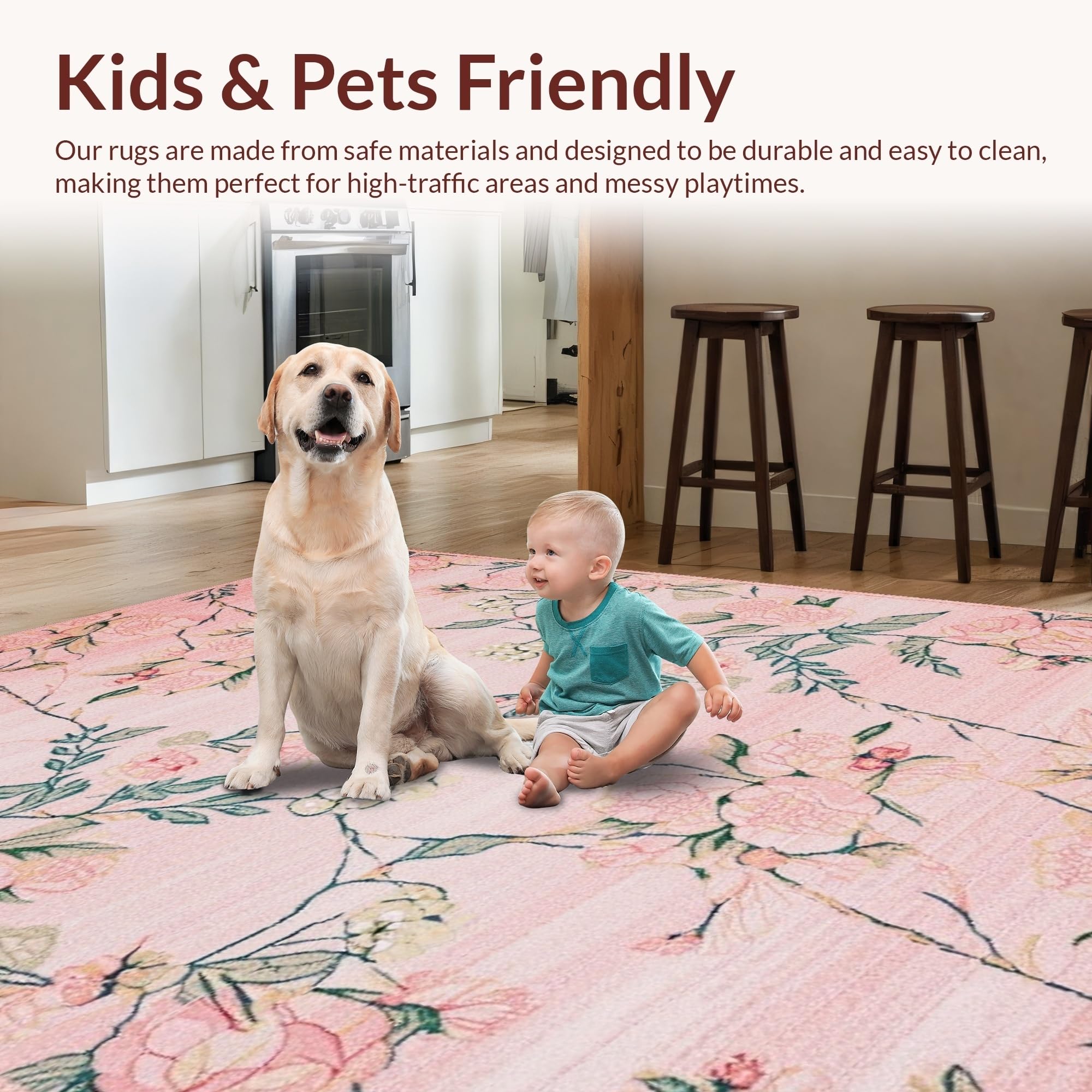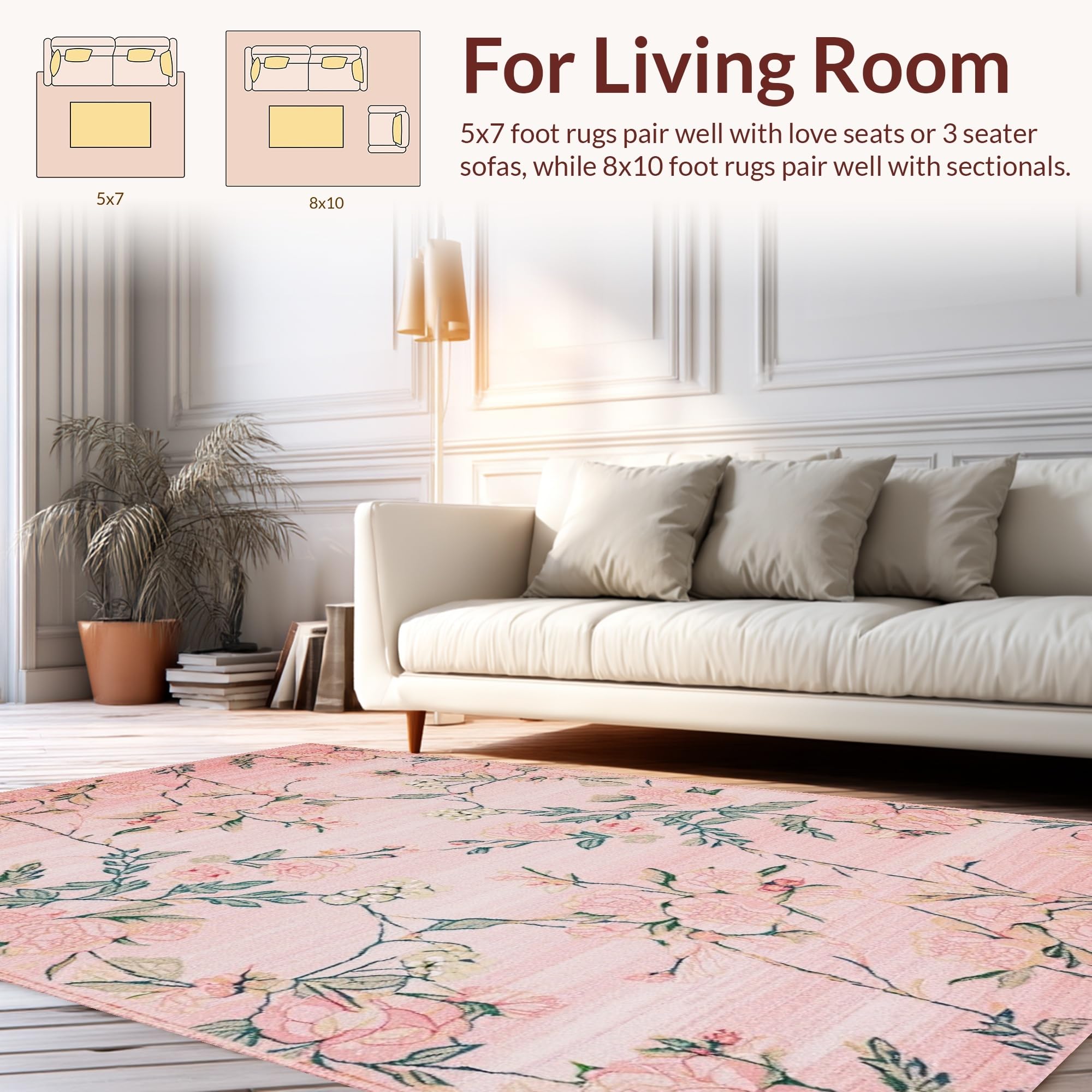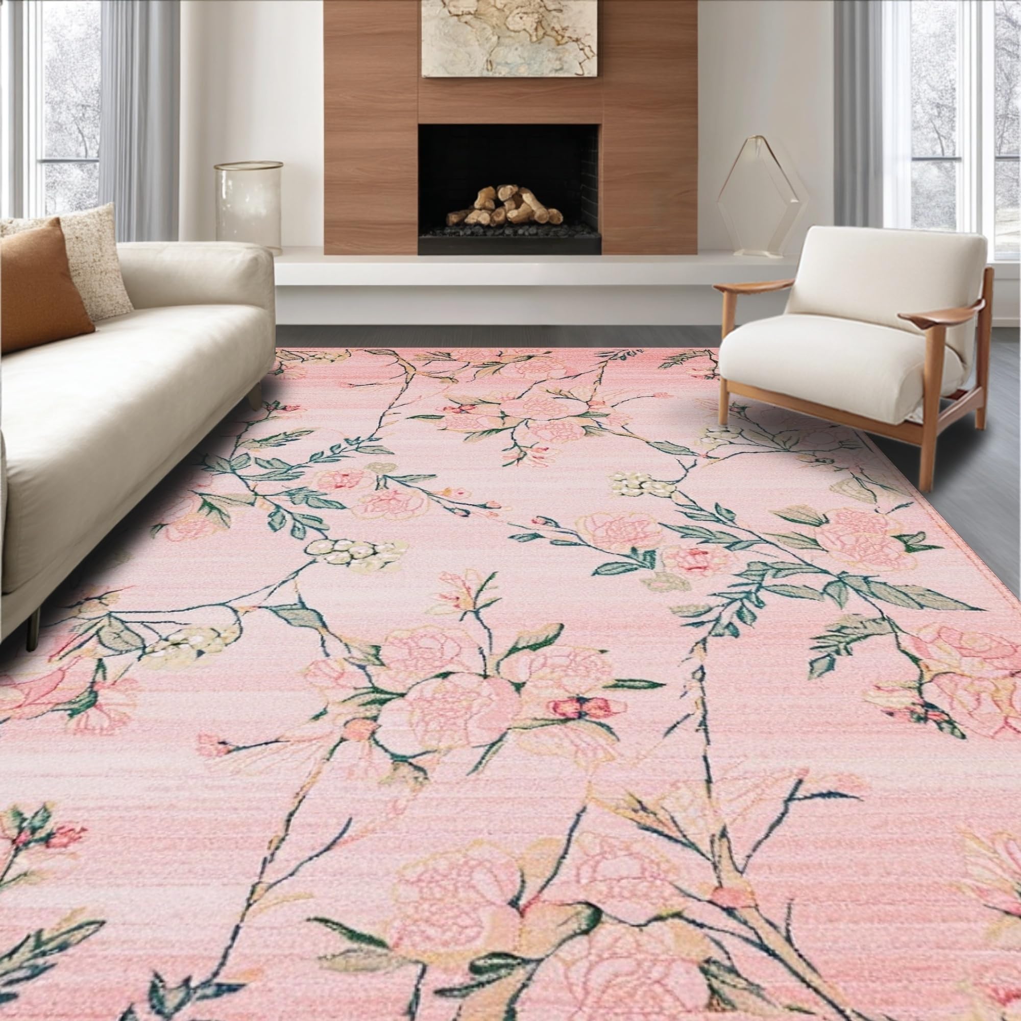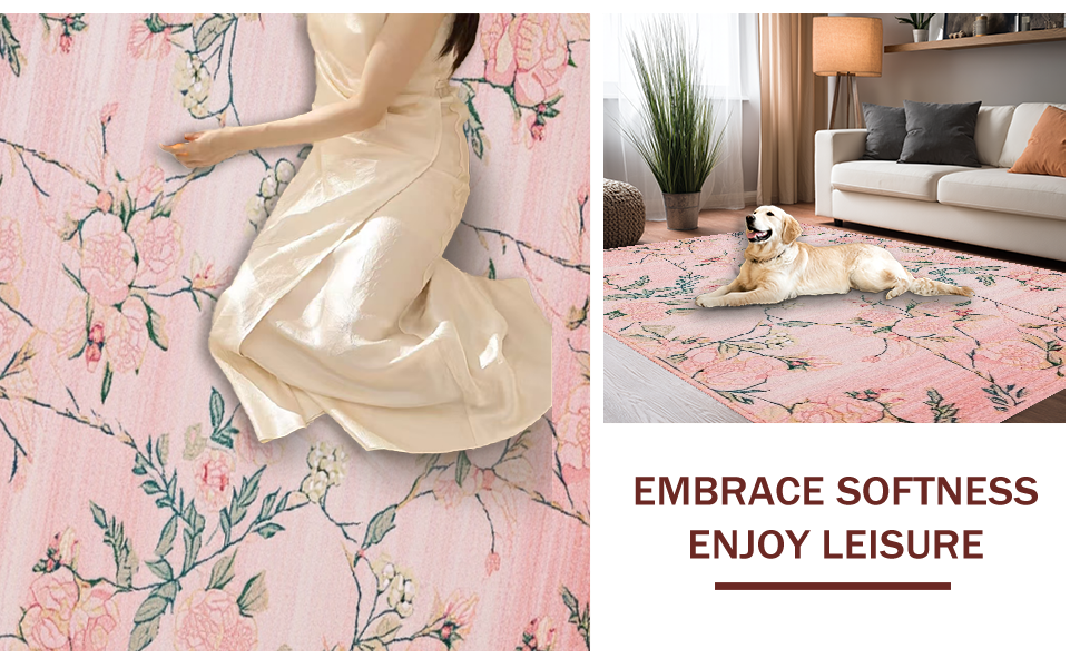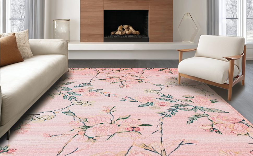 Ultra Soft Area Rug, Non Slip, Stain Resistant, Washable Area Rugs for Living Room, Bedroom, Modern Warm Toned Nature Print(Pink) Overview:
