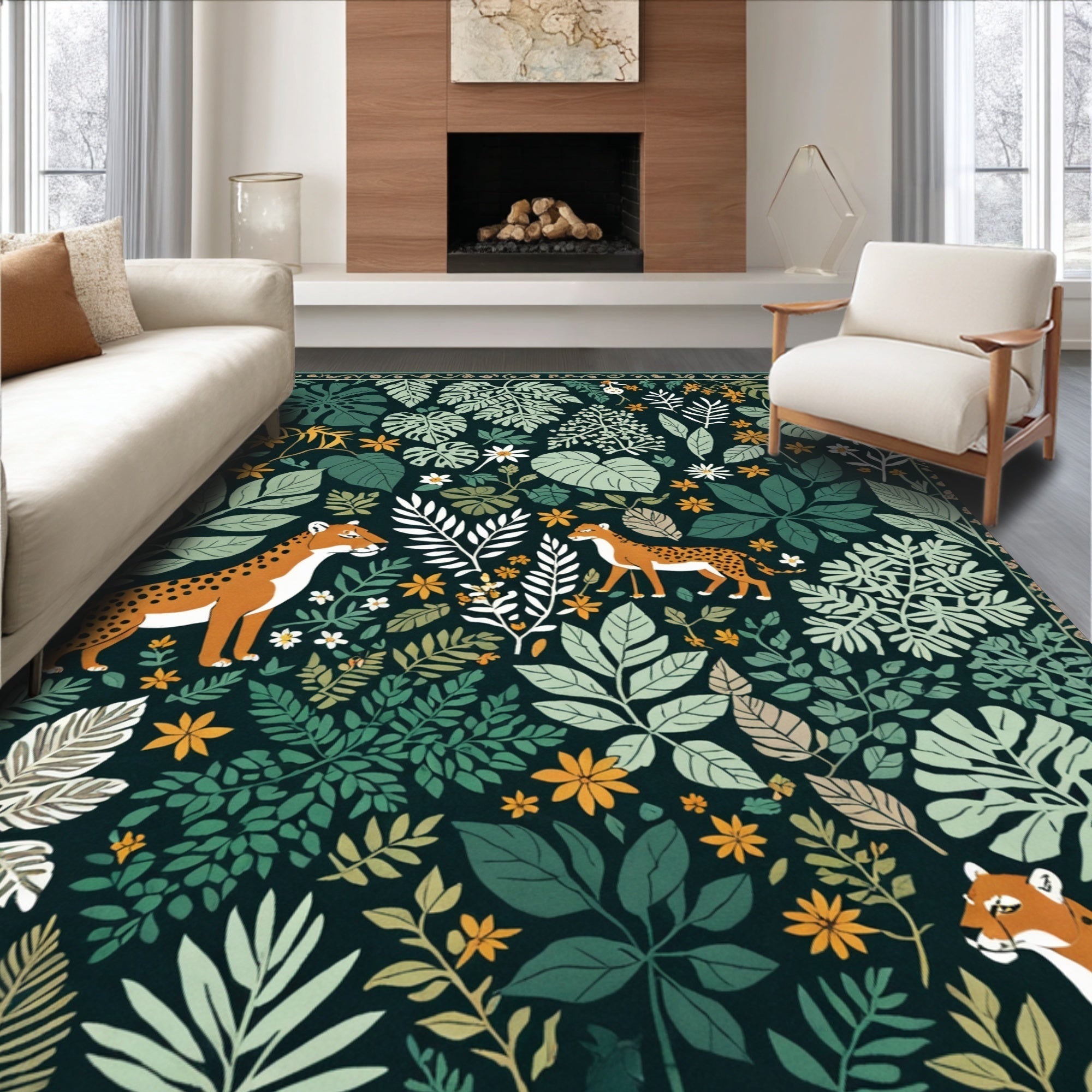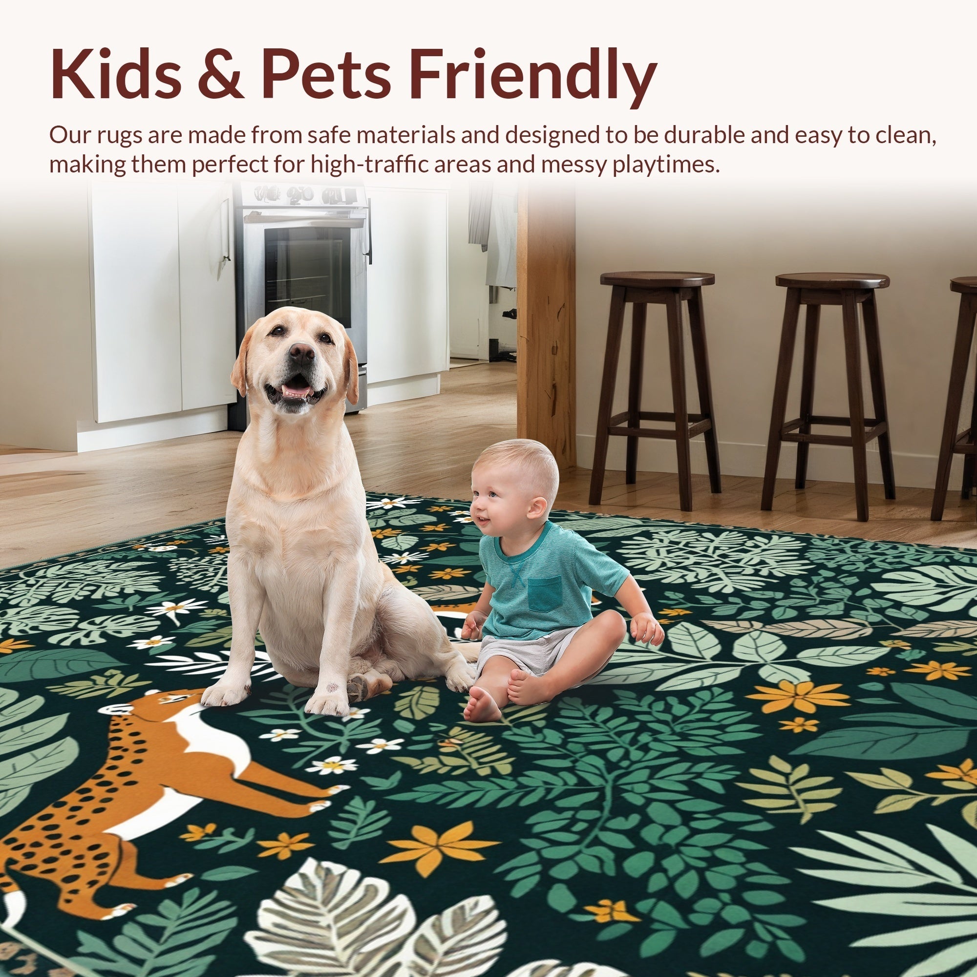 Ultra Soft Area Rug, Non Slip, Stain Resistant, Washable Area Rugs for Living Room, Bedroom, Modern Washable Botanical Playroom Area Rug(Green) Overview:
