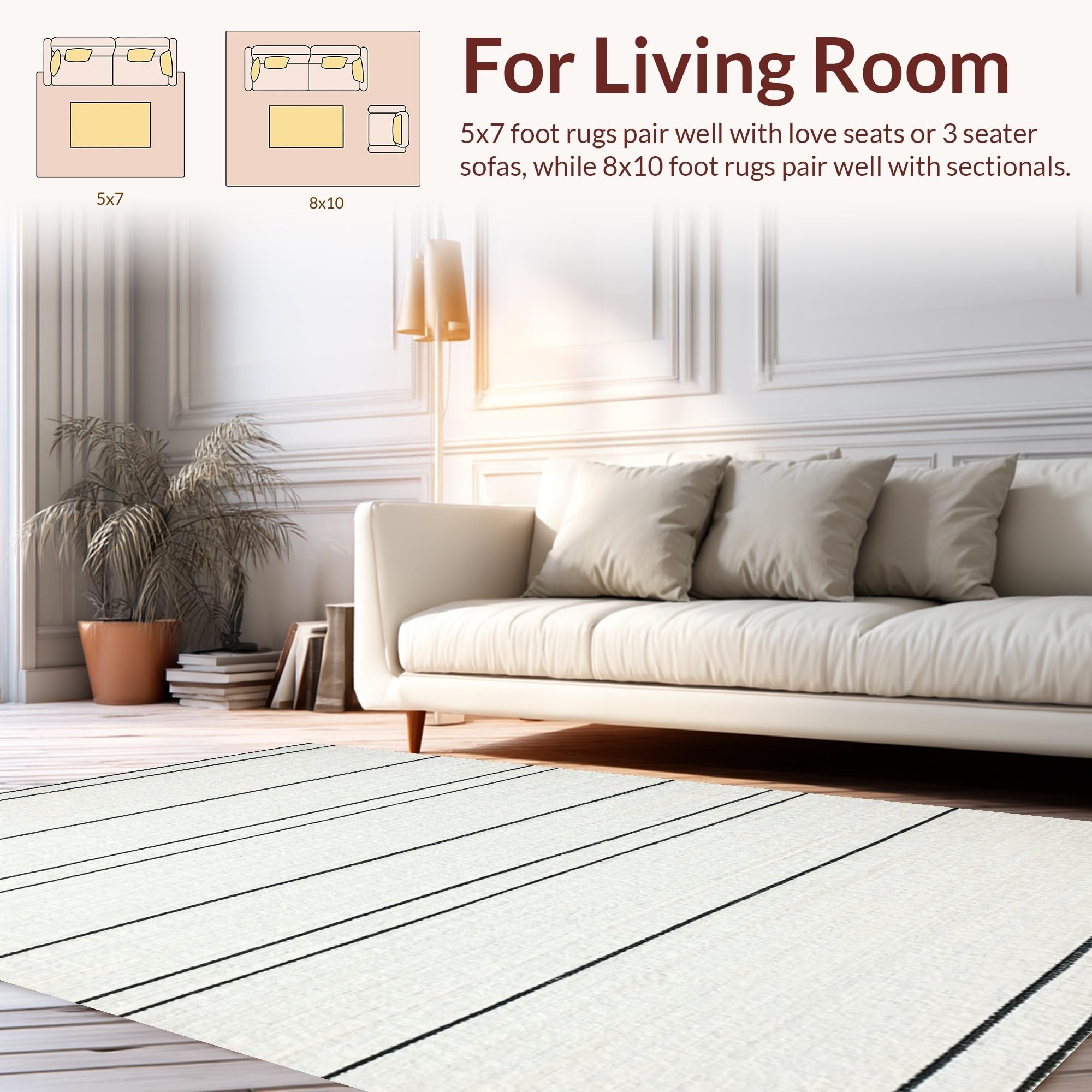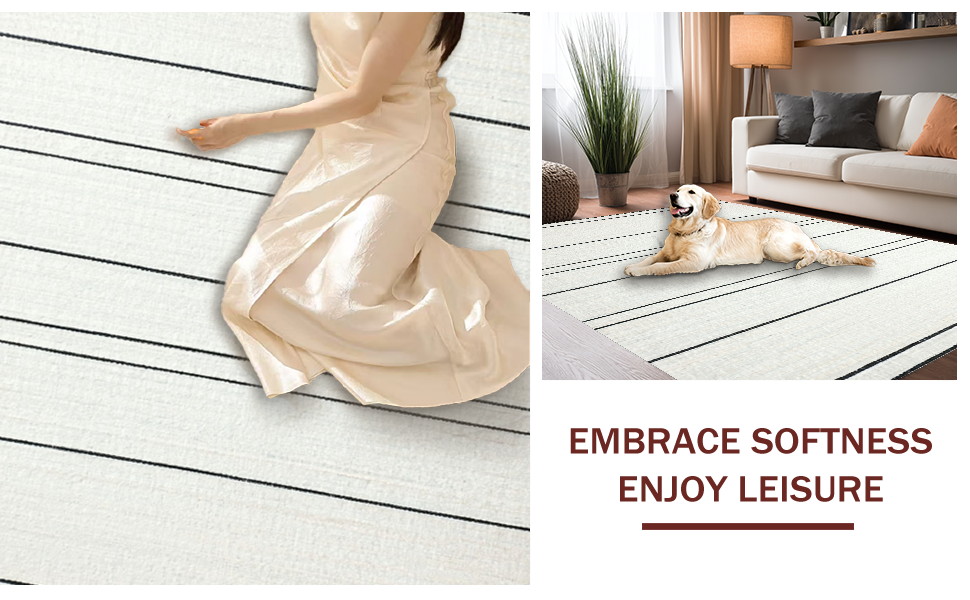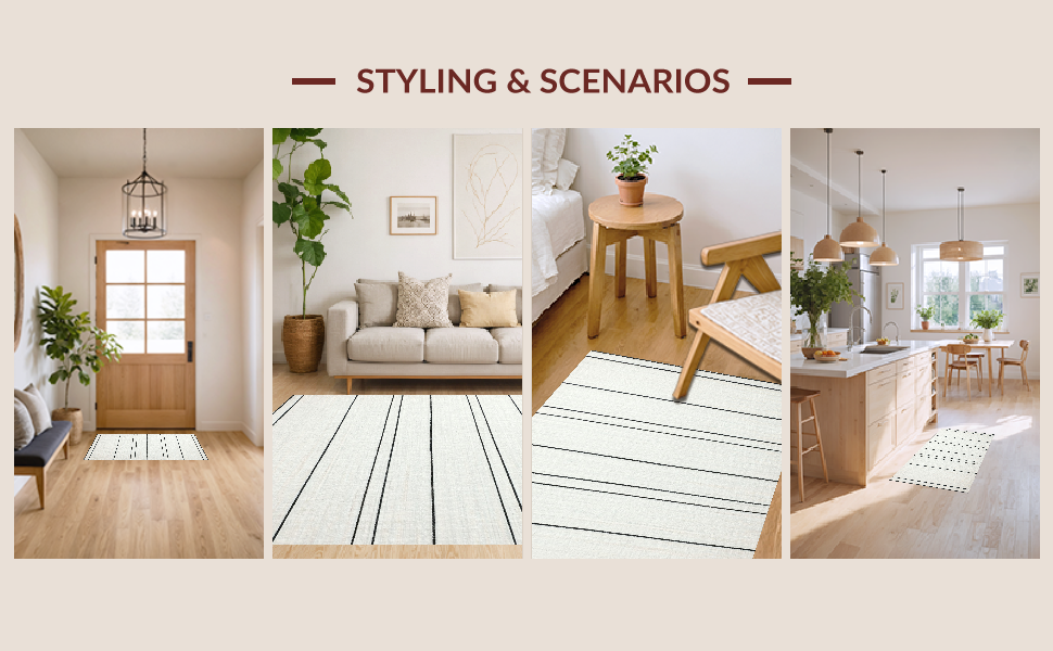 Ultra Soft Area Rug, Non Slip, Stain Resistant, Washable Area Rugs for Living Room, Bedroom, Modern Welcome Stripe Rug Minimalist Layered Entry Accent Mat Decor(Beige) Overview: