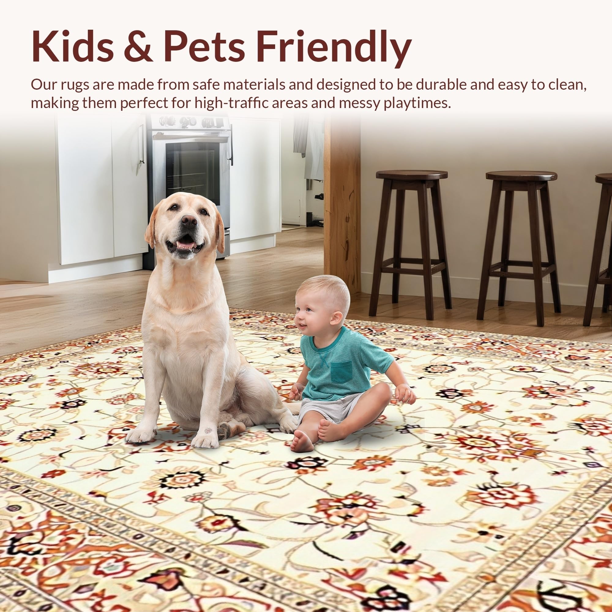 Ultra Soft Area Rug, Non Slip, Stain Resistant, Washable Area Rugs for Living Room, Bedroom, Modern Whimsical Nature Motifs(Beige) Overview: