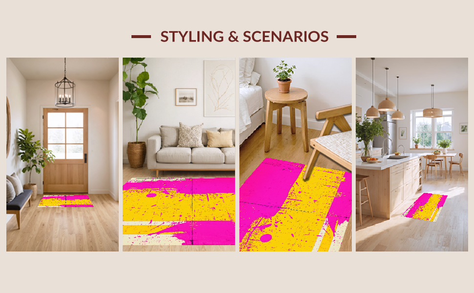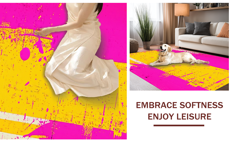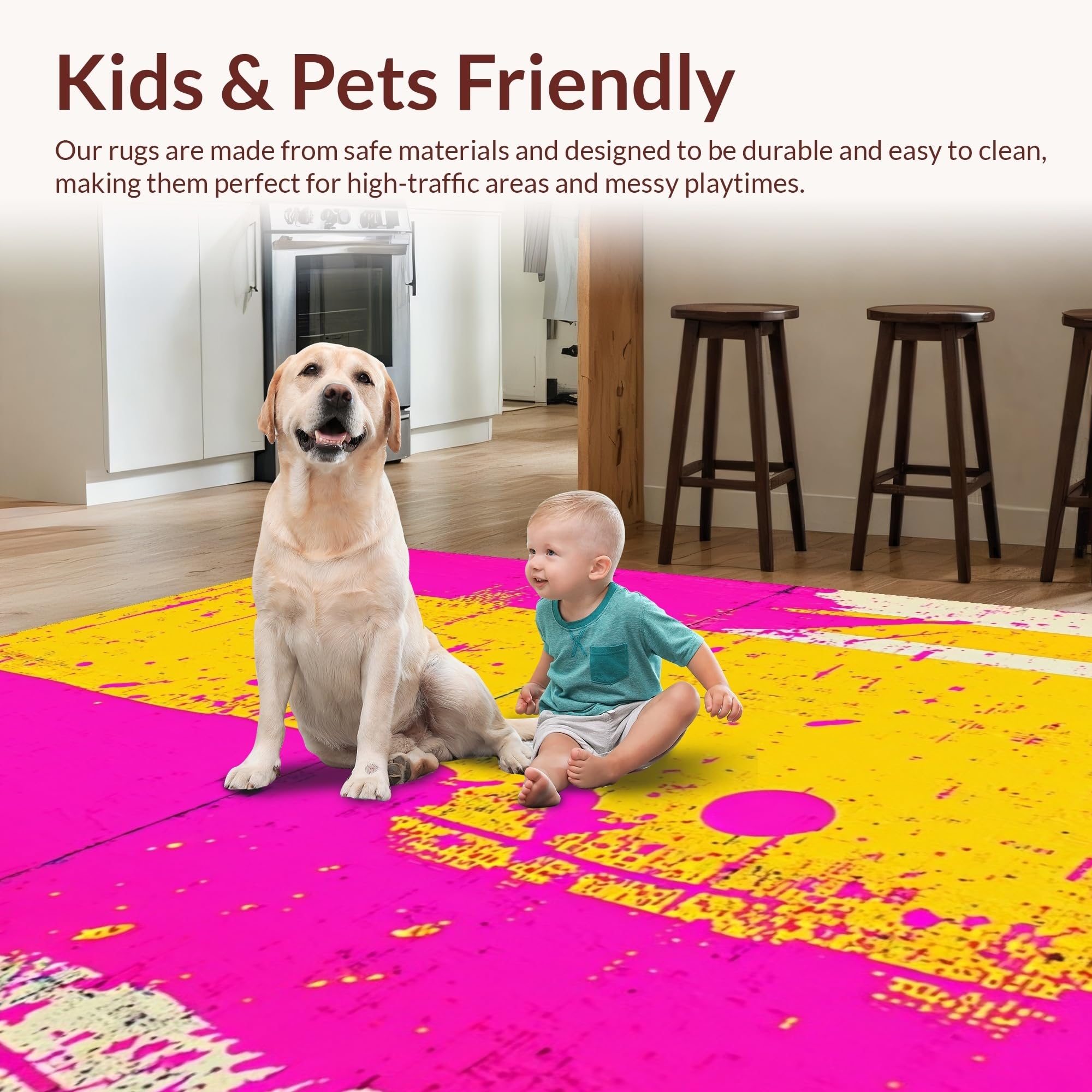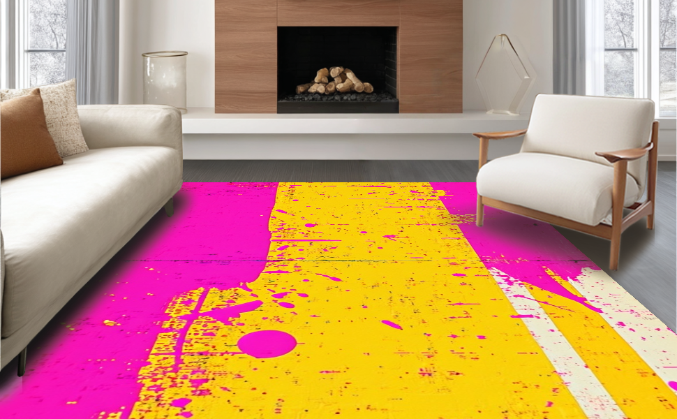 Ultra Soft Area Rug, Non Slip, Stain Resistant, Washable Area Rugs for Living Room, Bedroom, Modern Whimsical Patterned Statement(Pink) Overview: