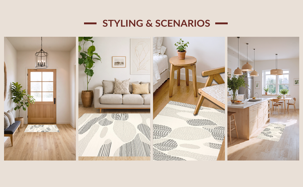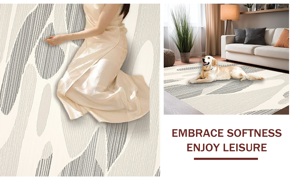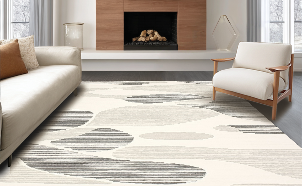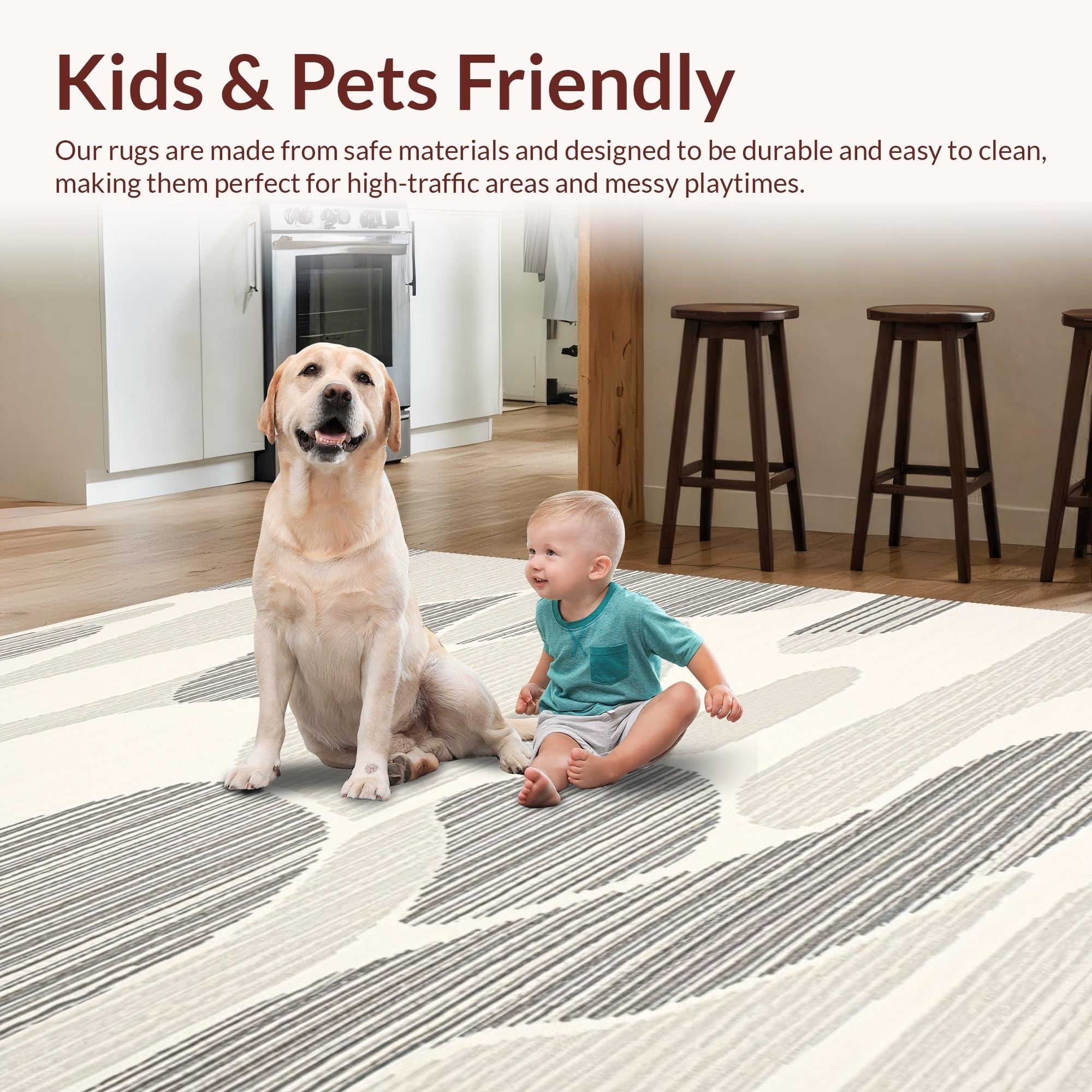 Ultra Soft Area Rug, Non Slip, Stain Resistant, Washable Area Rugs for Living Room, Bedroom, Modern Whimsical Wave Motif(Beige) Overview: