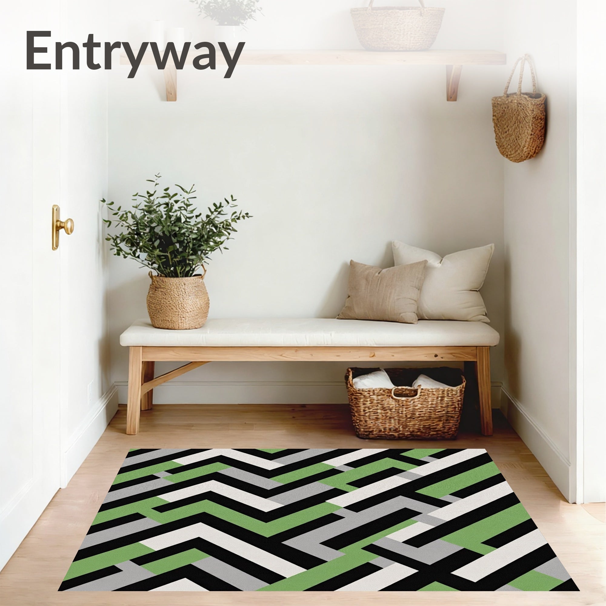 Ultra Soft Area Rug, Non Slip, Stain Resistant, Washable Area Rugs for Living Room, Bedroom, Modern Zigzag Chevron Herringbone Stylized Tessellation(Black) Overview: