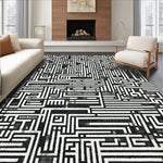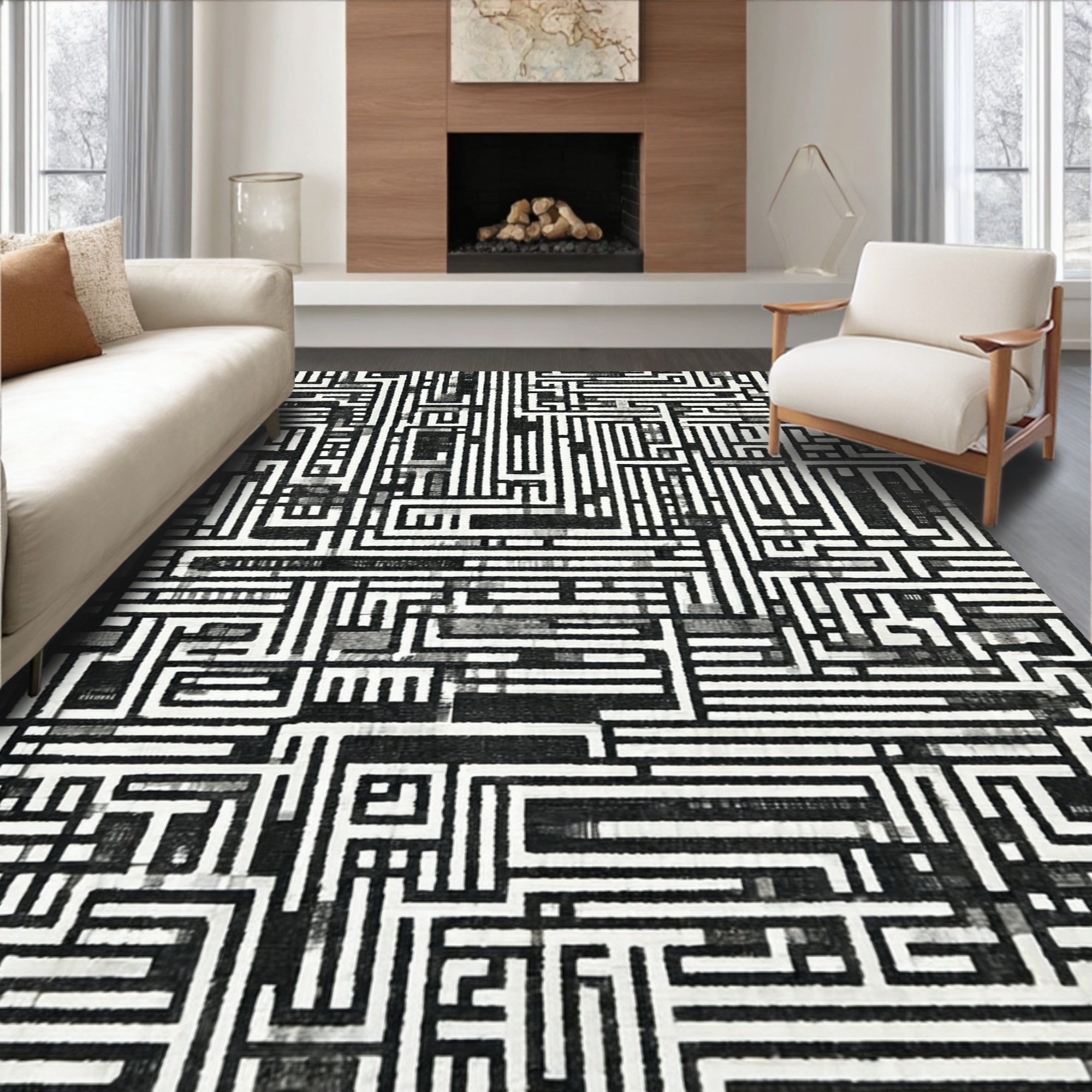 Ultra Soft Area Rug, Non Slip, Stain Resistant, Washable Area Rugs for Living Room, Bedroom, Monochromatic Maze: Modern Black And White Striped Rug(Black) Overview: