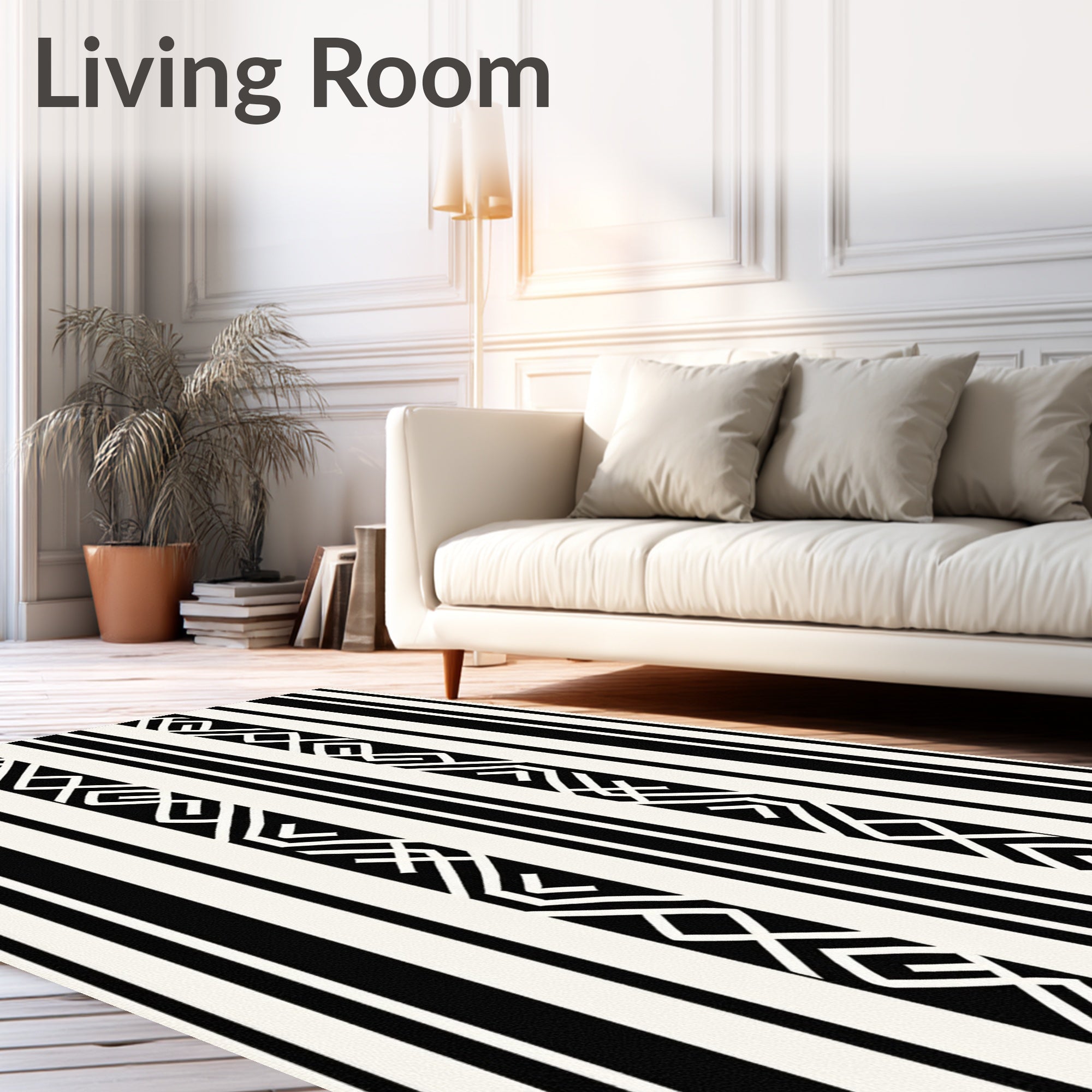 Ultra Soft Area Rug, Non Slip, Stain Resistant, Washable Area Rugs for Living Room, Bedroom, Monochrome Lattice Farmhouse Entrance Decoration(Black) Overview: