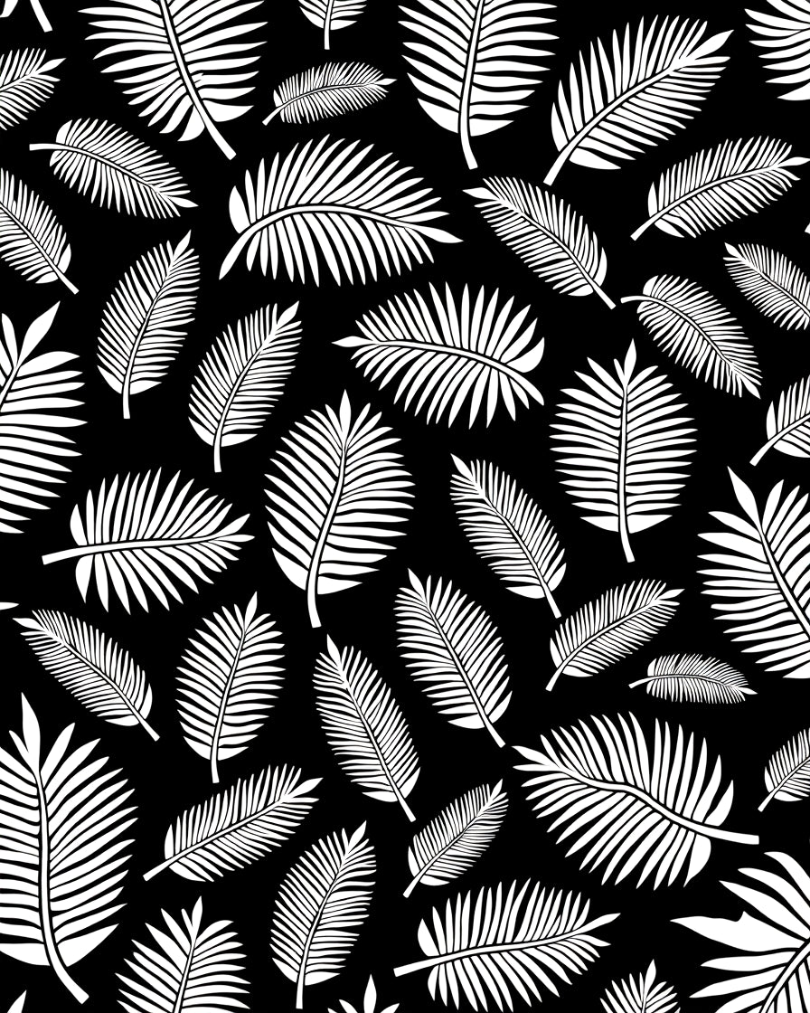 Monochrome Tropical Palm Frond Abstract Art(Black)