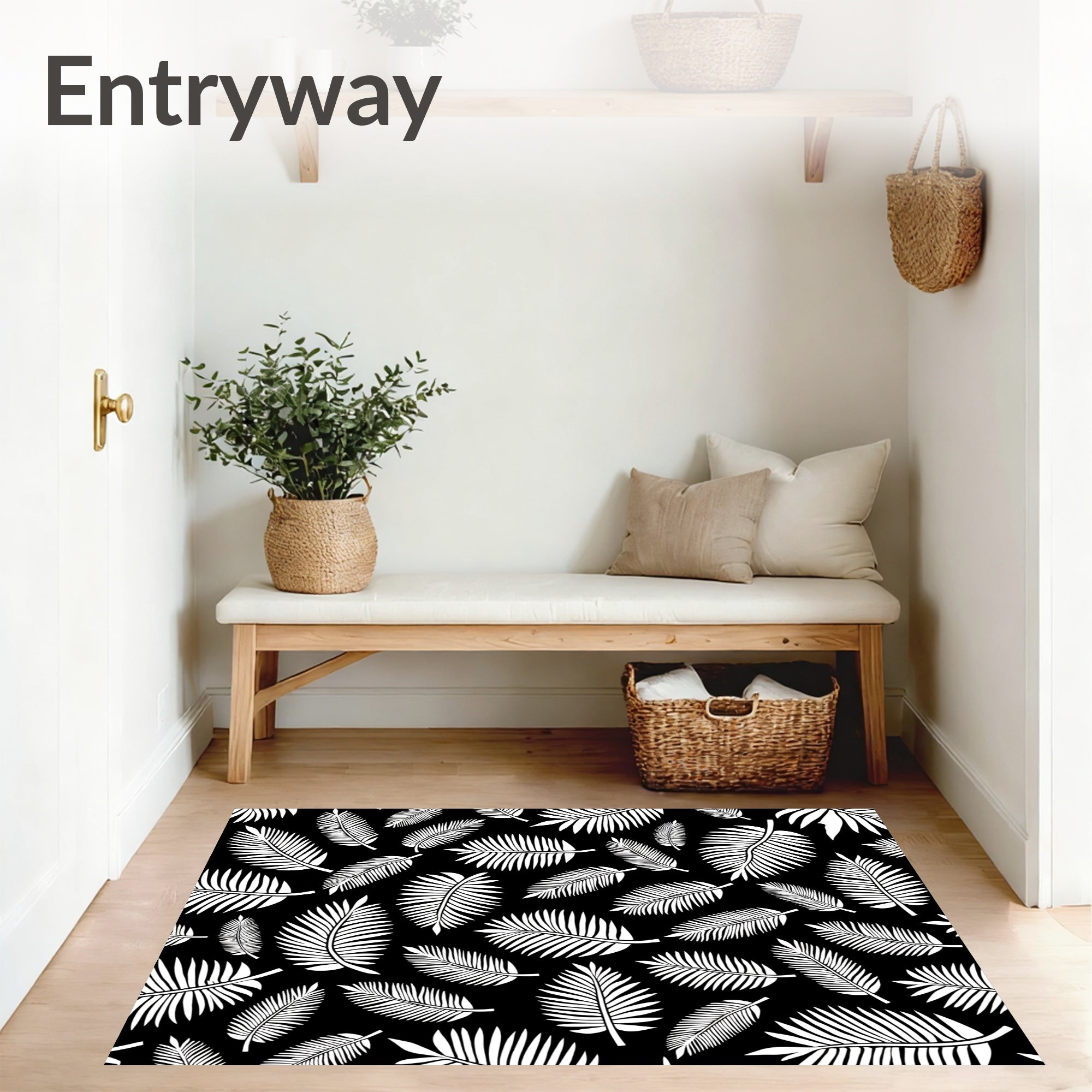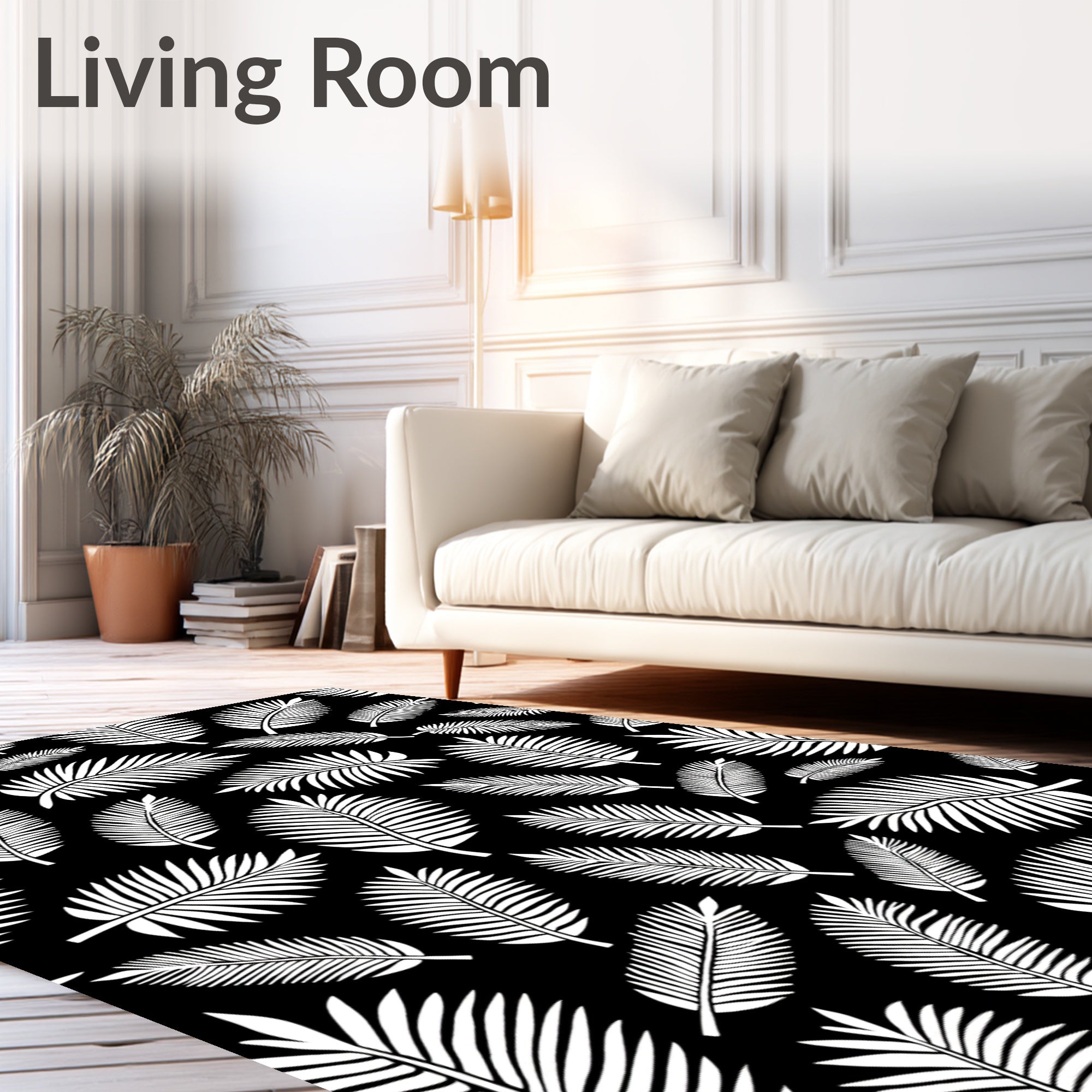 Flatwoven High Traffic Area Rug, Monochrome Tropical Palm Frond Abstract Art, Non Slip, Stain Resistant, Washable Area Rugs for Living Room, Bedroom (Black) Overview: