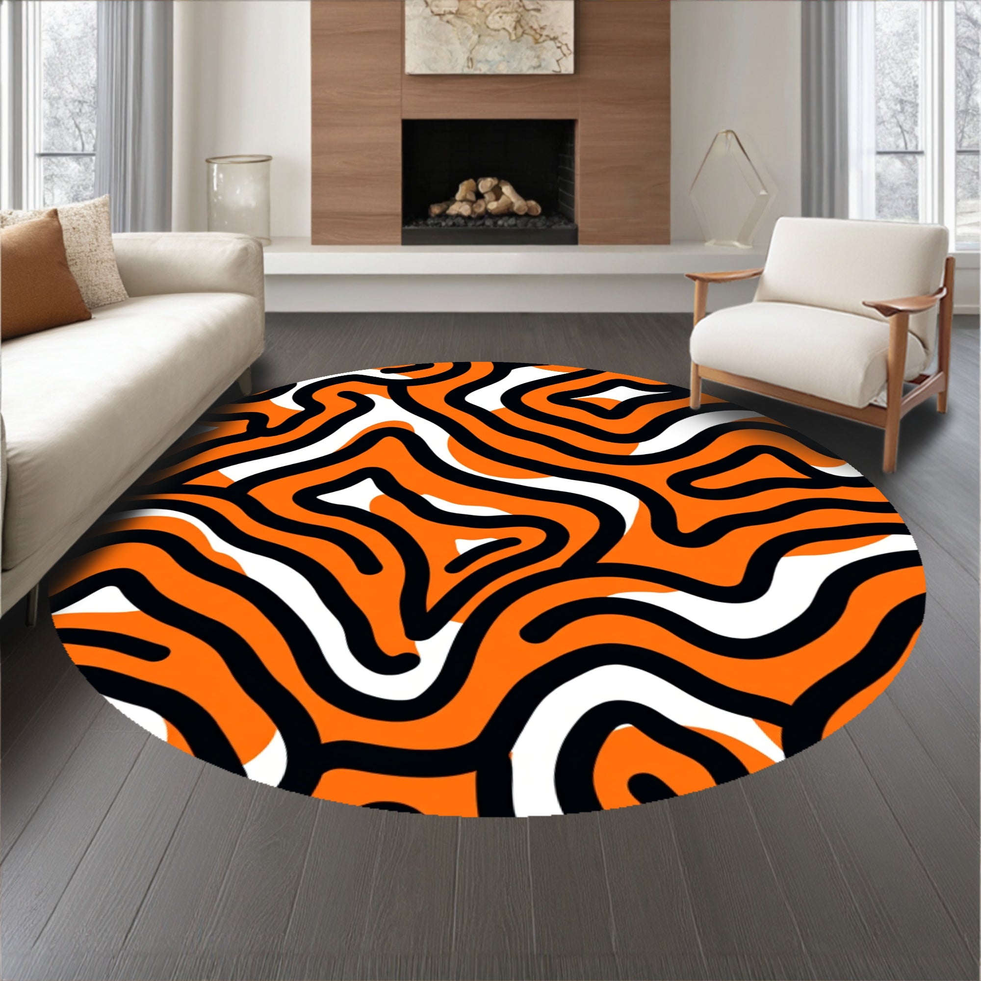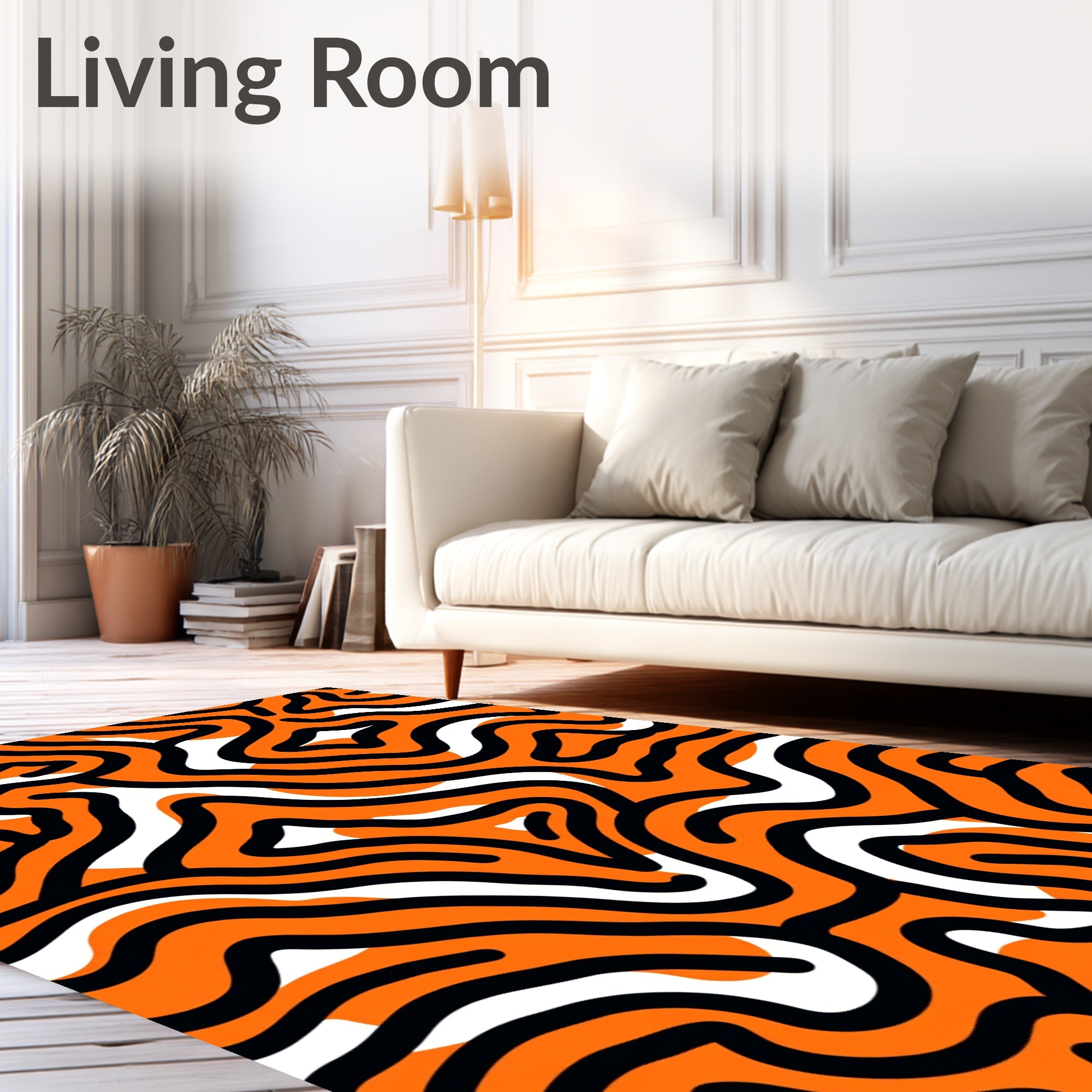 Ultra Soft Area Rug, Non Slip, Stain Resistant, Washable Area Rugs for Living Room, Bedroom, Monochrome Wave Interlocking Stripe Contemporary Artistic Motif(Orange) Overview: