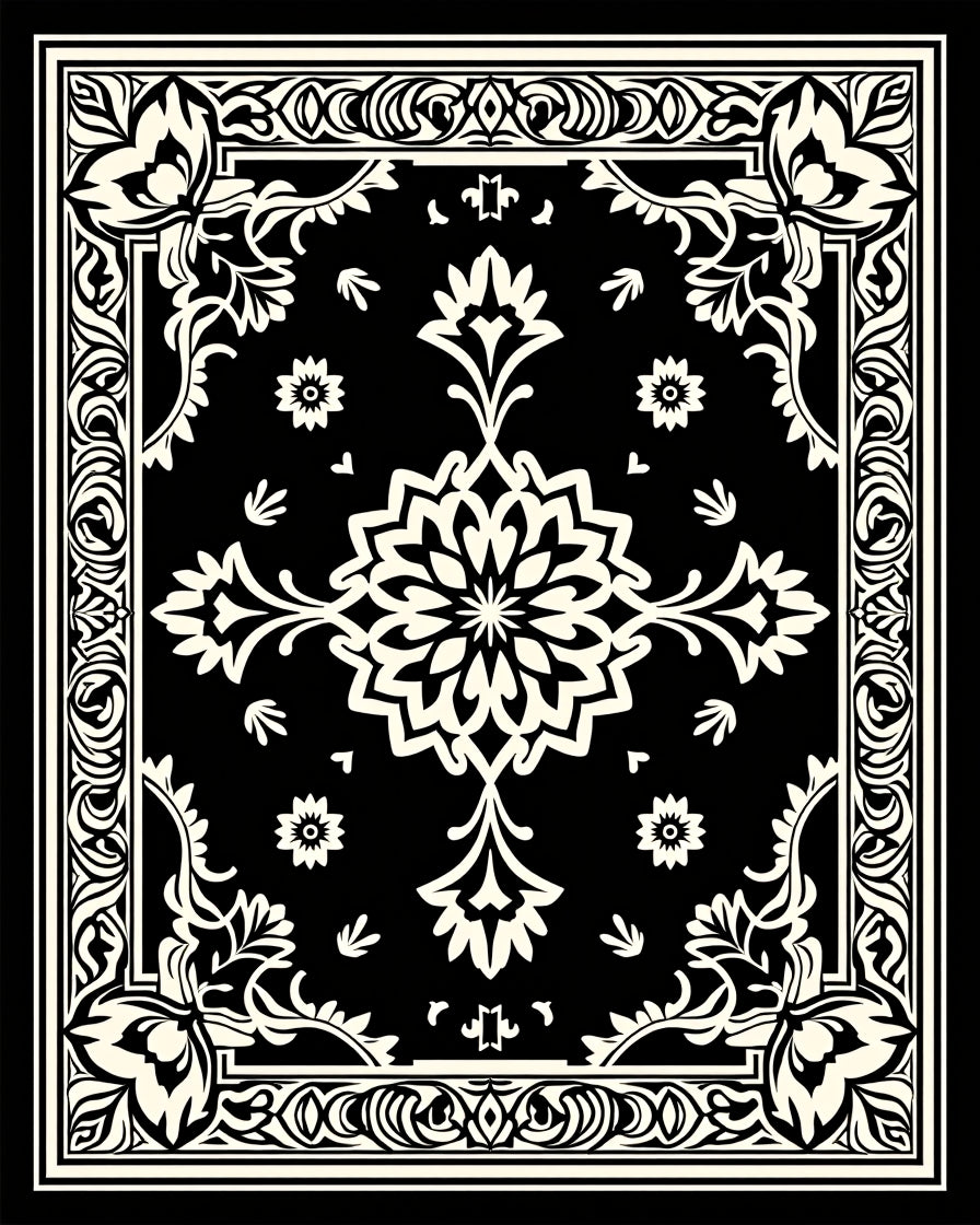 Monty Elegant Floral Medallion Vintage Distressed Accent(Black)