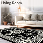 Flatwoven High Traffic Area Rug, Monty Elegant Floral Medallion Vintage Distressed Accent, Non Slip, Stain Resistant, Washable Area Rugs for Living Room, Bedroom (Black) Overview: