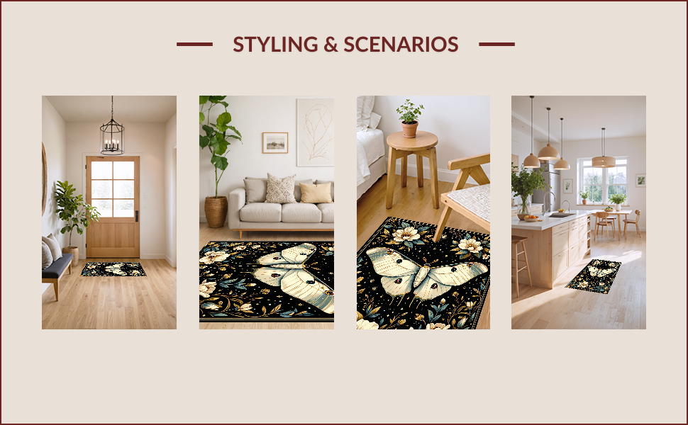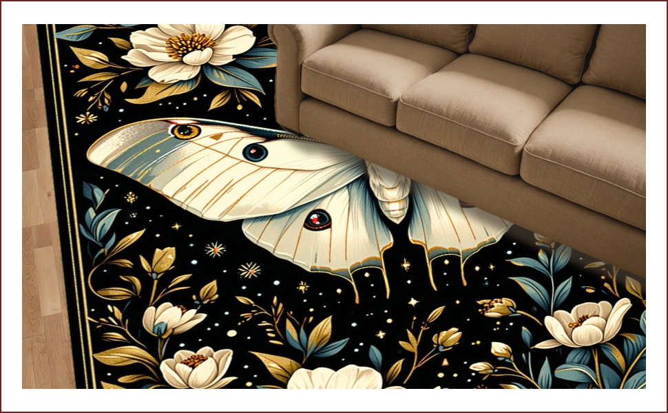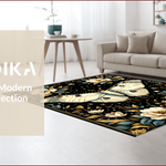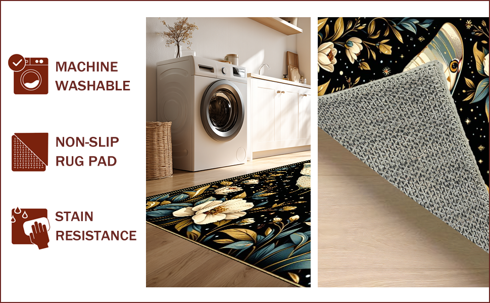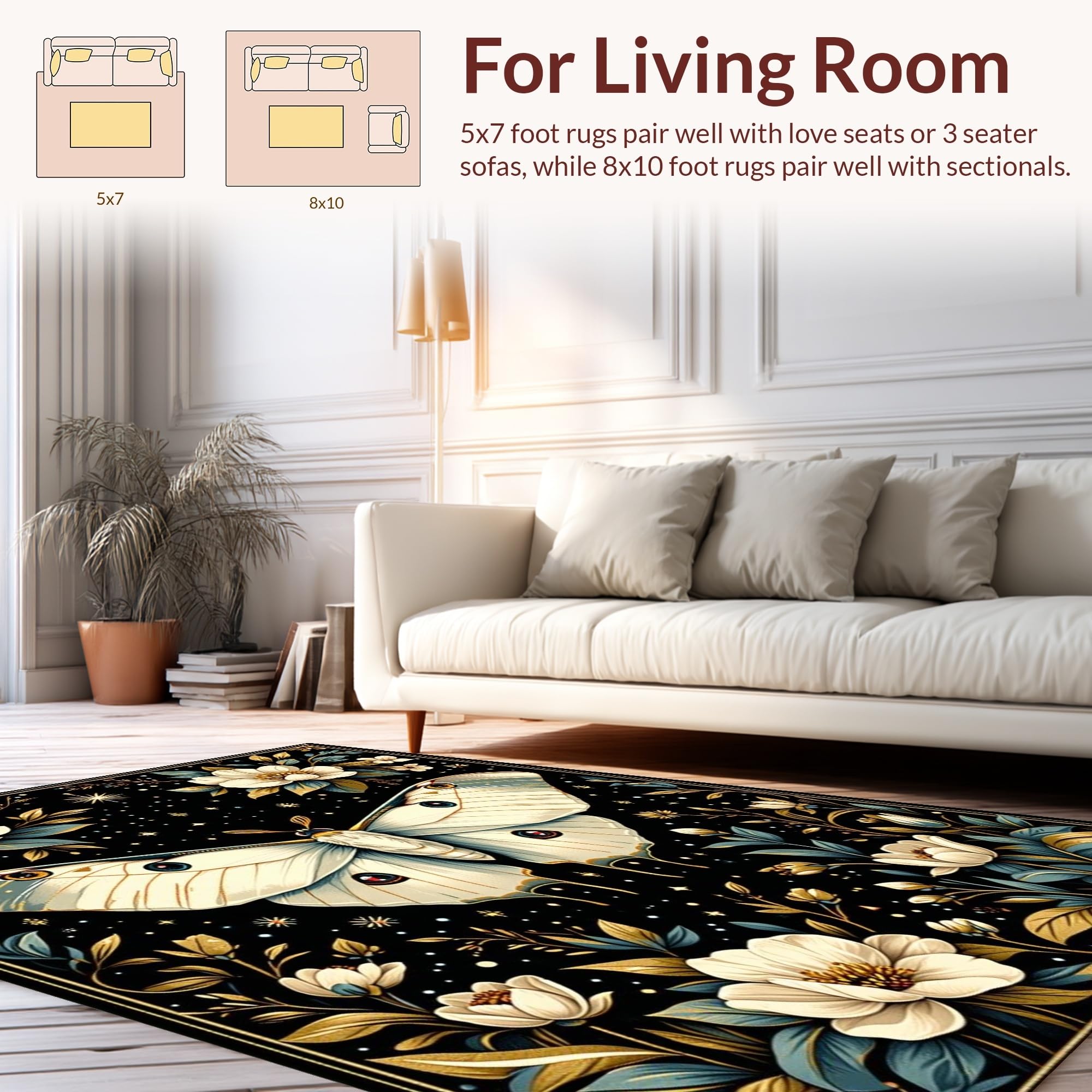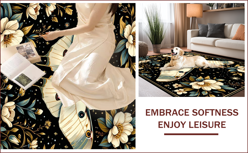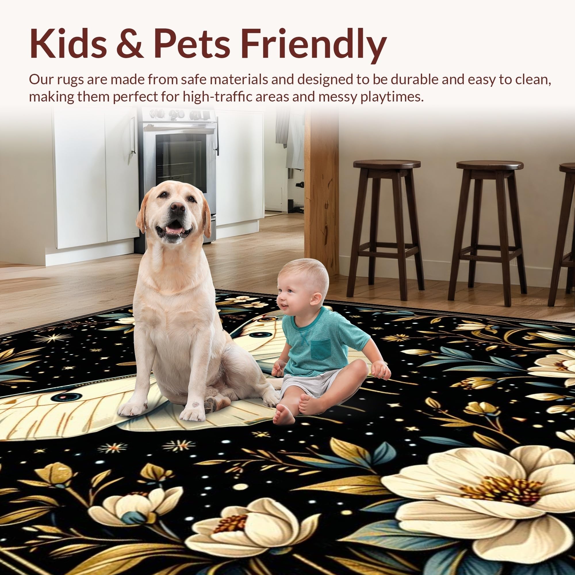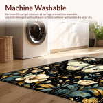 Ultra Soft Area Rug, Non Slip, Stain Resistant, Washable Area Rugs for Living Room, Bedroom, Moody Black Retro Botanical Charm(Black) Overview: