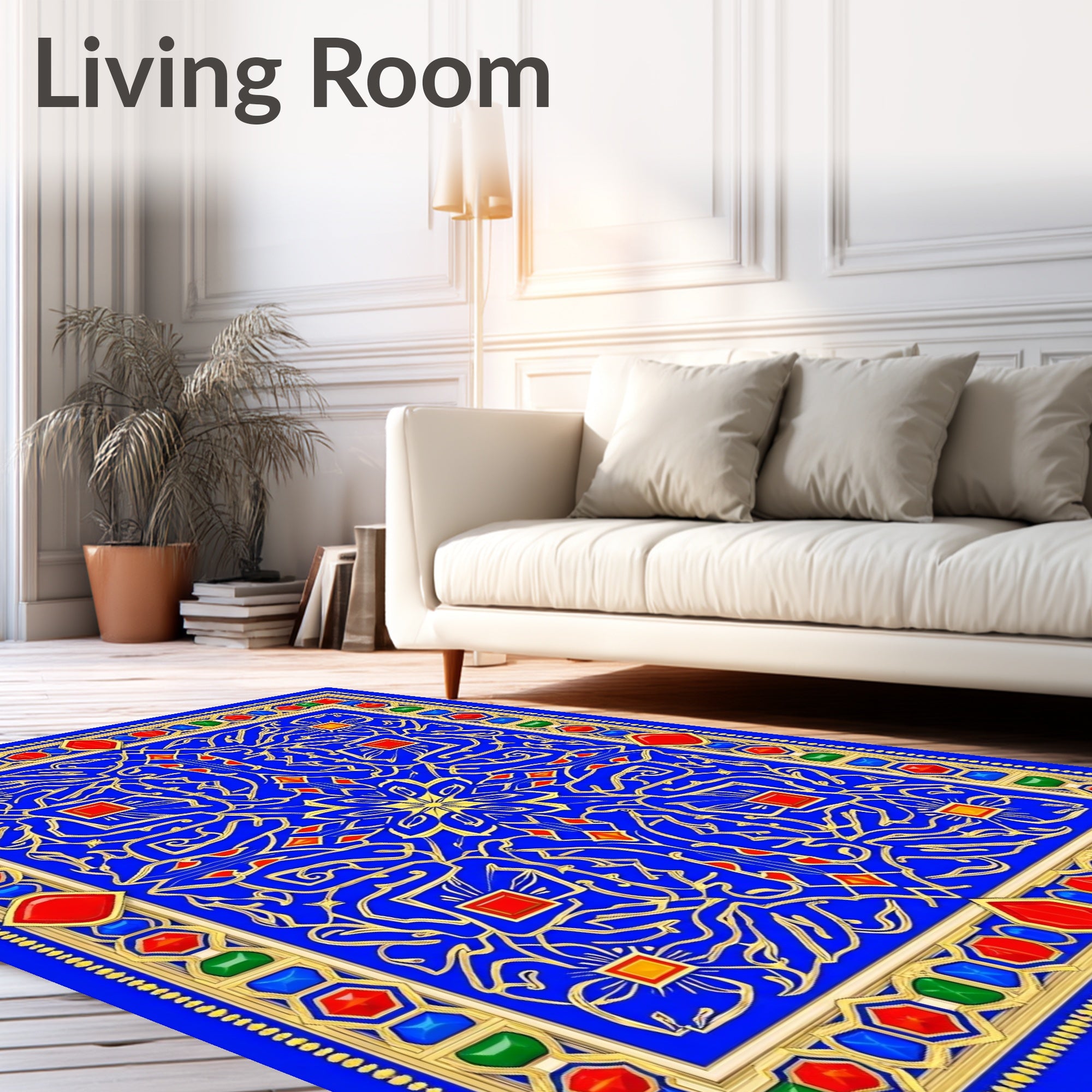 Ultra Soft Area Rug, Non Slip, Stain Resistant, Washable Area Rugs for Living Room, Bedroom, Mosaic Jewel Tapestry Visual Symphony(Blue) Overview: