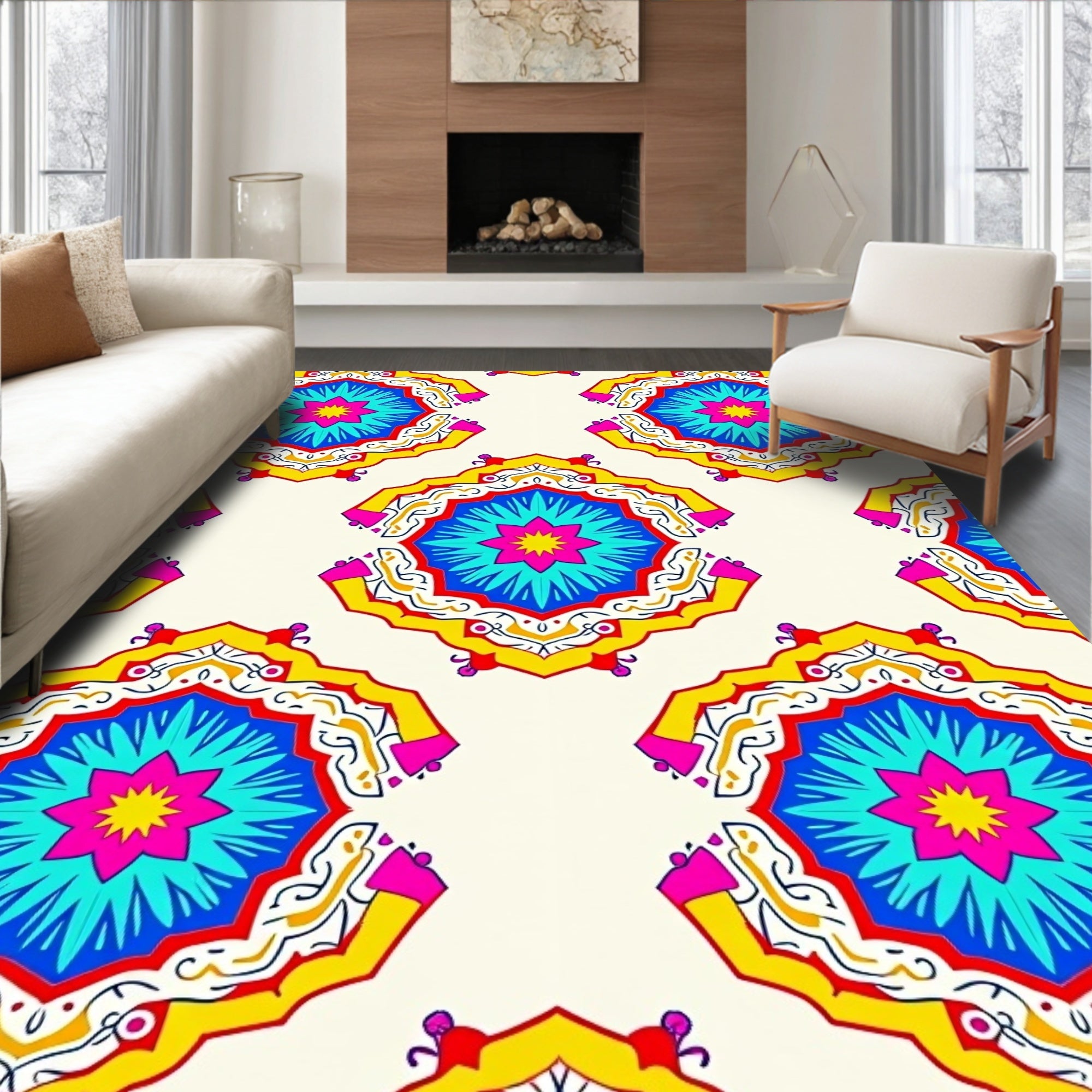 Ultra Soft Area Rug, Non Slip, Stain Resistant, Washable Area Rugs for Living Room, Bedroom, Mosaic Tile with Interlocking Hexagonal(Blue) Overview: