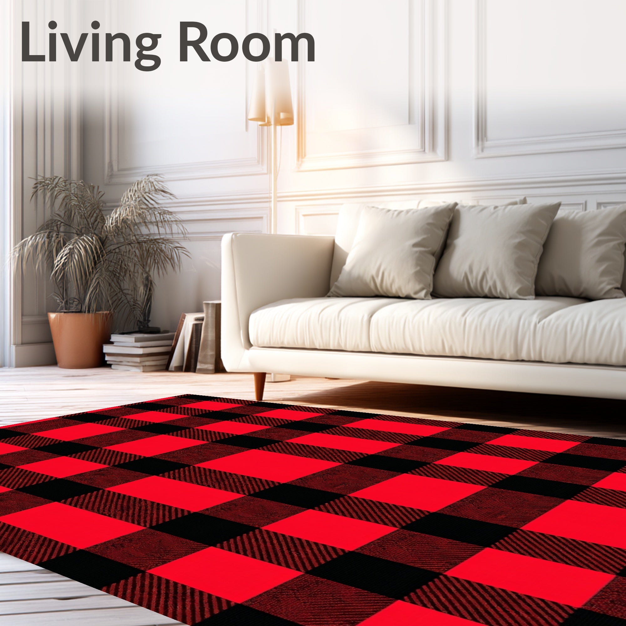 Ultra Soft Area Rug, Non Slip, Stain Resistant, Washable Area Rugs for Living Room, Bedroom, Mountain Flannel Patchwork Cabin Accessory(Red) Overview: