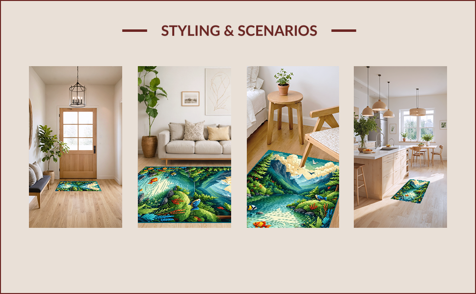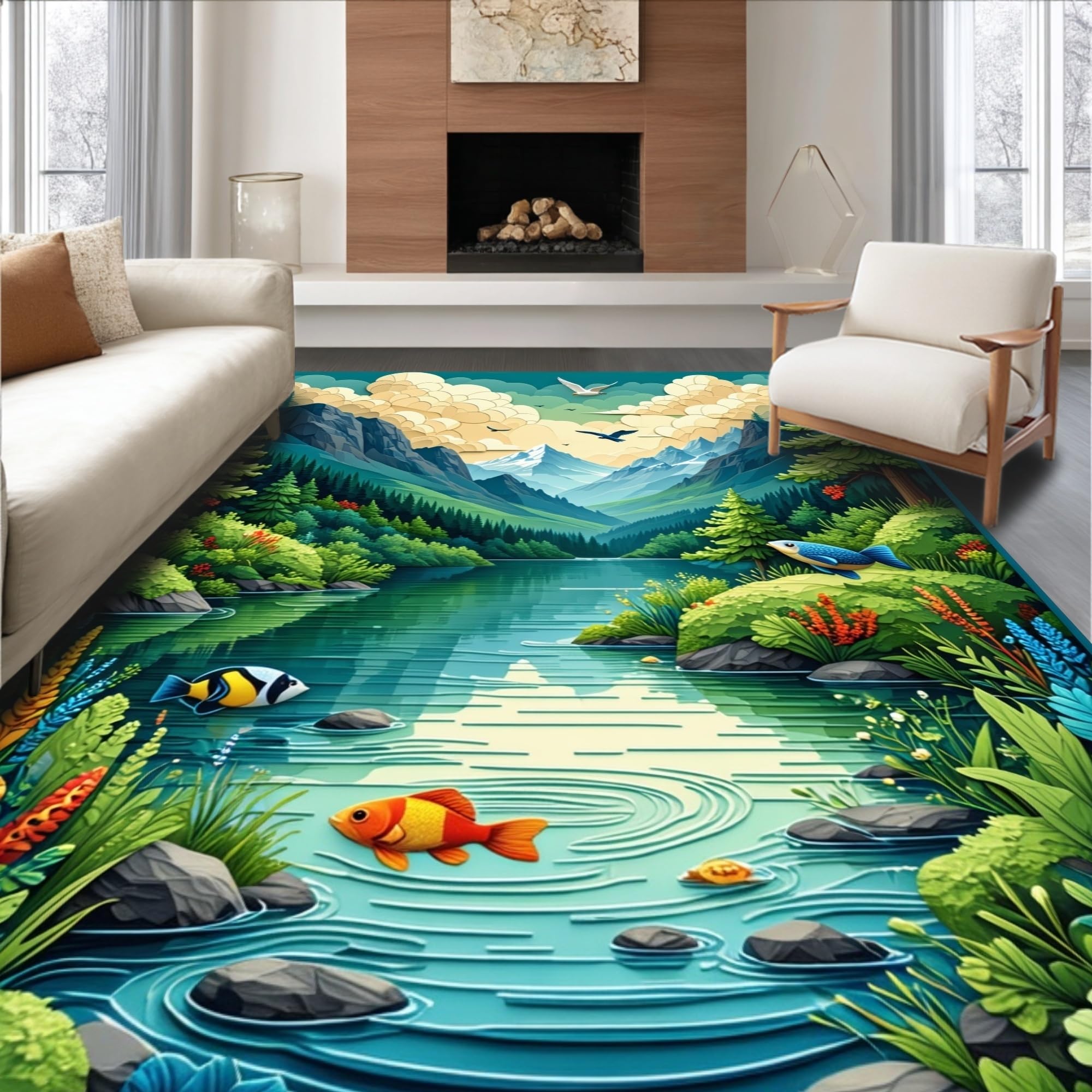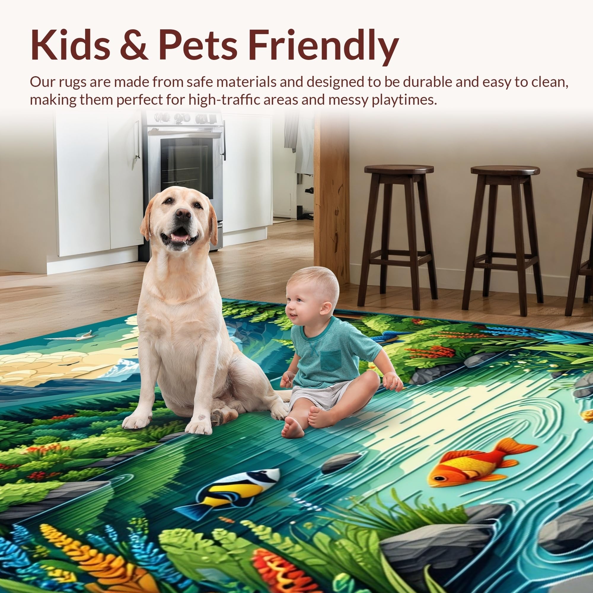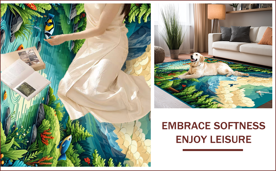 Ultra Soft Area Rug, Non Slip, Stain Resistant, Washable Area Rugs for Living Room, Bedroom, Multi-Color Outdoor Inspired Stain-Resistant Rug(Green) Overview: