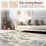 Ultra Soft Area Rug, Non Slip, Stain Resistant, Washable Area Rugs for Living Room, Bedroom, Muted Beige and Grey Area with Antique Distressed Floral Lattice Design(Ivory) Overview: