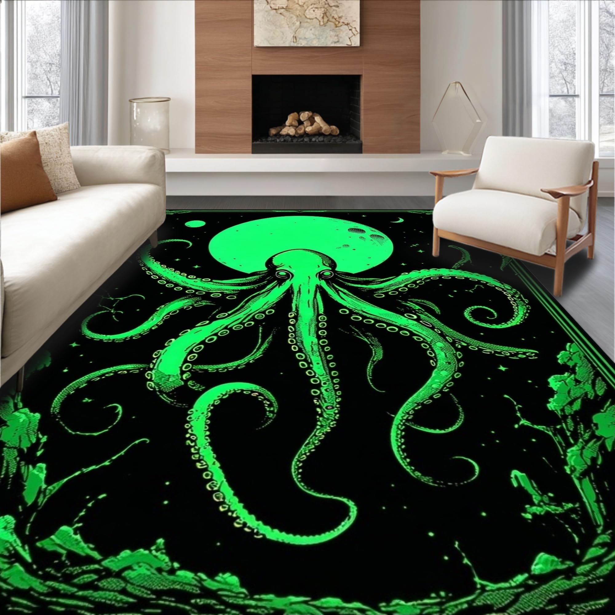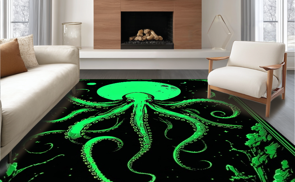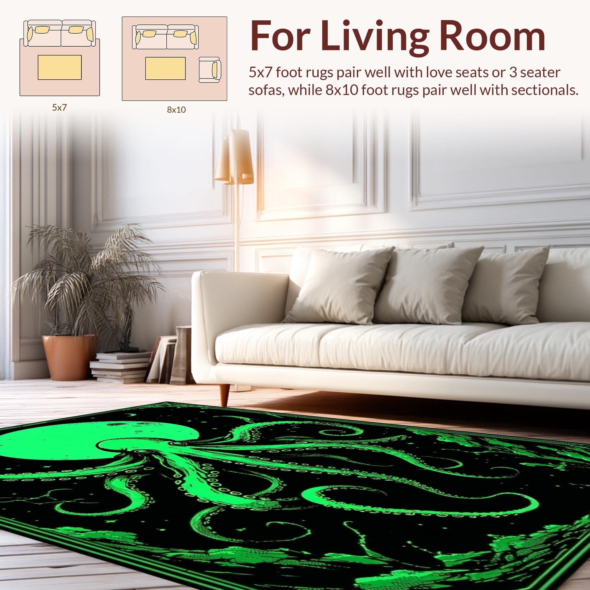 Ultra Soft Area Rug, Non Slip, Stain Resistant, Washable Area Rugs for Living Room, Bedroom, Mysterious Coastal Creature Pattern(Green) Overview: