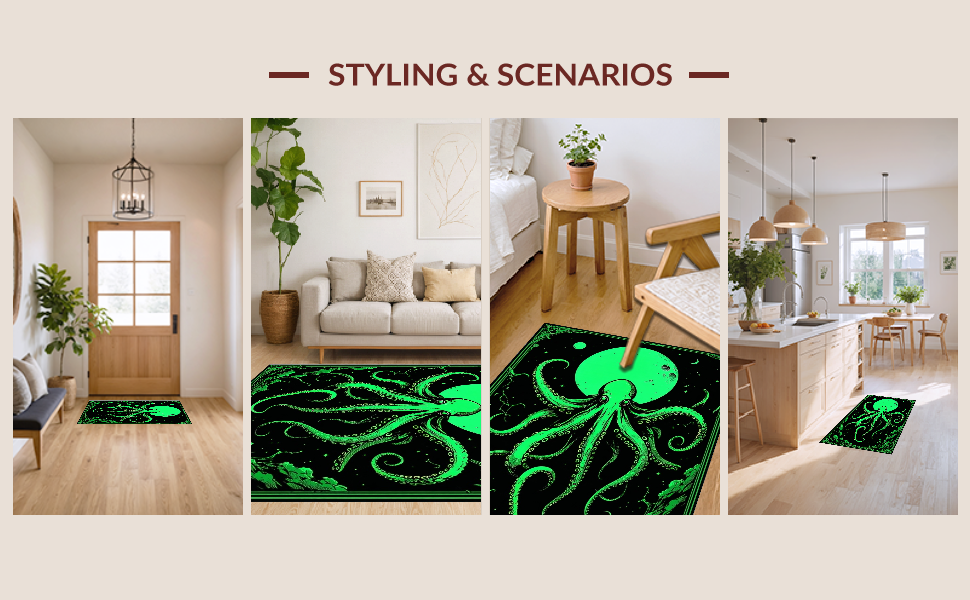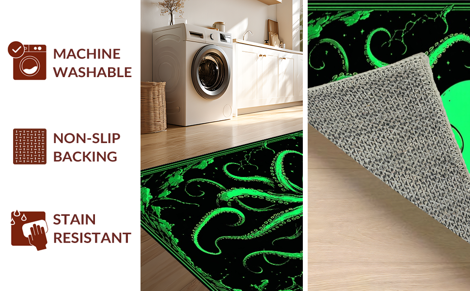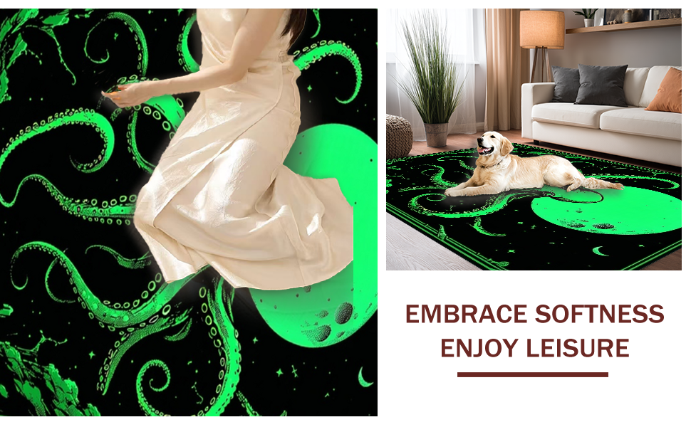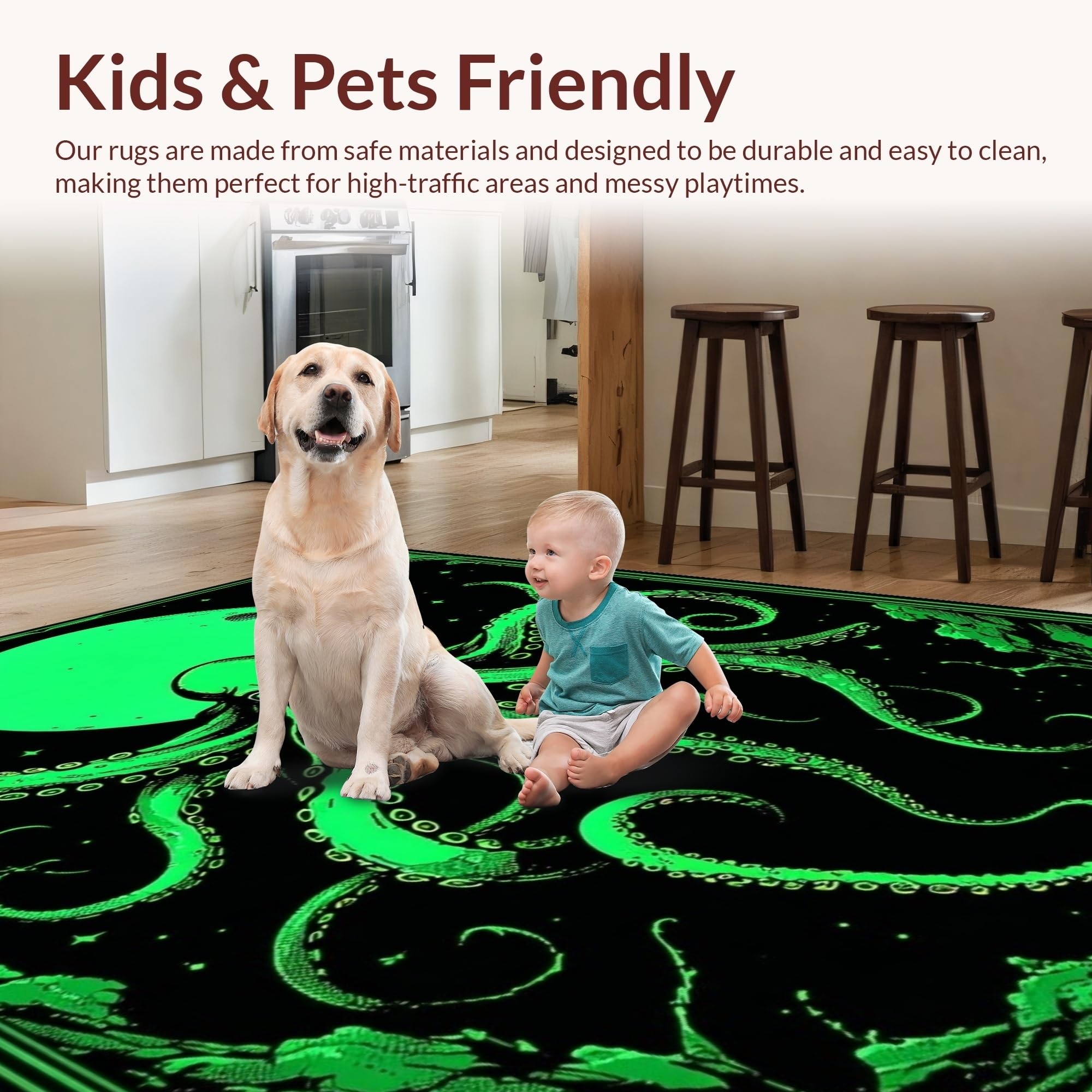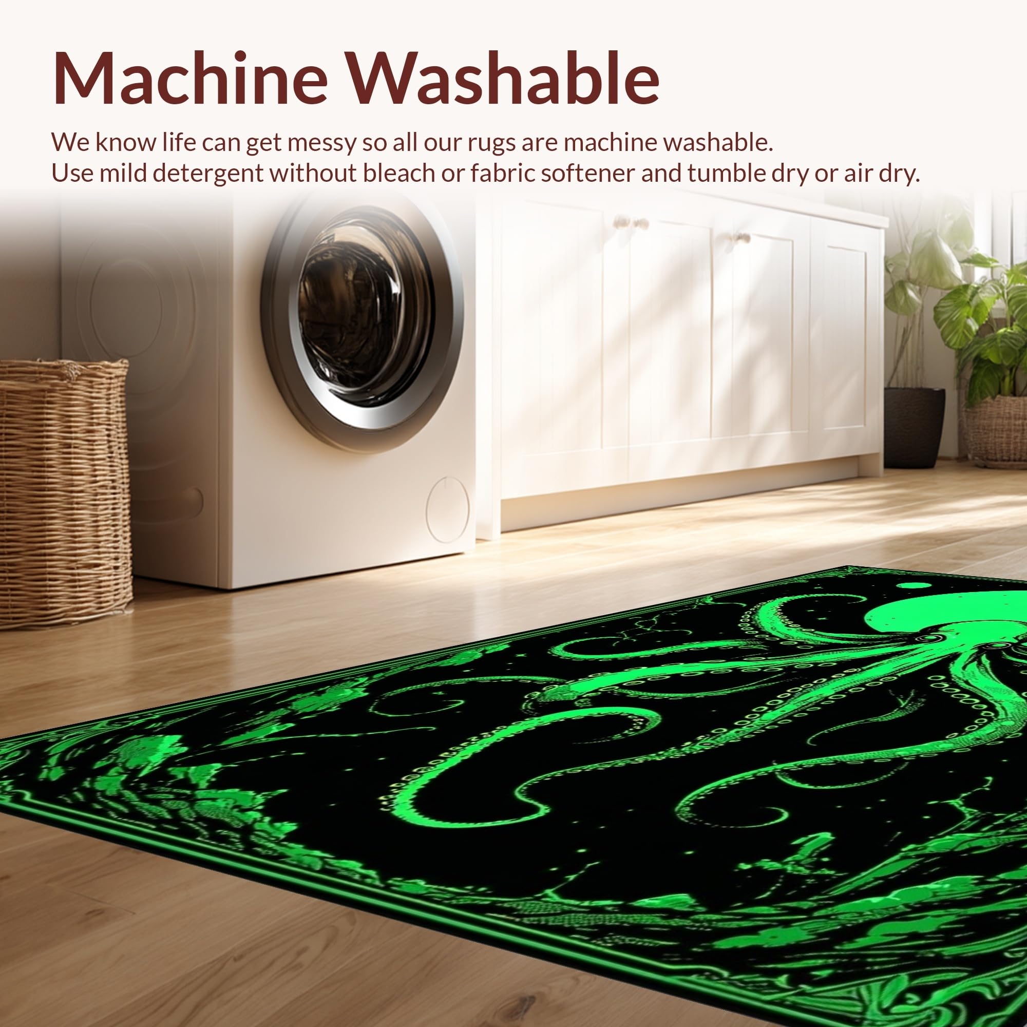 Ultra Soft Area Rug, Non Slip, Stain Resistant, Washable Area Rugs for Living Room, Bedroom, Mysterious Coastal Creature Pattern(Green) Overview: