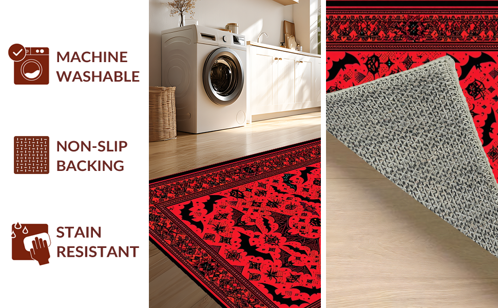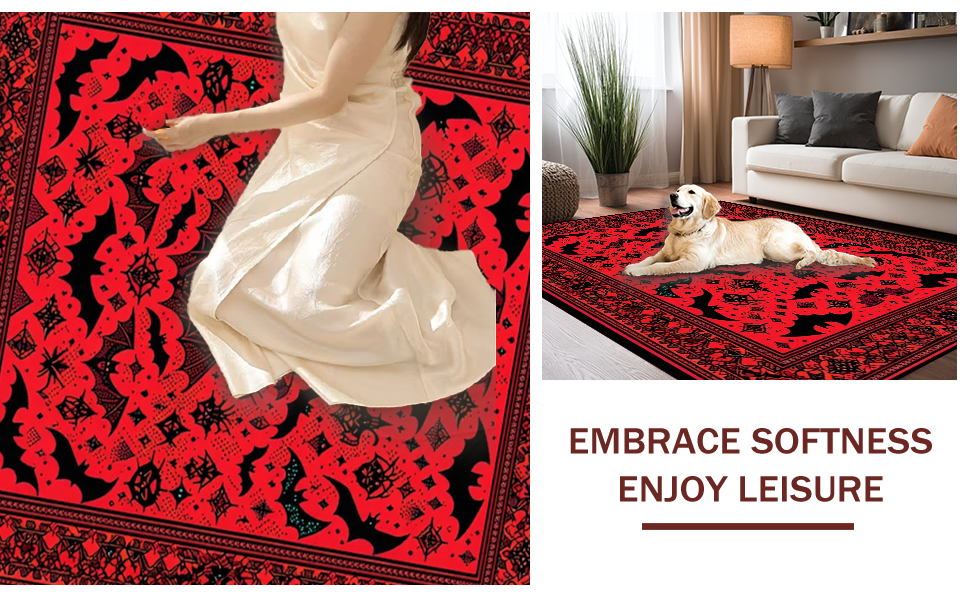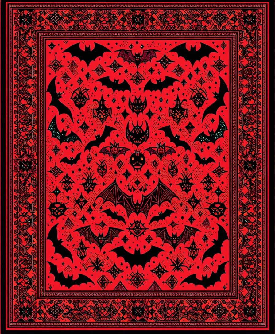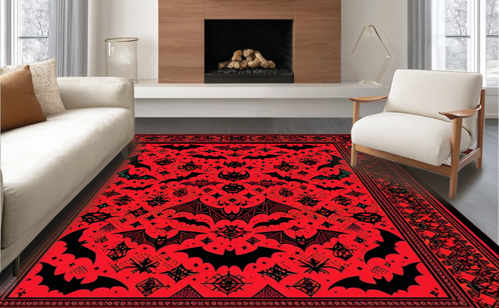 Ultra Soft Area Rug, Non Slip, Stain Resistant, Washable Area Rugs for Living Room, Bedroom, Mysterious Vibrant Bat Imagery(Red) Overview: