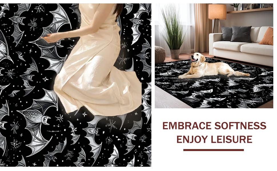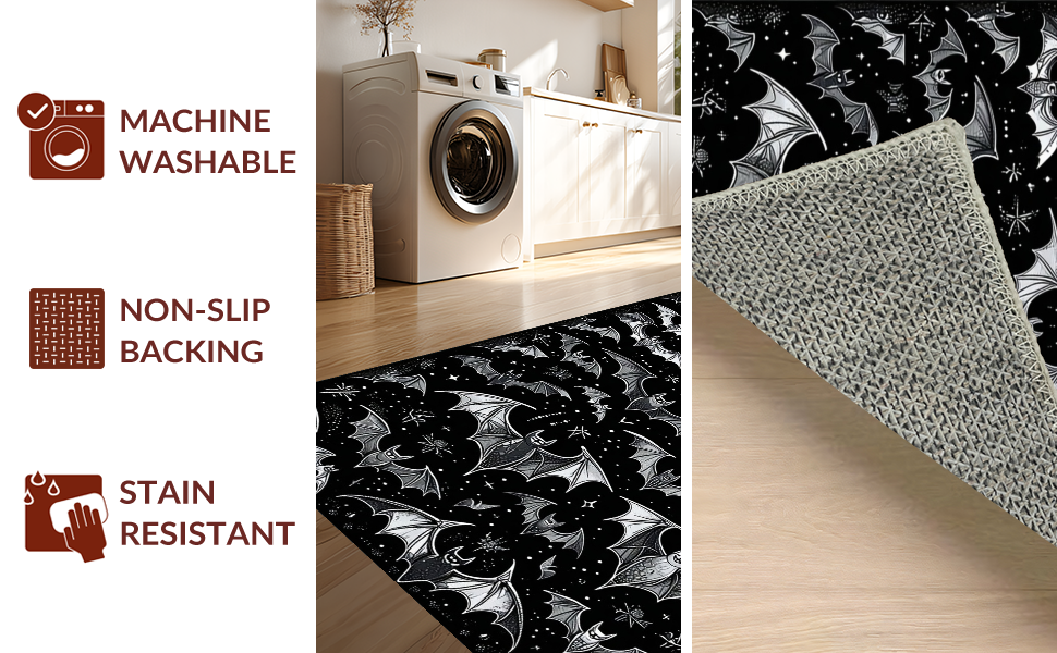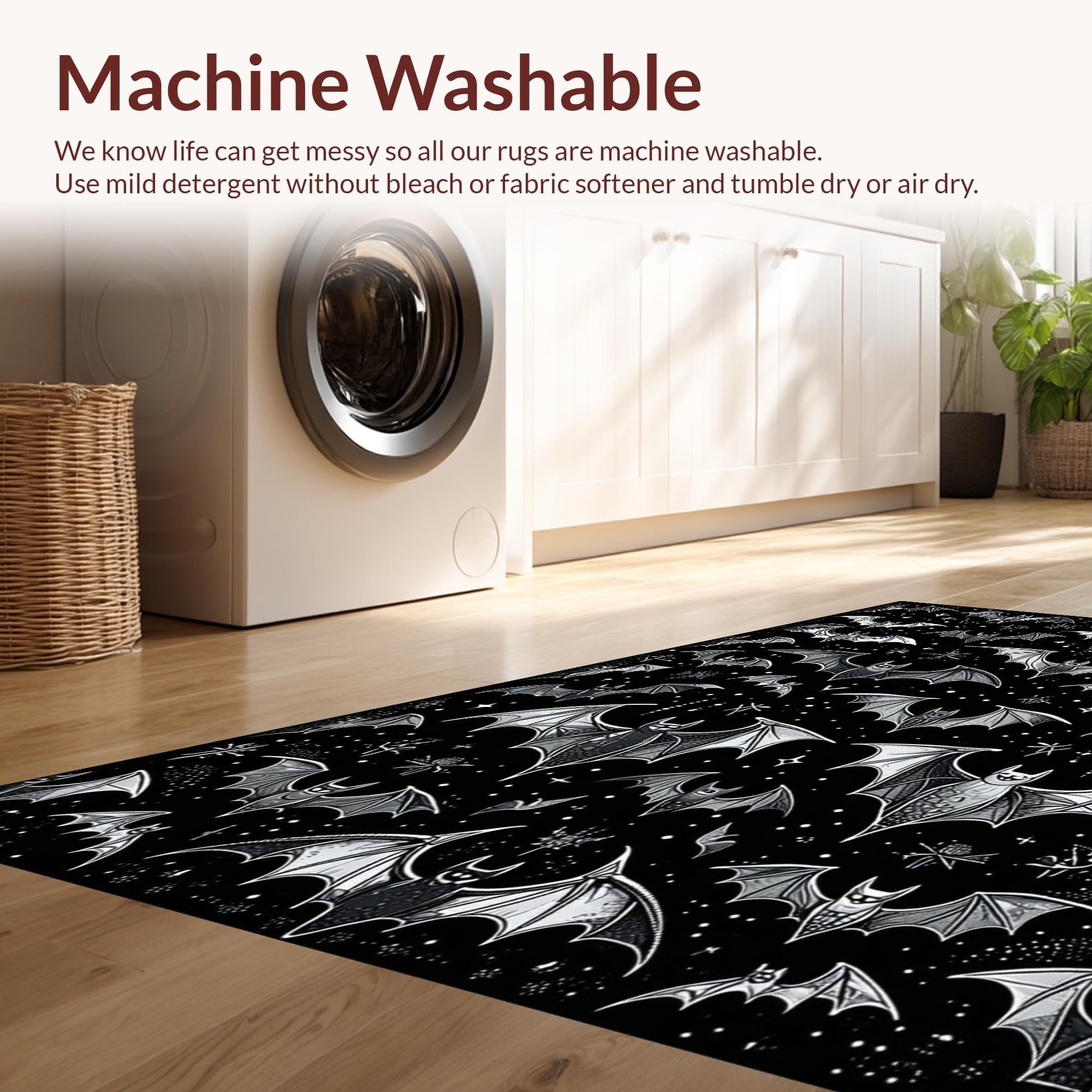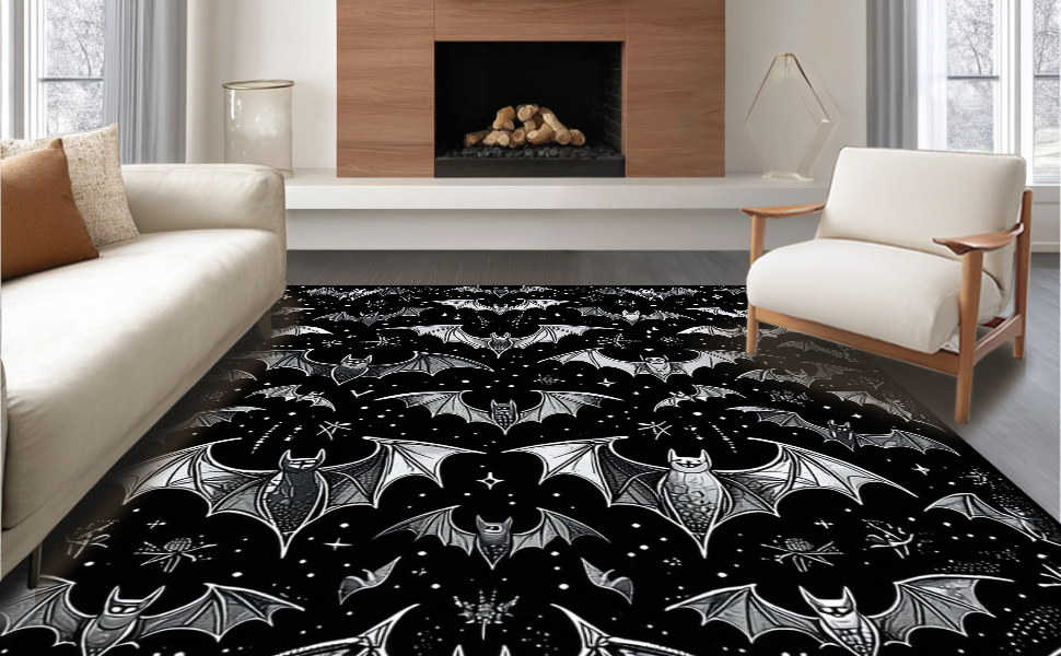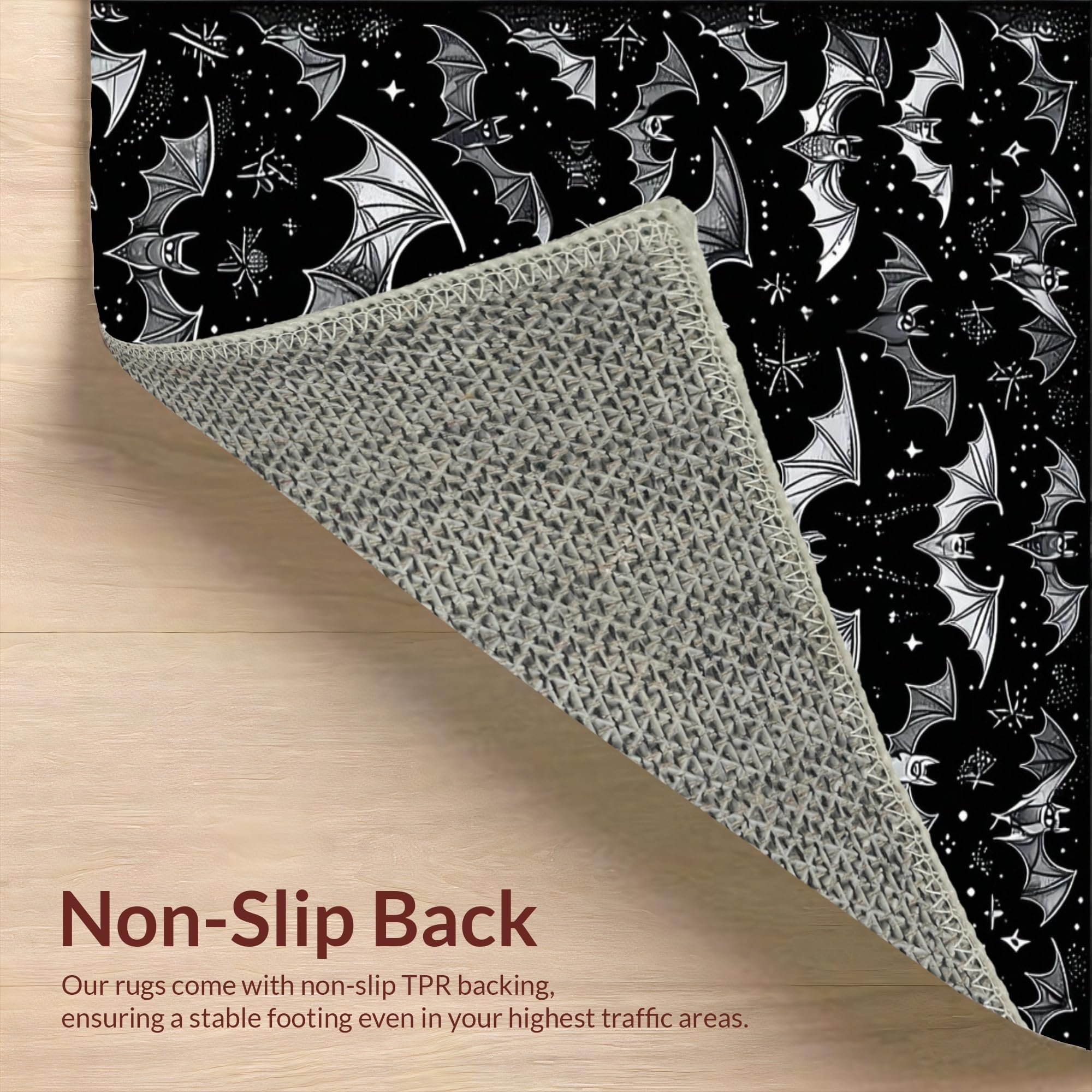Ultra Soft Area Rug, Non Slip, Stain Resistant, Washable Area Rugs for Living Room, Bedroom, Mysterious Vintage Bat Artwork(Black) Overview:
